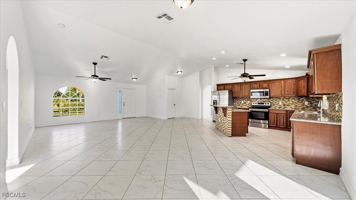 Built in 2013, this bright and airy home features an open floor plan with tile flooring throughout. The kitchen is equipped with stainless steel appliances and granite countertops. The 2024 re-roof offers peace of mind. The primary suite includes his and hers closets, a separate shower and garden tub, and dual sinks. Enjoy a split-bedroom layout and a spacious backyard with plenty of room to add a pool is in zone X NO Flood insurance is required.
