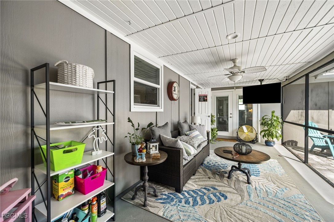 A full bathroom with direct access to the screened lanai provides added convenience and makes this home perfect for enjoying the pool and outdoor living.