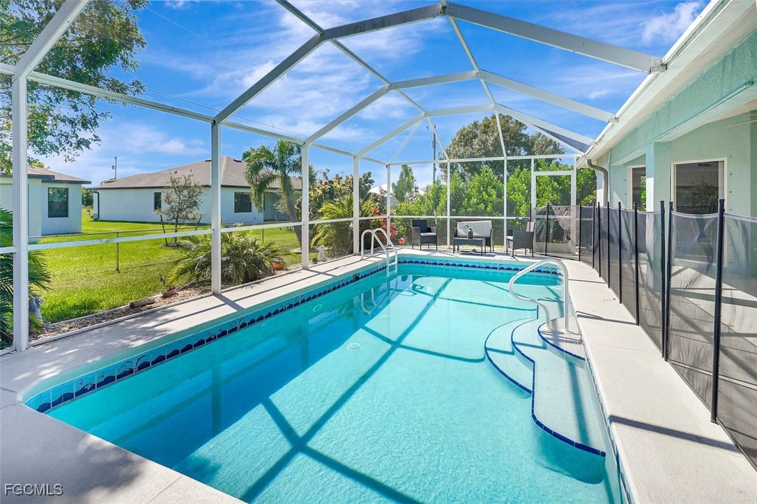 Welcome Home to this most desired SOUTHERN exposure updated, light and bright Pool Home. This beautifully maintained 3-bedroom, 2-bathroom pool home is ideally located just off Pine Island Road in a quiet, convenient neighborhood with no HOA and no flood insurance required. Step inside to find an open, airy layout with tons of extra space, perfect for families or entertaining guests. The heart of the home features a large living area, a well-appointed, updated kitchen with ample storage, and a split-bedroom floor plan for added privacy. Enjoy your private, fenced-in backyard and separate screened oasis with a sparkling pool – perfect for relaxing weekends or entertaining. The oversized garage offers plenty of room for vehicles, storage, or even a workshop, and the extra-long driveway provides additional parking for guests. Spacious primary suite with en-suite bath Tile floors throughout