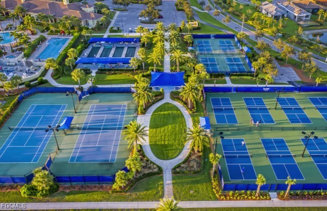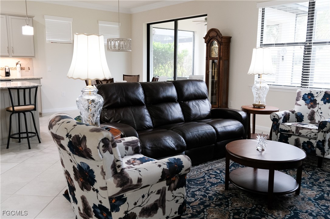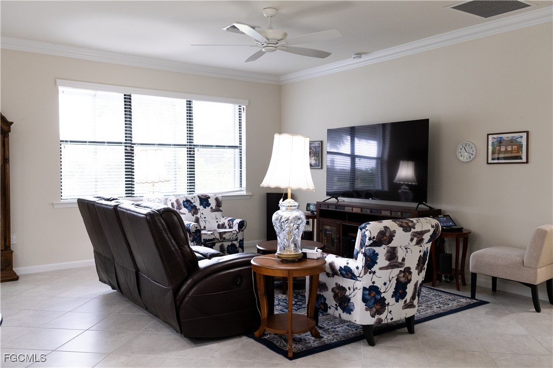 Welcome to paradise! Nestled on a premiere street in the 55+ Del Webb GATED community within the award-winning Ave Maria, this charming 3-bedroom, 2-bathroom Abbeyville home offers stunning WATER VIEWS and active, RESORT-STYLE living on a tranquil lot. The SPLIT-BEDROOM floor plan features a large master suite with a tray ceiling, double vanity, walk-in closet, and motion sensor lights. The modern kitchen is equipped with GRANITE countertops, stainless-steel appliances, updated cabinetry, large center island with storage, pantry, and upgraded diagonal tile flooring throughout the ENTIRE home. A large capacity washer and dryer are included in a dedicated laundry room with a sink and an EXTRA STORAGE area. Other highlights include open layout, high ceilings with crown molding, a 2-car garage equipped with a durable EPOXY floor, a newer A/C (2023) and superior storm protection with accordion shutters and a 160-mph WIND-RATED ROOF. Relax with a tranquil water view on the spacious lanai, which features an extended heavy-duty screened enclosure. Residents have access to world-class amenities, including two stunning clubhouses, a 5,000 sq. ft. fitness center, a resort-style pool with beach entry, a lap pool, a jetted tub, and courts for tennis and pickleball. An optional championship golf course, a town center with boutique shops and restaurants, and a full calendar of activities are also available for an active adult lifestyle.