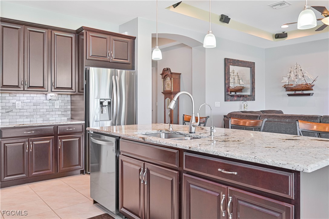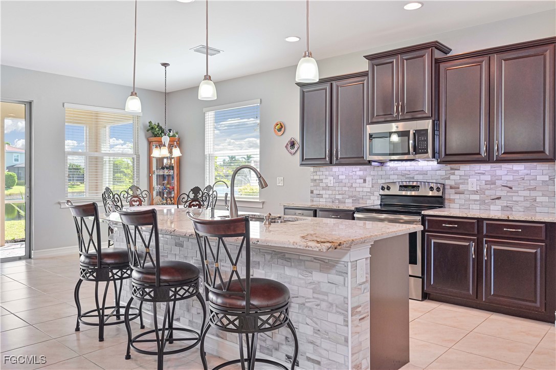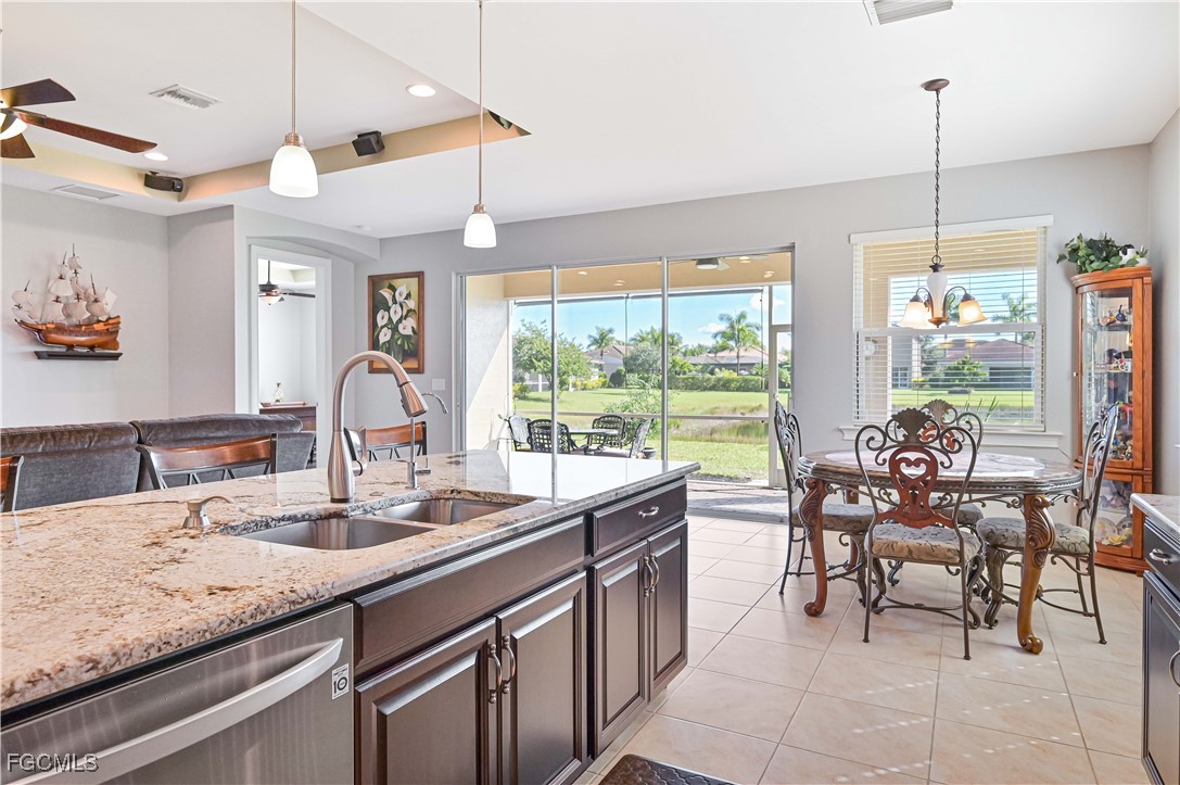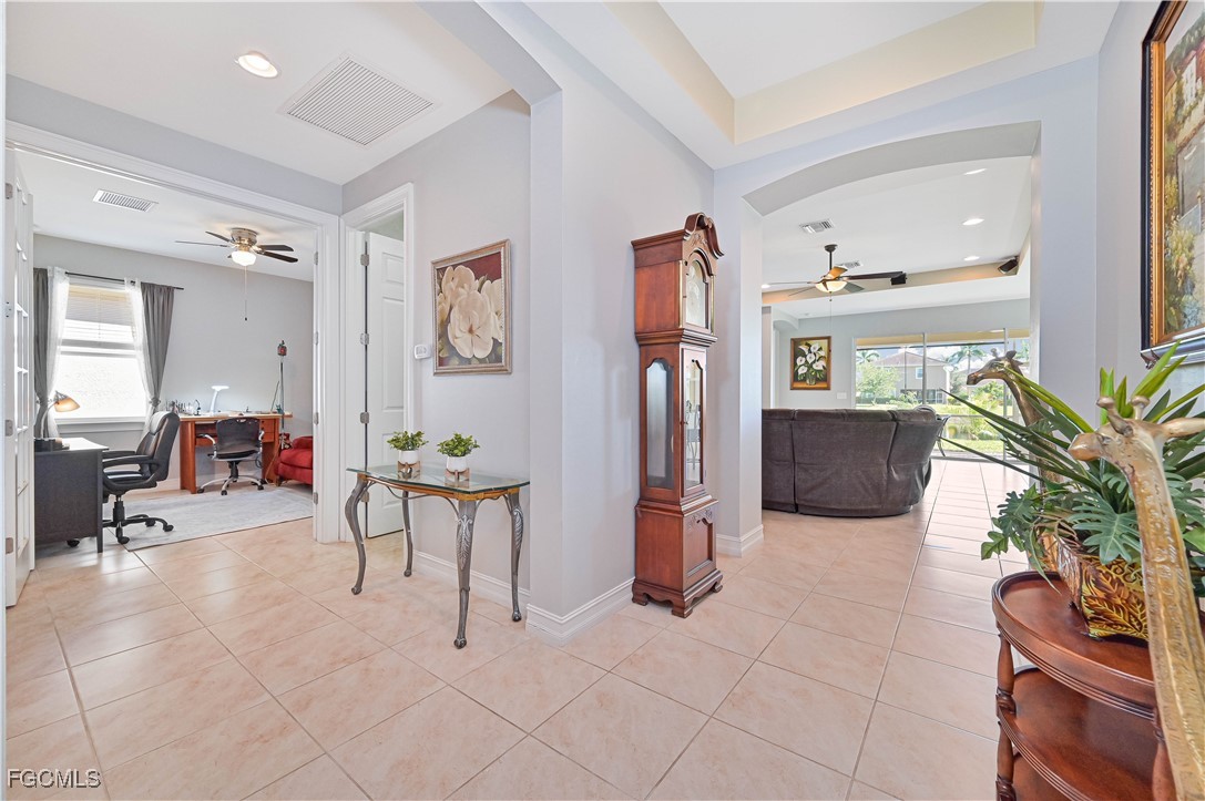 Welcome to this beautifully upgraded Lakeview home located in the desirable Lindsford community of Fort Myers! This immaculate home offers 3 spacious bedrooms + den, 2 full bathrooms, and a 2-car garage, perfectly designed for comfortable living and entertaining. Light and bright this Edison floorplan has 10 foot ceilings, 8 foot doors, tray ceilings giving the house a spacious and inviting feel. Step inside to discover luxury finishes throughout, including plank luxury vinyl flooring in all bedrooms, and tile throughout main living areas. The kitchen is a showstopper, featuring upgraded stainless steel appliances, Level 5 granite countertops, a tile backsplash, and reverse osmosis at the sink. Enjoy purified water throughout with a whole-house water filtration system. A brand-new 2025 A/C unit ensures year-round comfort and energy efficiency. Additional upgrades include an attic fan to help regulate temperature and enhance ventilation plus an insulated garage with epoxy flooring. Relax on your lanai with tranquil lake views, or take advantage of the nearby community amenities including a resort-style pool, fitness center, tennis courts, and walking trails. Very low HOA's include lawn care. No Flood Insurance required. Don’t miss your chance to own this beautifully maintained and upgraded home in one of Fort Myers' most convenient and sought-after gated communities — just minutes from downtown, shopping, dining, and beaches! Schedule your showing today!