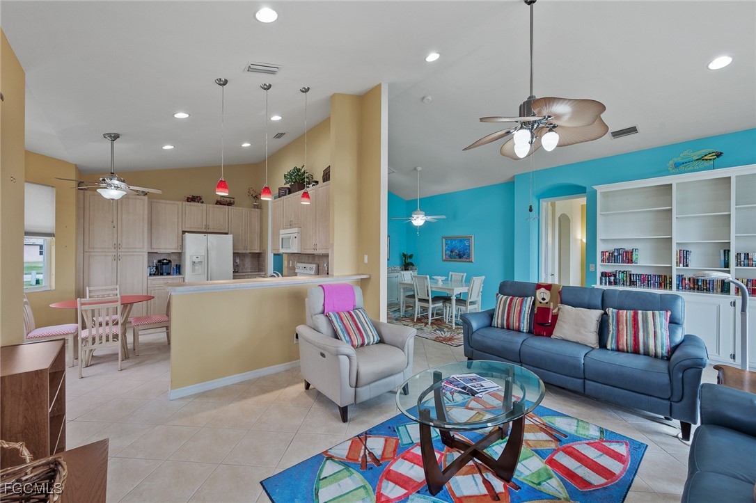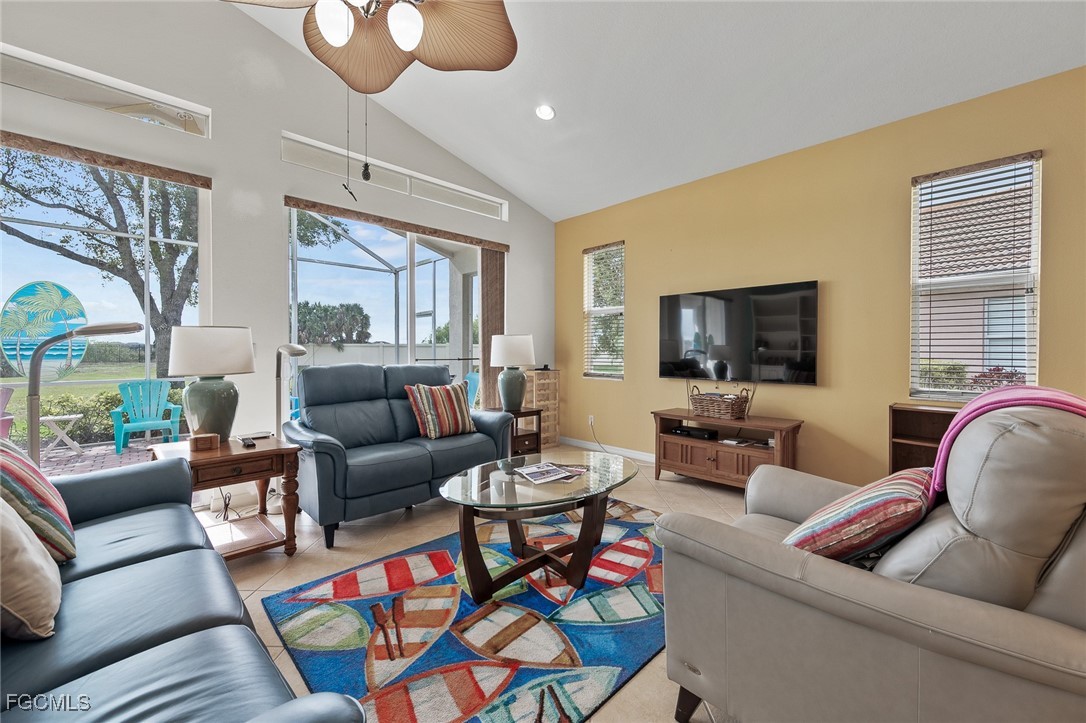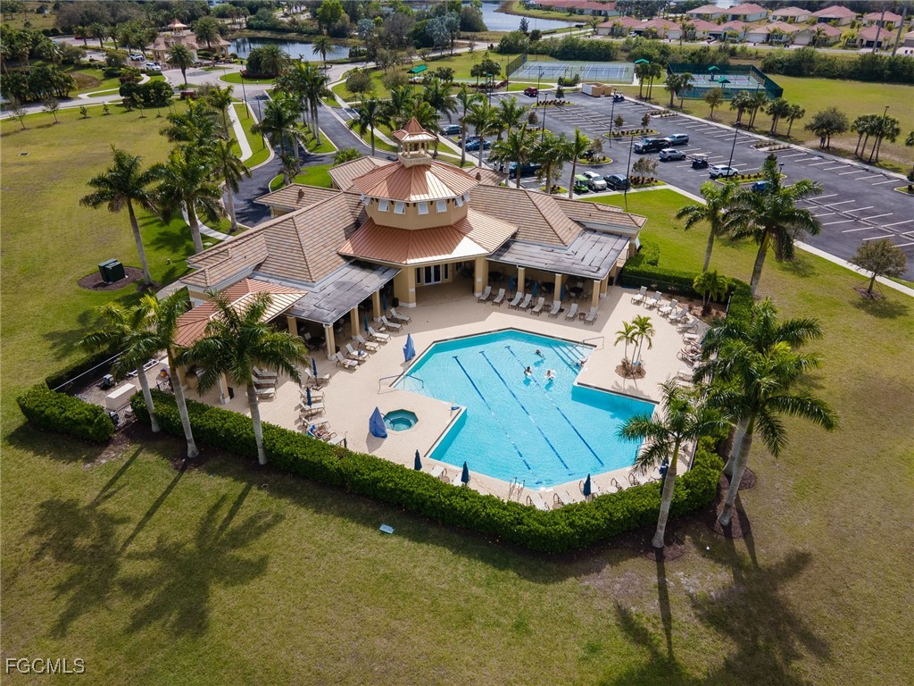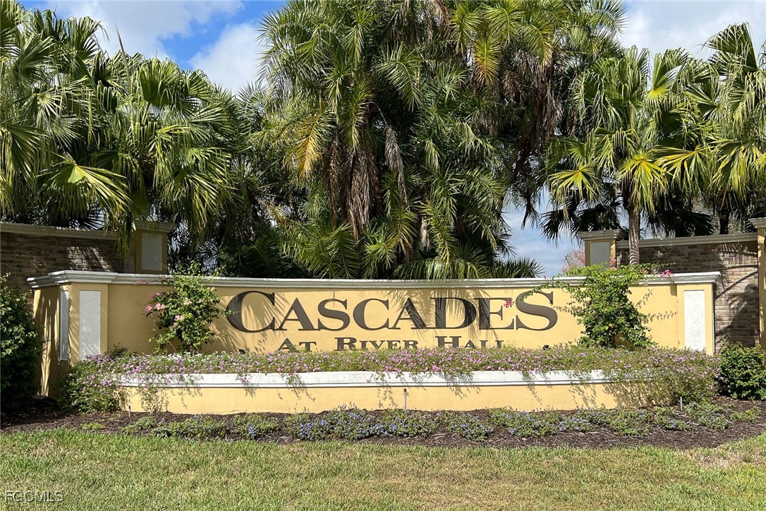 Why pay high rent prices for the season when you can own this beautiful home! Florida living at its finest in this delightful spacious 2 bedroom with den TURNKEY home. Walk right in and start enjoying your time in the sought after 55 + community of Cascades at River Hall. This home was built by Levitt and Sons with impact resistant doors and windows and vaulted ceilings! The seller has added some lovely custom cabinetry to the dining and living space. New AC 2024, no flooding...The home has been extremely well kept and the happy Florida colors set the mood for your future lifestyle. There are approximately $40,000 in furnishings (furniture, carpets, blinds, shades, built-ins (dining room buffet, large bookcase), large television, lanai furniture and BBQ, etc... included with this charming home! The lovely extended lanai over looks a large landscaped area and a lake. Cascades offers resort-style amenities and an active social atmosphere, with LOW monthly HOA which covers all your lawn care needs, full cable and internet, beautiful clubhouse with community pool/spa, fitness center, Bocce, Pickle ball and Tennis courts!