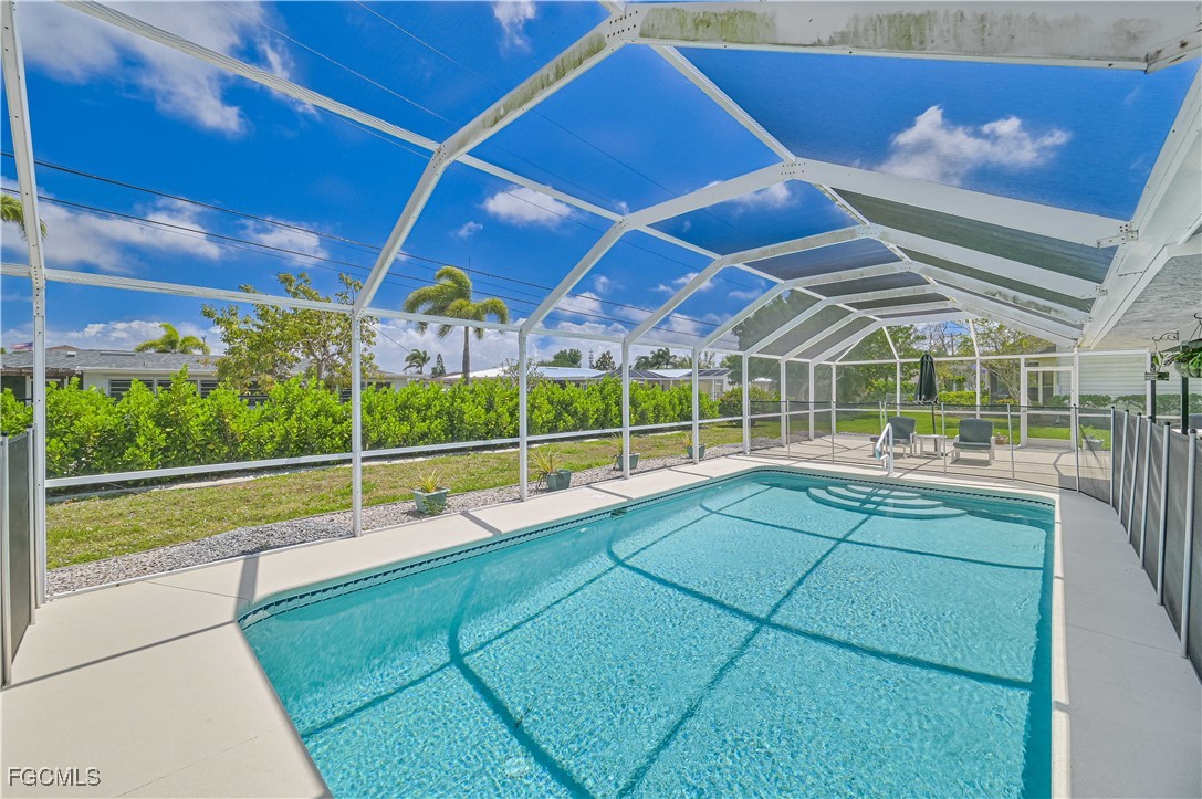 An Exceptional 3-Bedroom Pool Home in Cape Coral’s Beloved Country Club Area! Welcome to your Florida dream home! This beautiful 3-bedroom, 2-bathroom residence with an oversized 2-car garage is nestled in one of Cape Coral’s most cherished neighborhoods—where quiet streets, friendly neighbors, and scenic paths with lots of mature trees create the perfect setting for family life. With a Spacious Open Floor Plan, you can enjoy seamless living and entertaining with generous gathering spaces and natural light throughout. There is a Backyard Oasis with Room to Splash, Lounge & Unwind where you can enjoy a sparkling in-ground pool surrounded by sun-drenched lounging space and a shaded retreat—perfect for family fun, weekend gatherings, or peaceful evenings. There’s even space to add a hot tub for that extra touch of relaxation! In the Chef approved Kitchen you can Cook up memories in a stylish kitchen featuring granite countertops, stainless steel appliances, and easy-care tile flooring. The oversized 2-Car Garage offers Plenty of space for vehicles, bikes, beach gear, and more—with built-in storage racks and a handy closet for organization. The Private Master Retreat is where you can find yourself waking up to pool views and step outside through sliding doors for a peaceful morning coffee or evening swim. The large laundry area doubles as a craft space, homework zone, or home office—ready to grow with your family’s needs. Recent Upgrades for Peace of Mind include A new roof and solar pool heater (2023) offer energy efficiency and long-term value. Location Perks: include Family-Friendly Streets with low traffic (which means kids can safely ride bikes, play outside, and enjoy the neighborhood). Close to Downtown Cape Coral (minutes from restaurants, parks, entertainment, and a dog-friendly park for your furry family members. Near Cape Coral Yacht & Racket Club- (Enjoy beach days, boat launches, and exciting upgrades coming soon to this beloved waterfront destination) Whether you are starting a new chapter or expanding your nest, this home offers the perfect blend of comfort, style, and location. Virtual furnishings have been added to select images to help you envision the possibilities. Do not wait—schedule your private tour today and discover why this home is a true Cape Coral gem!