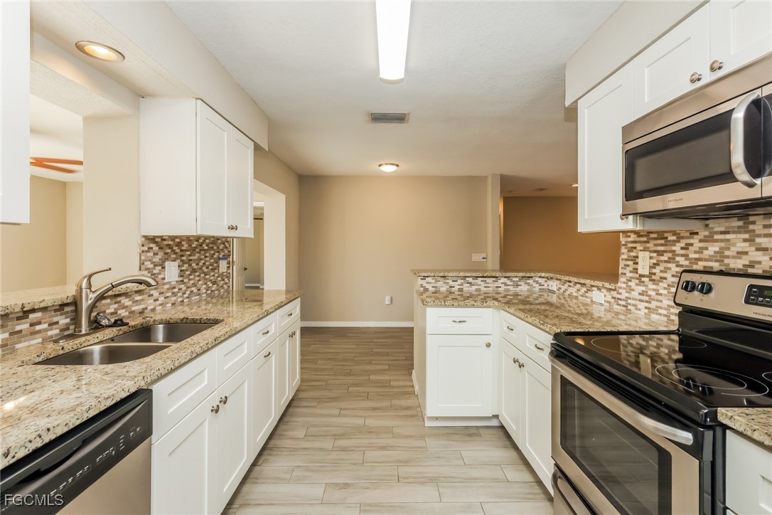 Absolutely stunning and fully renovated 3 bed / 3 bath home with tile flooring installed throughout. This spacious floor plan offers a formal dining room or flex space with a fireplace, and two master suites in a desirable split layout. All bathrooms feature tiled walk-in showers and updated brushed nickel fixtures throughout. The kitchen is equipped with stainless steel appliances, tile backsplash, and granite countertops, also found in all three bathrooms. The main master suite includes a dual vanity. Additional features include in-residence laundry with washer and dryer hook-up, a 1-car attached garage, and ample driveway parking. Enjoy the large, fully fenced backyard with access via triple sliders in the Florida room and dual sliders in the master suite. Move-in ready with modern upgrades throughout—this home won’t last!