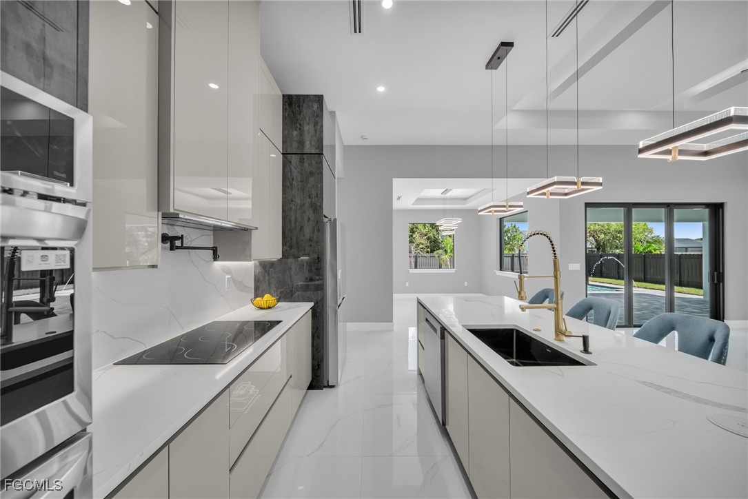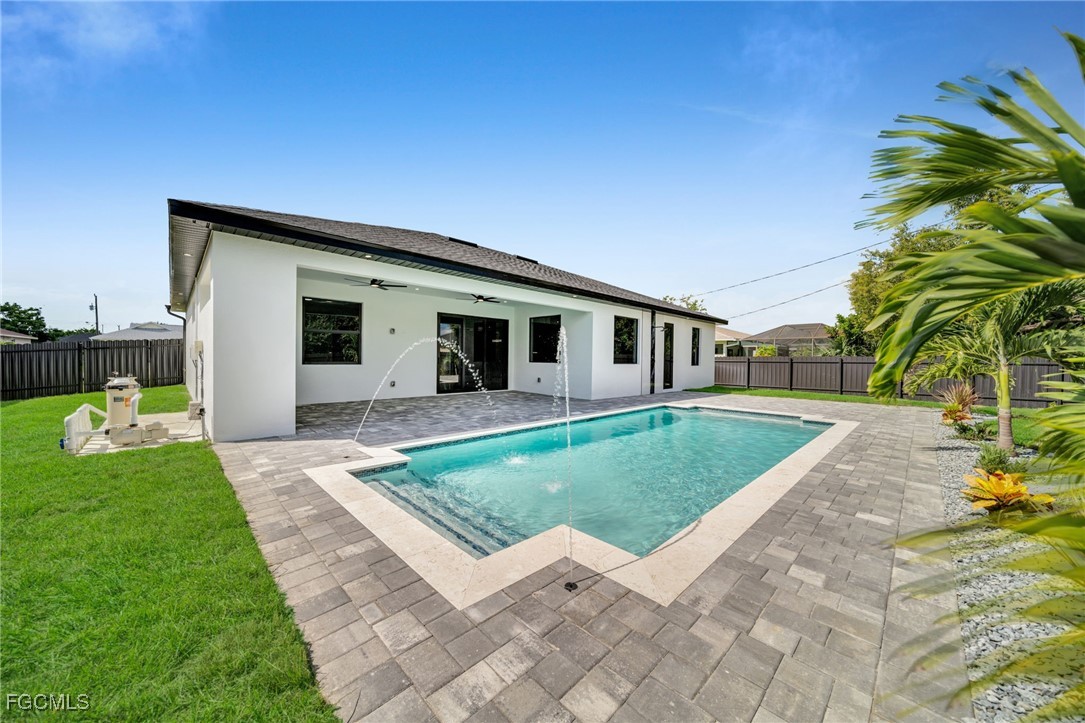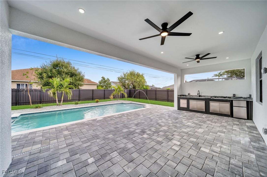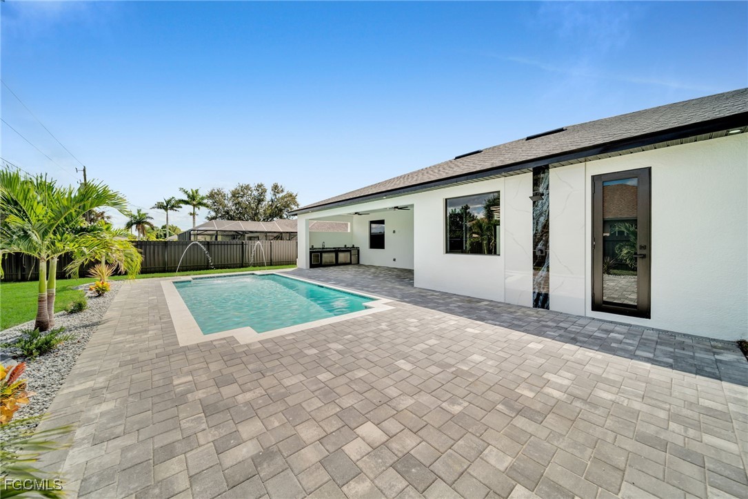 STUNNING NEW CONSTRUCTION HOME WITH LUXURIOUS UPGRADES!! All ASSESSMENTS ARE IN AND WILL BE PAID IN FULL AT CLOSING!! THIS HOUSE IS NOT IN A FLOOD ZONE! THE SELLER WILL CONTRIBUTE 10,000 TOWARD THE BUYER’S CLOSING COST! All around fenced for privacy, This 4 bedroom, 3 full bathroom, and 2 car garage, residence offers over 2,000.sq. ft. of living space, Beautiful pool with water salt system and a convenient outdoor shower, large lanai under roof area, outdoor kitchen with stove, sink and refrigerator, extended kitchen with stainless steel appliances, living room has high ceilings and plenty room, beautiful modern tile through the home. Big master with 2 spacious walk-in closets, Great bath with modern featured and bathtub with custom tile surround. The two additional bathrooms (one of then is a pool bath and access to bedroom) are designed to satisfy the buyer. Each of the remaining bedrooms also offers ample storage with walk-in closets. With impact windows and doors. This home offers comfort and functionality in a fantastic location. Don't miss this incredible opportunity!