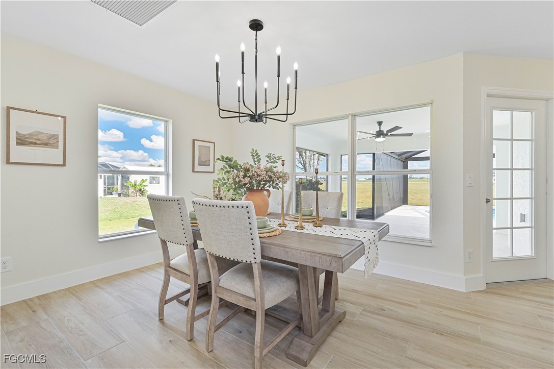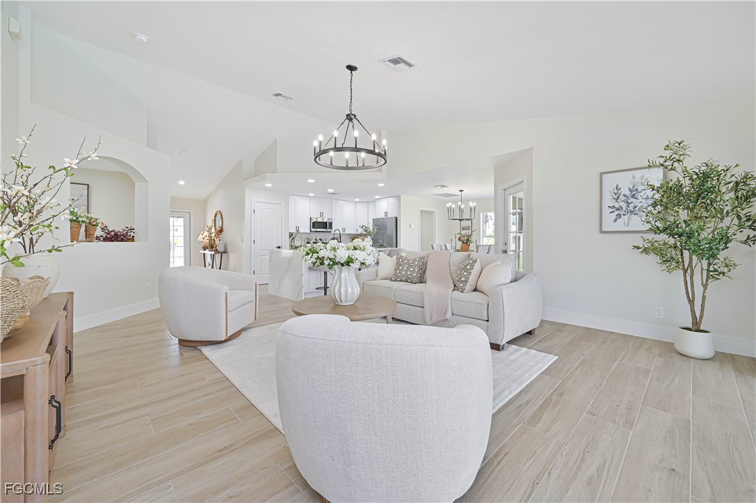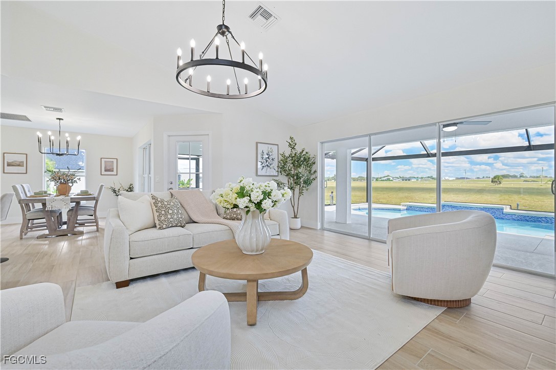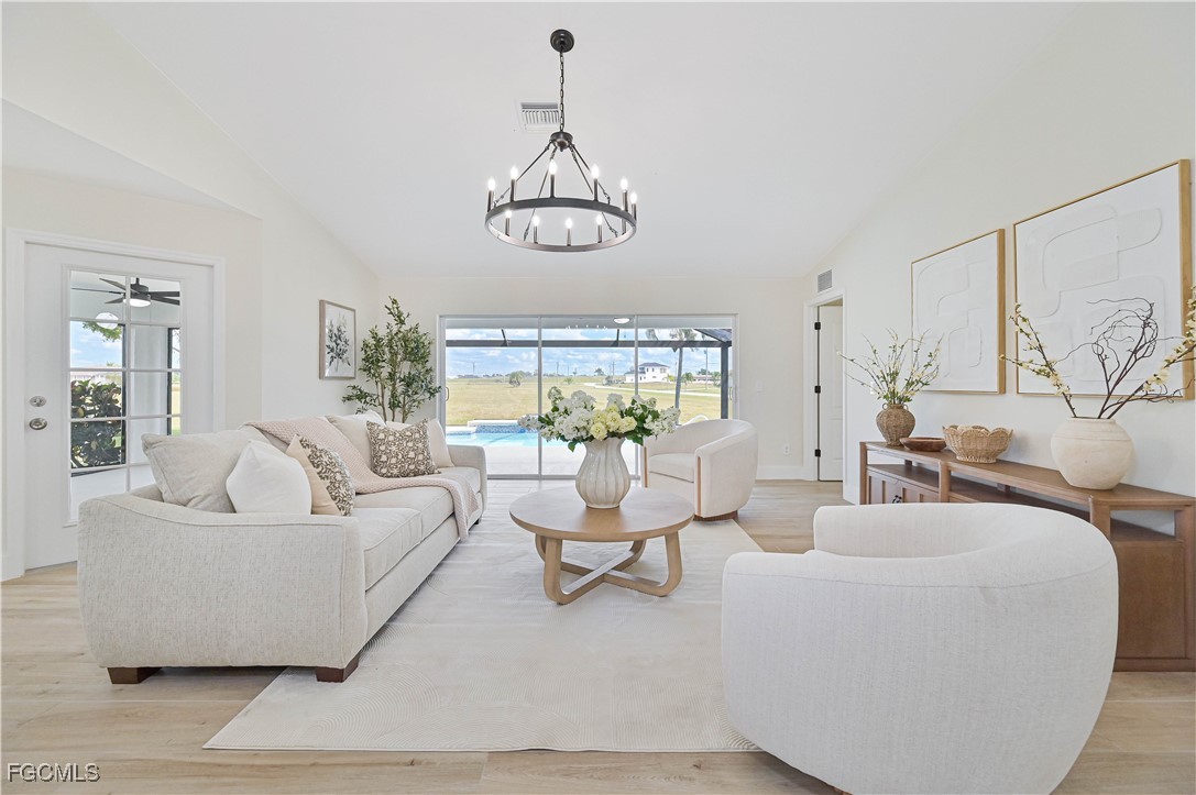 Welcome to this Stunning renovated Pool home in West of Burnt store Rd Cape Coral. The property has been totally renovated from top to bottom like a new home. Step inside, you'll be greeted by stunning wood plank tile that graces the entire house with 5 inches base board gives it the modern feel. The Living room, open concept with kitchen and dining room offers great practical space for family and friends gathering and partying. This luxury kitchen carries brand new hardwood cabinets with soft closing features, beautiful calacatta quartz countertop, Huge island with waterfall and brand-new stainless-steel appliances. Stunning main bedroom with large sitting area and huge walk-in closet as well as the spa like main bathroom literally take your breath away when you walk in. Office and separated home work area for the kids are much needed for some separation, Home has brand-new LED lighting throughout the entire house. Property has newer 2023 roof, Brand New AC and Stunning new Picture frame pool cage provide peace of mind for years to come. Perfect screen in cage with large cover area oversees practical triple lots backyard provides endless Florida outdoor living lifestyle. The property is situated in a highly sought-after neighborhood and sits just 3 minutes away from the upcoming 7 Islands Development Projects with easy access to Cape Coral, Punta Gorda, and Port Charlotte’s best restaurants, shops, and amenities, this home is ideal for full-time living, a seasonal retreat, or a premium investment opportunity. Hurry up before it is gone.
