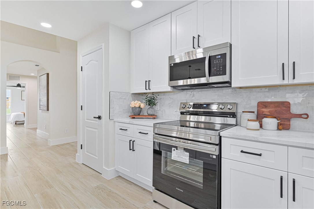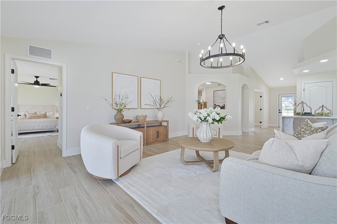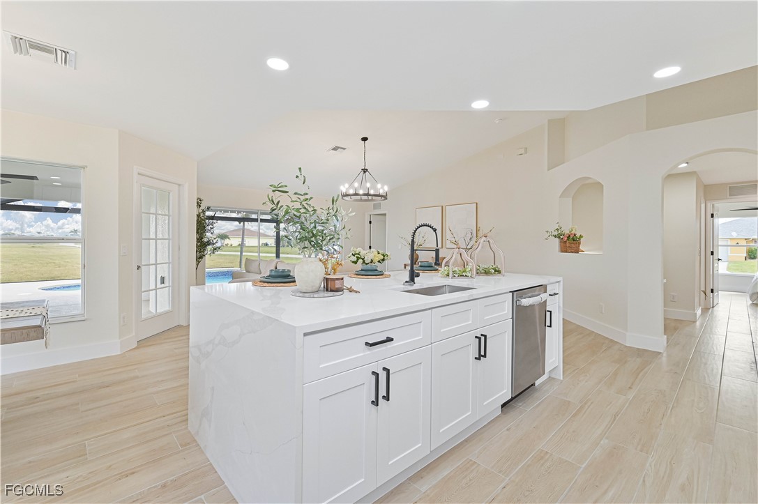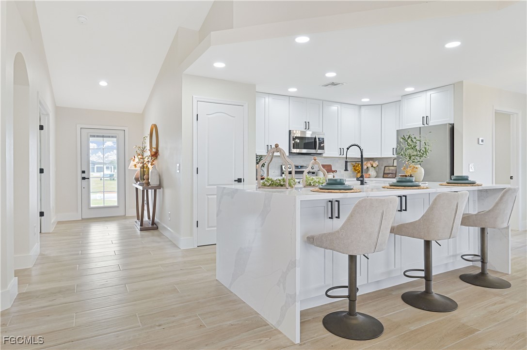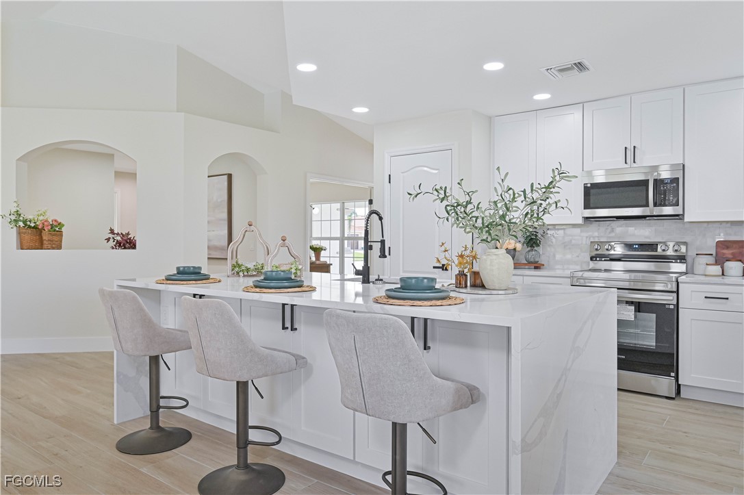 Welcome to this Stunning renovated Pool home in West of Burnt store Rd Cape Coral. The property has been totally renovated from top to bottom like a new home. Step inside, you'll be greeted by stunning wood plank tile that graces the entire house with 5 inches base board gives it the modern feel. The Living room, open concept with kitchen and dining room offers great practical space for family and friends gathering and partying. This luxury kitchen carries brand new hardwood cabinets with soft closing features, beautiful calacatta quartz countertop, Huge island with waterfall and brand-new stainless-steel appliances. Stunning main bedroom with large sitting area and huge walk-in closet as well as the spa like main bathroom literally take your breath away when you walk in. Office and separated home work area for the kids are much needed for some separation, Home has brand-new LED lighting throughout the entire house. Property has newer 2023 roof, Brand New AC and Stunning new Picture frame pool cage provide peace of mind for years to come. Perfect screen in cage with large cover area oversees practical triple lots backyard provides endless Florida outdoor living lifestyle. The property is situated in a highly sought-after neighborhood and sits just 3 minutes away from the upcoming 7 Islands Development Projects with easy access to Cape Coral, Punta Gorda, and Port Charlotte’s best restaurants, shops, and amenities, this home is ideal for full-time living, a seasonal retreat, or a premium investment opportunity. Hurry up before it is gone.