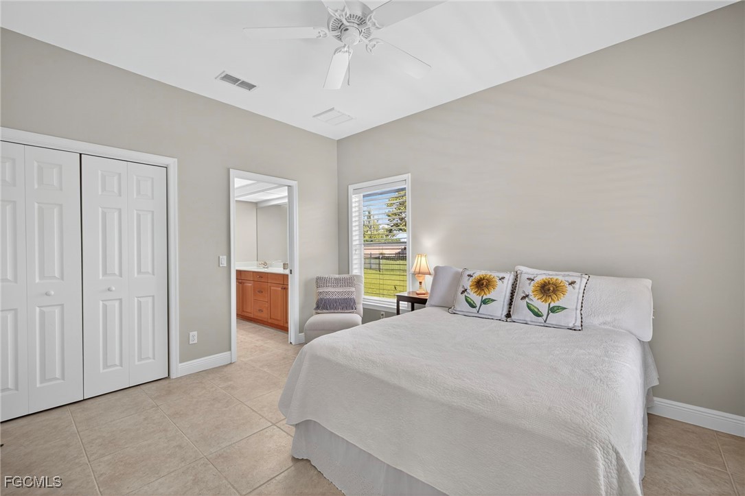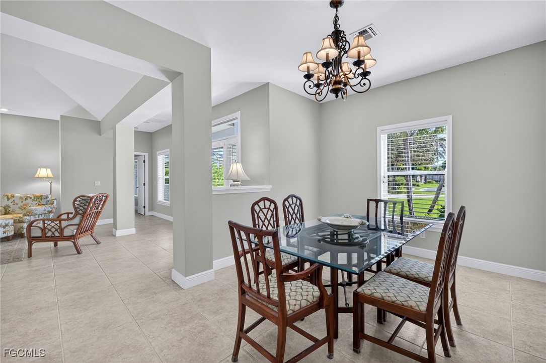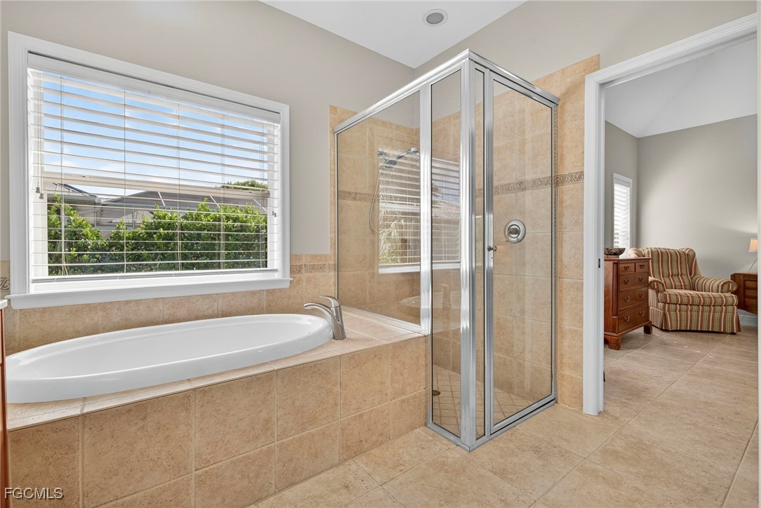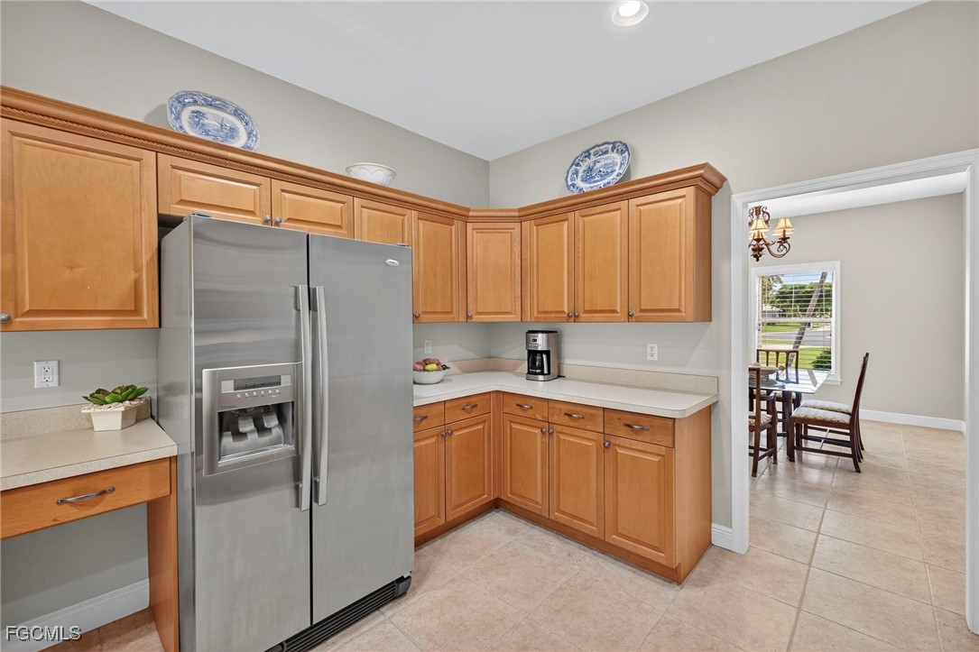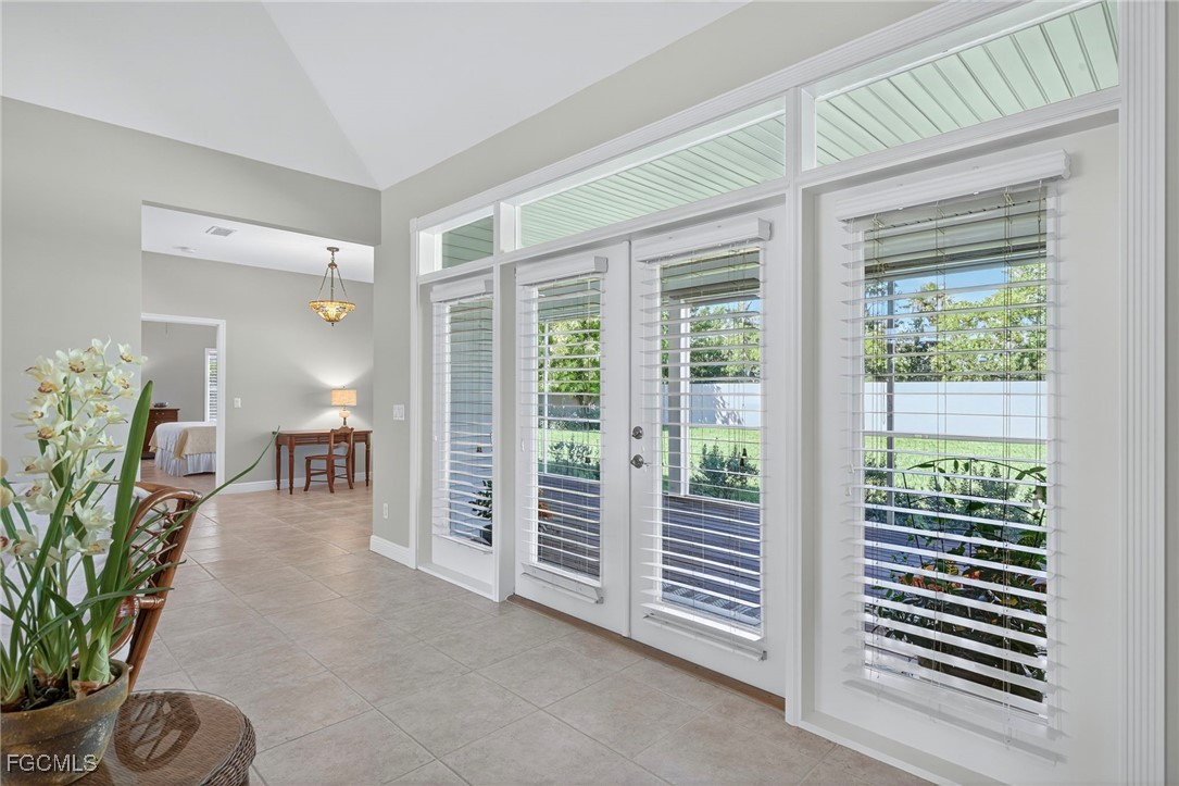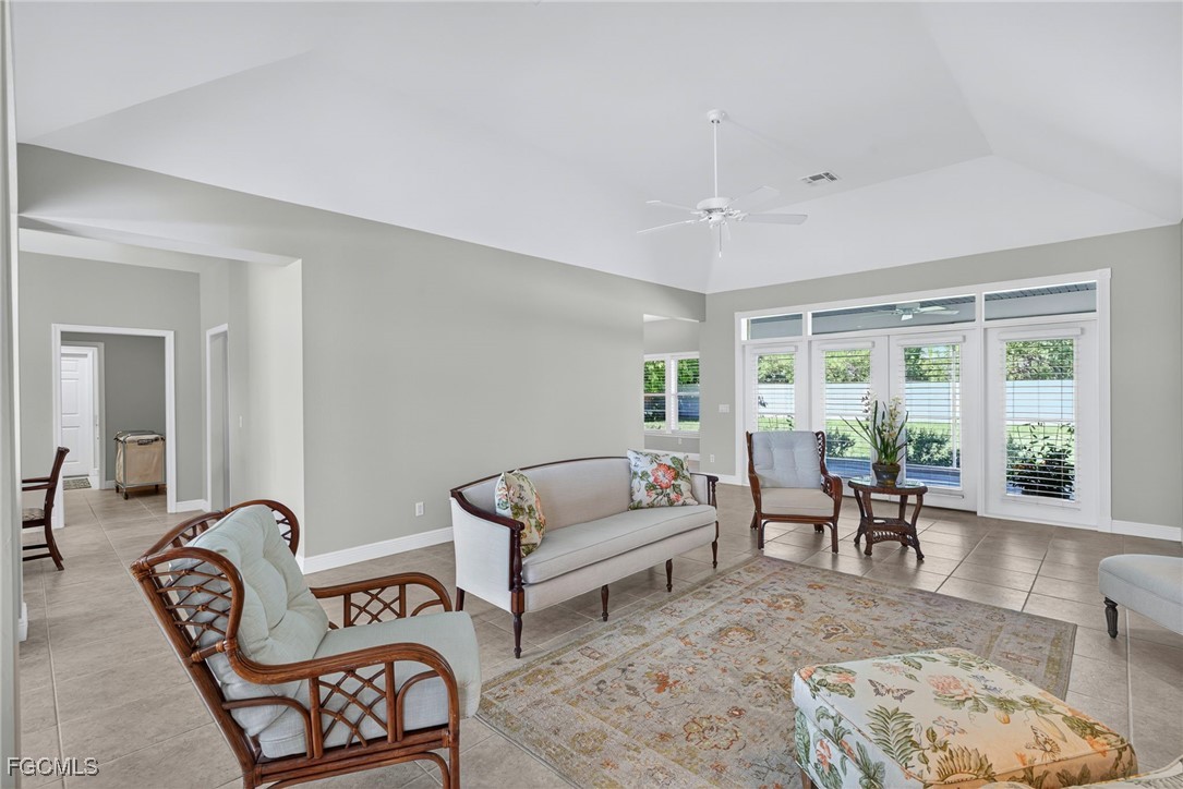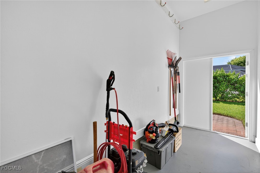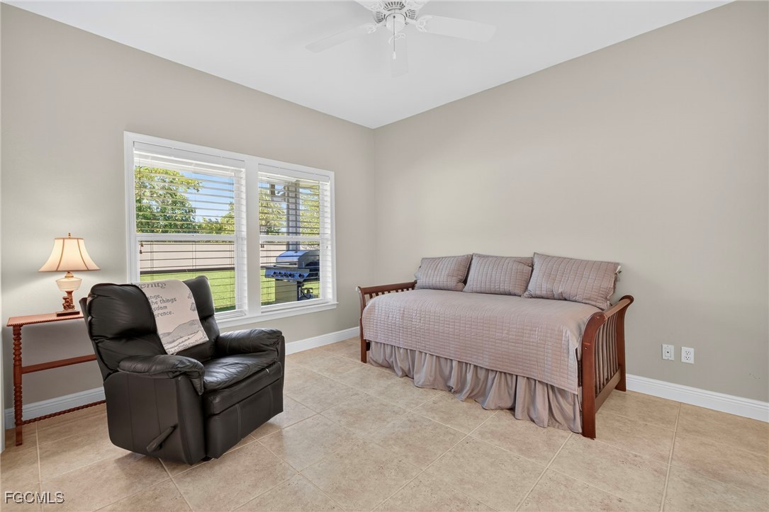 The Caloosa Creek community, with easy access to Gulf beaches, features charming Olde Florida-style homes, with a friendly and relaxed atmosphere. Amenities include a well-appointed clubhouse with a heated pool, tennis/pickleball courts, playground and sidewalks throughout. This well-maintained home, situated on one of the largest lots .64 acres in the back corner of the community, offers a quiet and private space. The expansive backyard offers room for your dream pool and additional living space. This Daniel Wayne designed home has an open front porch as well as a screen enclosed back porch that runs the length of the house. Tile floors throughout, French doors, tray ceilings, and electric fireplace in great room. This 3 bedroom and 2.5 bath, split floor plan is perfect for family and entertaining. The primary suite offers a large walk-in closet as well as a tray ceiling. The primary bath has a walk-in glass shower, soaking tub and double sinks. The guest rooms have a Jack and Jill bath with double sinks. There is a formal dining room, breakfast nook, breakfast bar, kitchen with stainless steel appliances, pantry and a built-in desk. The extended paver driveway leads to a sideload two-car garage with plenty of room for guest parking. In addition, there is a workshop with a window for natural light, all under roof/trusses. All windows have been wired for an alarm system, the metal roof has all new stainless-steel screws, 4 exterior hose spigots, irrigation system and well, 6 extra waterproof exterior electrical outlets, and hurricane shutters for all windows and doors. This home sits at 9 ft. above sea level and did not have any interior flooding or insurance claims due to prior hurricanes. Caloosa Creek is a highly desirable and convenient location near Sanibel/Captiva Islands with upscale shopping and fine dining.