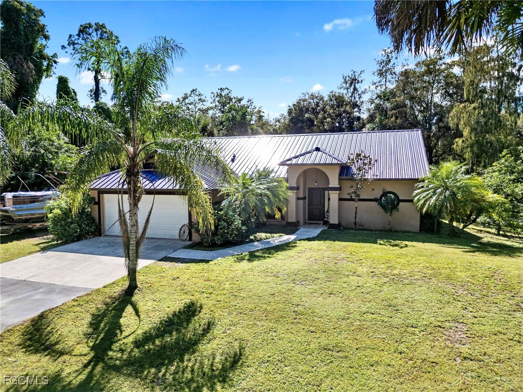 Here's your perfect Country retreat. This inviting 3-bedroom, 2-bathroom pool home is nestled on 2.73 acres of land, offering privacy and space to make your dreams a reality. The property presents a unique opportunity for those seeking both comfort and versatility in a serene setting. The land itself holds tremendous value, highlighted by the presence of a 30 x 40 workshop garage complete with a 10 x 10 roll-up door, concrete flooring, 220 electric, and water. Surrounding the workshop are segregated fences suitable for dogs, goats, and pigs, making this a perfect space for animal lovers or hobby farmers. The mature landscaping includes oak trees, citrus trees, royal palms, and other lush greenery that enhance the beauty and tranquility of the property. The home is complemented by a wrap-around driveway, a new metal roof installed in 2022, and a whole-house reverse osmosis water system. Inside, the home boasts vaulted ceilings that create a spacious and airy atmosphere. Tile flooring in the main living areas, while the bedrooms have cozy carpeting. The split-bedroom layout ensures privacy and comfort. The garage is equipped with air conditioning. Step outside to enjoy the pool area, which includes an inviting under-truss sitting area—perfect for relaxing or entertaining guests. The property offers plenty of options to customize and make it truly your own. No HOA fees or restrictions, you have the freedom to enjoy your home and land as you wish. You are now HOME!