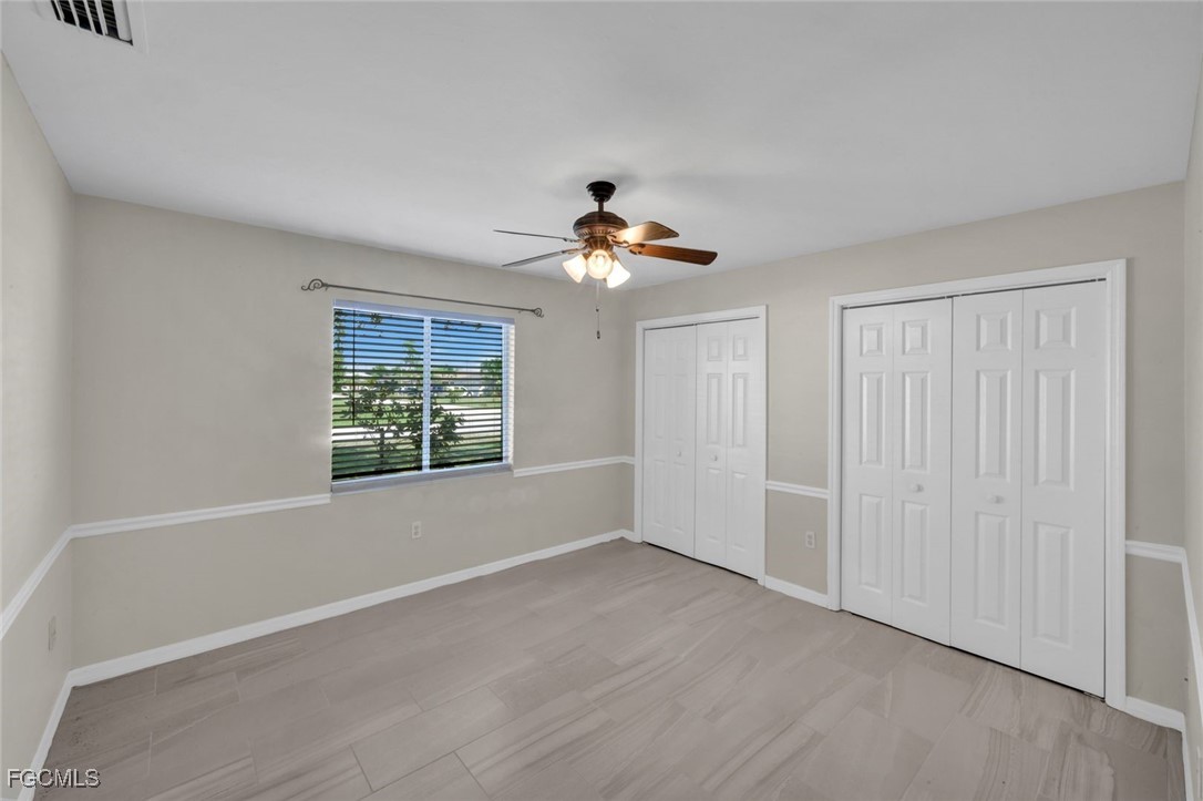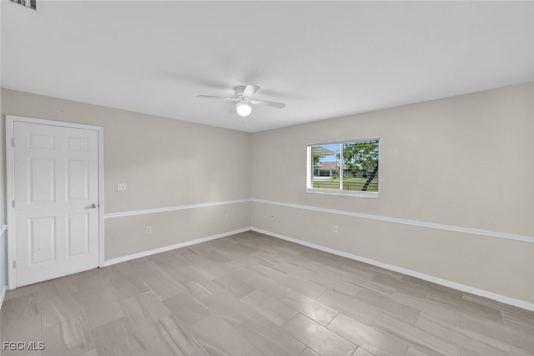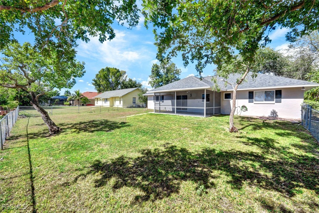 Move in ready! Great corner lot with mature oaks, fenced yard with southern exposure! This 3 bedroom, 2 bath, 2 car garage single family home has brand new INTERIOR AND EXTERIOR paint, brand new tile flooring throughout (no carpeting), NEW ROOF WITH 3RD NAIL (INSURANCE DISCOUNT) IN 2023, FULL REPLUMB IN 2022, COMPLETE ELECTRICAL REWIRE IN 2019, BRAND NEW GLASSTOP RANGE, NEW SLIDER ROLLERS AND LOCKS 2025, NEW GARAGE DOOR SPRINGS IN 2025 AND MORE. Enjoy sunsets on your large, screened lanai overlooking your fully fenced yard, plenty of room for a pool! Washer and dryer included! Great location just off Santa Barbara Blvd and south of Veterans Pkwy.