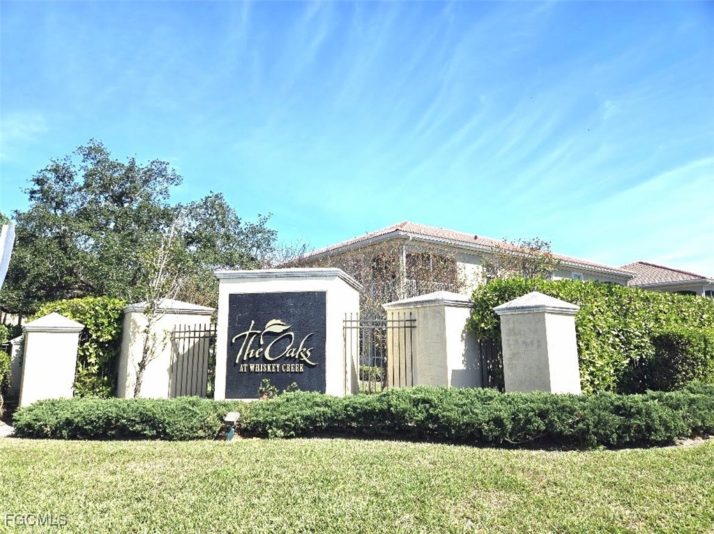 Location, Location, Location! This 1st Floor 2 Bedroom + Den/2 Bathroom Condo with Garage is located in the Intimate Community of Oaks at Whiskey Creek in the heart of Fort Myers is a short ride to the beach and near everything! This solid concrete block unit was built in 2014 with a tile roof and paver driveway. A foyer invites you into a lovely great room with volume ceilings, tile flooring laid on the diagonal, recessed lighting and sliding impact glass doors out to the lanai w/a private landscaped view. Generous floor plan for entertaining with the eat-in-kitchen, breakfast bar and great room open for entertaining. Kitchen boasts 42-inch cherry wood cabinetry, granite counters and stainless appliances along with pendant lights. Owner's Bedroom is spacious and has two large windows and a coffered ceiling. The ensuite bathroom has a shower and a vanity w/dual sinks & a granite countertop along with a walk-in closet. The light & bright guest bedroom and den share a bathroom. There's inside laundry and an extra-long one car garage w/shelving & a storage closet on the lanai. Community is pet friendly and has a beautiful Pool and Spa for relaxing. Convenient location to enjoy all that Fort Myers has to offer - beaches, shopping, restaurants, entertainment, schools, physicians, places of worship, parks & recreation and more! Short drive to RSW Airport & I-75 too! Perfect year-round residence, vacation home or seasonal rental for Investors!