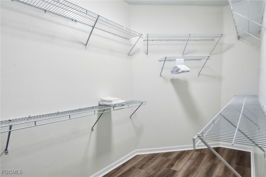 The primary suite is a true sanctuary, boasting a king-size bed and tranquil water views. (Window coverings are not shown in the pictures, but they will be installed prior to occupancy.) Enjoy the luxury of an en-suite bathroom with a double vanity, large step-in shower, private powder room, and an oversized walk-in closet.