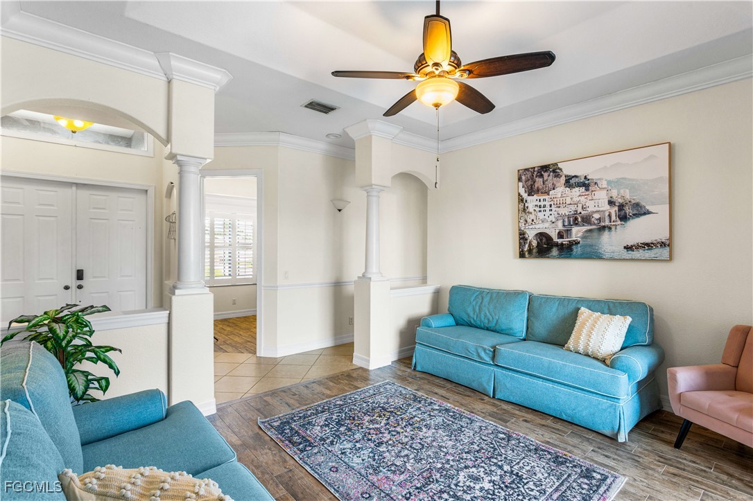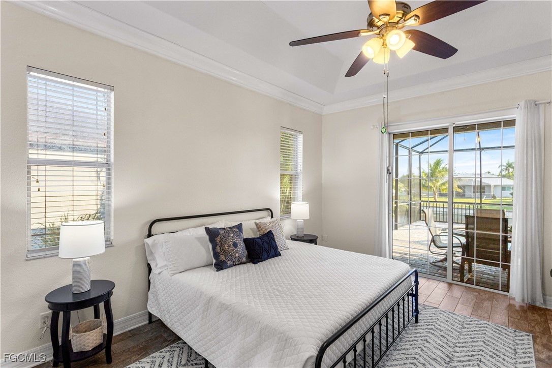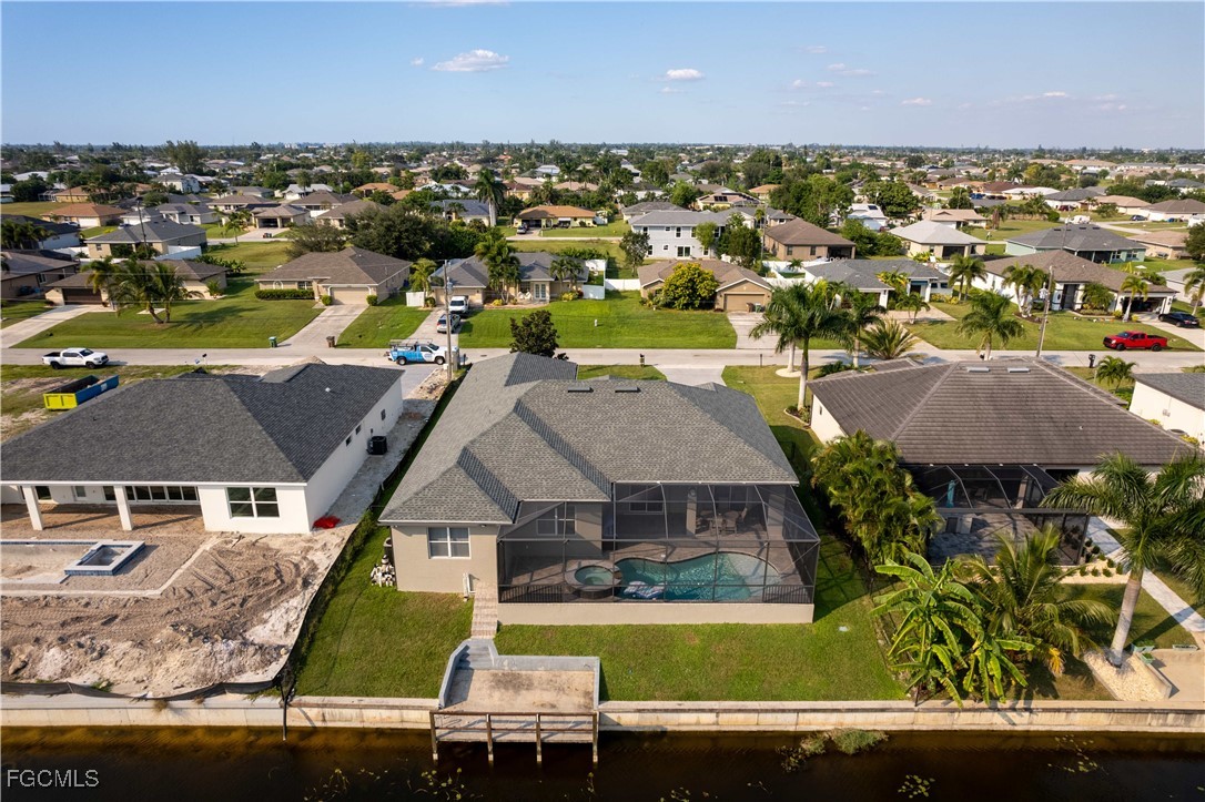 STOP & BEHOLD! If you're searching for a STUNNING WATERFRONT POOL HOME in SW Cape Coral w/ NO FLOOD INSURANCE REQUIRED, this is your opportunity to own THE PIECE OF PARADISE! Located on desirable 80 ft of FRESHWATER FRONTAGE, this home offers perfect blend of LUXURY, COMFORT & NATURAL BEAUTY. Enjoy THE BEST of FL LIVING with SOUTHERN REAR EXPOSURE, providing ideal sunlight all year long - perfect for RELAXING by HEATED SALTWATER POOL & SPA, GRILLING OUTDOORS, or ENJOYING PEACEFUL MORNINGS & LIVELY GATHERINGS in the SCREENED, COVERED LANAI! This BEAUTIFULLY MAINTAINED & MOVE-IN READY HOME features SPACIOUS CLOSED-CONCEPT FLOOR PLAN w/ 2 master suites, 4 bedrooms total, 3 full bathrooms, den, Florida sunroom & angled 2-car garage that ENHANCES CURB APPEAL & provides EXTRA PARKING SPACE. Inside, you'll find 2,553 sq ft of BRIGHT LIVING AREA w/ HIGH CEILINGS, CROWN MOLDING, TILE & PLANTATION SHUTTERS. The LAYOUT offers DEFINED SPACES that DELIVER PRIVACY, QUIET & COZY ATMOSPHERE - perfect for families or buyers who prefer SEPARATION BETWEEN LIVING AREAS! GOURMET KITCHEN is a dream for ENTERTAINERS with GRANITE COUNTERTOPS, FULL TILE BACKSPLASH, abundant SHAKER-STYLE CABINETRY, TWO PANTRIES, island, large sinks, stainless steel appliances, ELECTRIC COOKTOP & DOUBLE WALL OVENS. Whether you're hosting a FORMAL DINNER in the dedicated DINING ROOM or enjoying a CASUAL BREAKFAST at the BAR, this home is perfectly designed for EFFORTLESS ENTERTAINING. The PRIMARY SUITE offers a TRUE RETREAT, featuring TRAY CEILINGS, HIS and HER WALK-IN CLOSETS & PRIVATE SLIDING GLASS DOORS leading directly to POOL/SPA. LUXURIOUS EN-SUITE BATH includes STANDALONE SOAKING TUB, DUAL VANITIES & SPACIOUS TILED WALK-IN SHOWER. SPLIT-BEDROOM FLOOR PLAN offers PRIVACY for everyone with SECOND MASTER SUITE with its OWN EN-SUITE BATH (ADA accessible or easily converted into convenient PET SHOWER STATION for your furry friends!), spacious GUEST BEDROOM & hallway THIRD FULL BATHROOM. Additional highlights include NEW ROOF (2025), FRESH PAING INSIDE & OUT (2025), GENERATOR HOOK-UP in the garage, SCREENED FRONT PORCH, FULLY FENCED YARD, CUSTOM MAILBOX & *NEGOTIABLE FURNITURE*! Even better, ALL CITY ASSESSMENTS ARE PAID, so you'll enjoy CENTRAL WATER & SEWER with NO OUTSTANDING BALANCES! Step outside into your PRIVATE BACKYARD OASIS, where every moment is a chance to UNWIND, ENTERTAIN & MAKE MEMORIES. Whether you’re WATCHING TV, HOSTING KARAOKE NIGHTS, or simply ENJOYING THE FLORIDA BREEZE, the SCREENED LANAI is THE PERFECT SETTING. The property also includes SEAWALL & CANTILEVER CONCRETE DOCK, making it ideal for FISHING, KAYAKING, JET SKIING, BOATING, or EXPLORING the expansive intersecting FRESHWATER CANALS & LAKES that wind throughout the area. Located near recreational areas & short drive to SWFL BEACHES, THIS HOME offers not only a LUXURIOUS LIFESTYLE but also UNMATCHED CONVENIENCE. Don’t miss your CHANCE to EXPERIENCE the VERY BEST of FRESHWATER FRONT LIVING IN SWFL PARADISE!