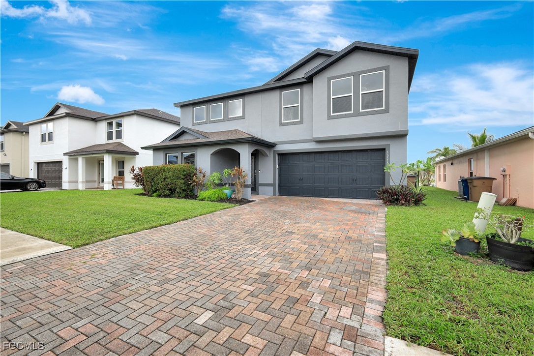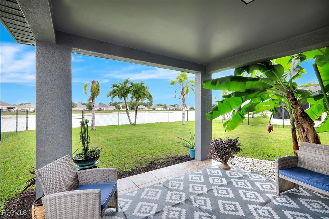 This beautiful two-story home with a two-car garage offers the perfect blend of space, comfort, and style. Step inside to a bright entry that opens to a cozy front den and a separate dining room, perfect for family meals or entertaining guests. The first floor features stunning stone travertine tile throughout, enhancing the home’s elegance and easy maintenance. The open-concept kitchen, dinette, and family room are filled with natural light — a space made for everyday living. There’s also a flex room that can serve as a guest bedroom or home office, plus a convenient half bath. Upstairs, the primary suite offers a private ensuite and walk-in closet, while three additional bedrooms, a full bath, and a laundry room complete the level. Outside, enjoy a fully fenced backyard — perfect for pets, kids, or private outdoor gatherings. Community amenities include a pool, fitness center, playground, low HOA fees, and gated access. Conveniently located near shopping, dining, I-75, and approximately 30 minutes from SWFL International Airport and Gulf Coast beaches. This is a well-maintained home with exceptional size, lake views, and a versatile layout — schedule your private showing today!
