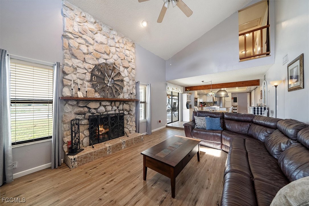 Wonderful SFR Lakefront Living on Lake Alhambra – Western Exposure Pool Home! Enjoy stunning sunset views every evening from a to be built replacement dock or lanai covered pool, this beautifully updated 4-bedroom, 2.5-bath Cape Coral home overlooking the wide waters of Lake Alhambra is the one! With nearly 2,500 square feet of living space, this spacious residence combines comfort, style, and the best of Florida’s waterfront lifestyle. Inside is an open and inviting floor plan highlighted by a newly remodeled kitchen featuring granite countertops, a flat-top range with stainless steel hood, recessed lighting, and elegant details. The kitchen’s pass-through window and two pocketing sliders create a seamless connection to the solar-heated pool, screened lanai, and private wooden dock — all with over 180 deg of lakefront view! Downstairs also includes a formal dining area, a flex room perfect for a home office or game room, and a convenient half bath. Upstairs, the spacious primary suite offers dual sinks and an impressive walk-in shower with dual shower heads, while the three additonal bedrooms all enjoy water views. Outside, you’ll appreciate the western exposure, ideal for sunset watching, and your direct access to Cape Coral’s most unique freshwater system — perfect for boating, kayaking, and exploring six connecting lakes. Located near shopping, dining, and quick access to major highways, this home perfectly balances relaxation and convenience. 4 Bedrooms, 2.5 Baths, 2,471 Sq Ft Solar-Heated Pool with Screened Lanai 83 Ft Lakefront 180 deg View, Roof (2014) Updated Kitchen with Granite & Stainless Spacious Primary Suite with Dual Shower Heads Western Exposure for Gorgeous Sunsets Connected to syatem of Lakes via Freshwater Canal System, rare Lake Alhambra gem a sunset-view waterfront home in one of Cape Coral’s most scenic neighborhoods.