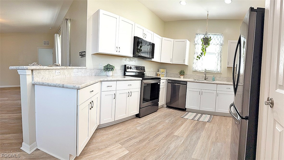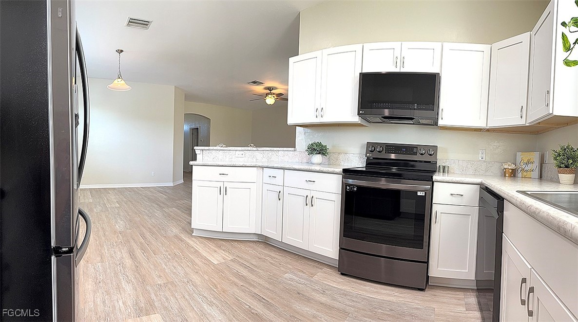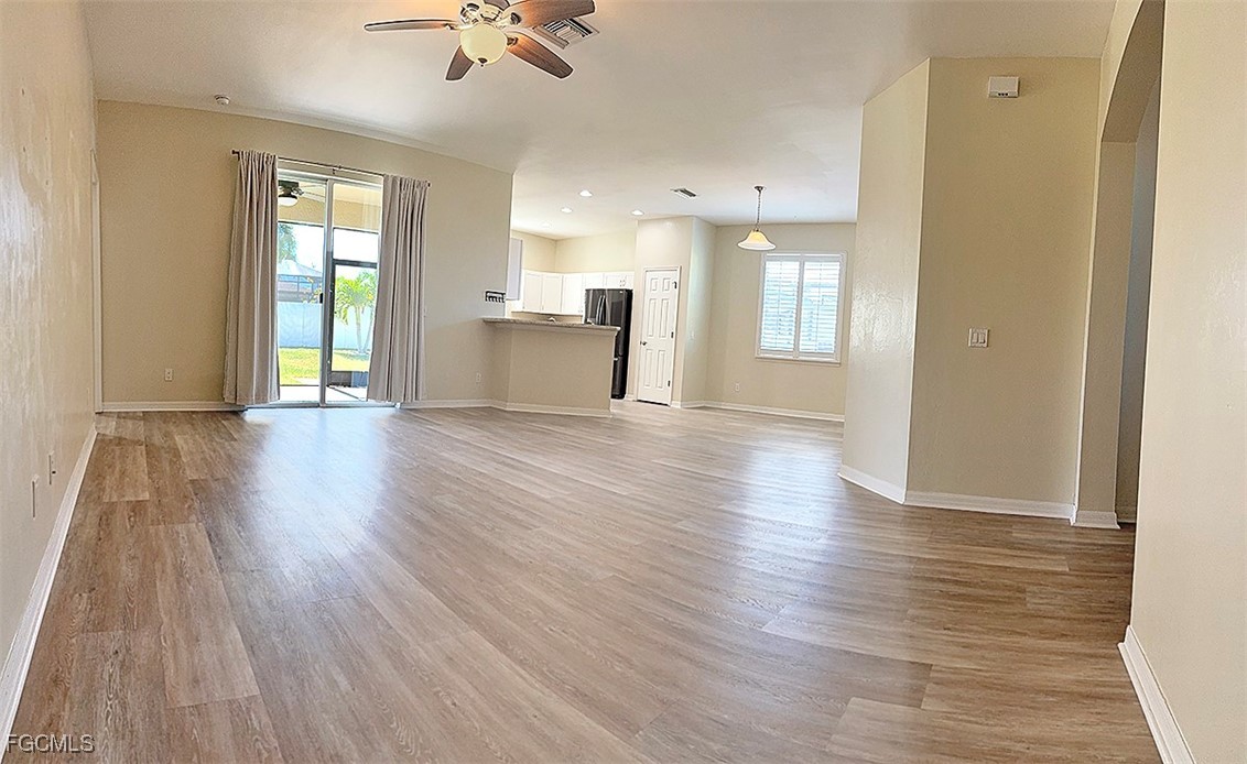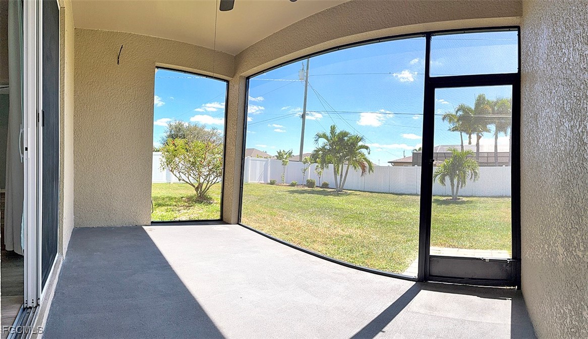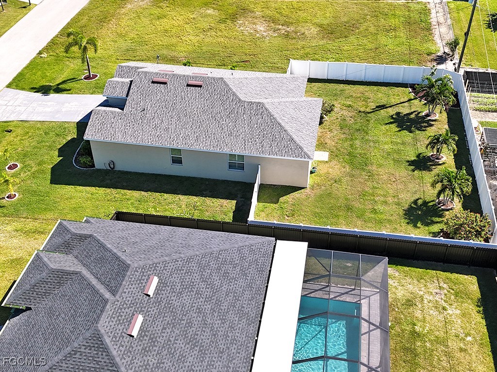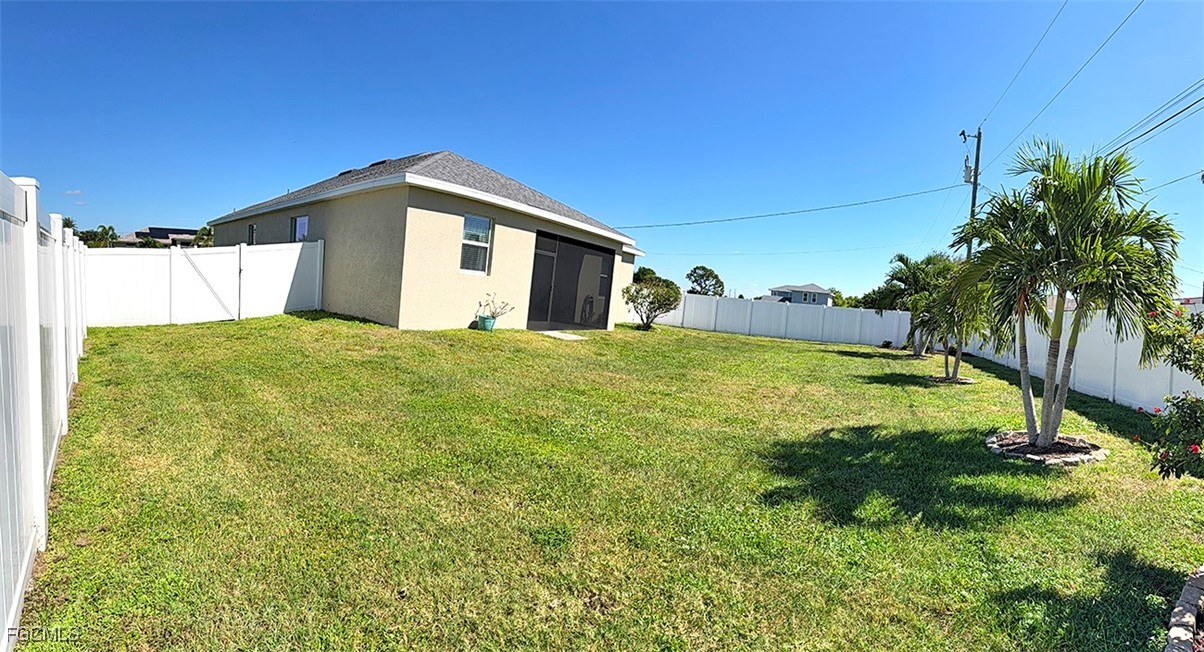 (One or more photos were virtually staged) Welcome to this amazing Tortuga LGI Home in the Southwest Cape! The home is NOT located in a flood zone! This home is better than new with all its additional upgrades. You will love this exclusive floor plan including 3 bedrooms, 2 full bathrooms, a large kitchen with dining area, spacious living area, and screened lanai. The kitchen features LG stainless steel appliances (2024), plenty of new white cabinets (2025) for storage, pantry, new countertops (2025), undermount kitchen sink, breakfast bar and eat-in area. The master bedroom is very spacious with the master bathroom having a separate walk-in shower, garden tub, and a huge walk-in closet. The split bedroom plan is perfect for a large family or guests. You have two additional bedrooms with a full bathroom. The indoor laundry includes newer LG washer and dryer (2024). The back yard will be your private oasis including a large screened lanai for enjoying your outdoor meals, white privacy vinyl fence, and landscaping to set a serene setting. You can also conveniently store a boat/trailer inside the fenced yard and add a pool if you wish. The two car garage also includes storage units. Other upgrades: Roof (2022), Vinyl Flooring (2025) AC (2022), AC Handler (2021), Hot water heater (2025) Conveniently located to restaurants, shopping, medical facilities, and schools. City Sewer and Water Assessments will be PAID IN FULL at closing with an acceptable offer!