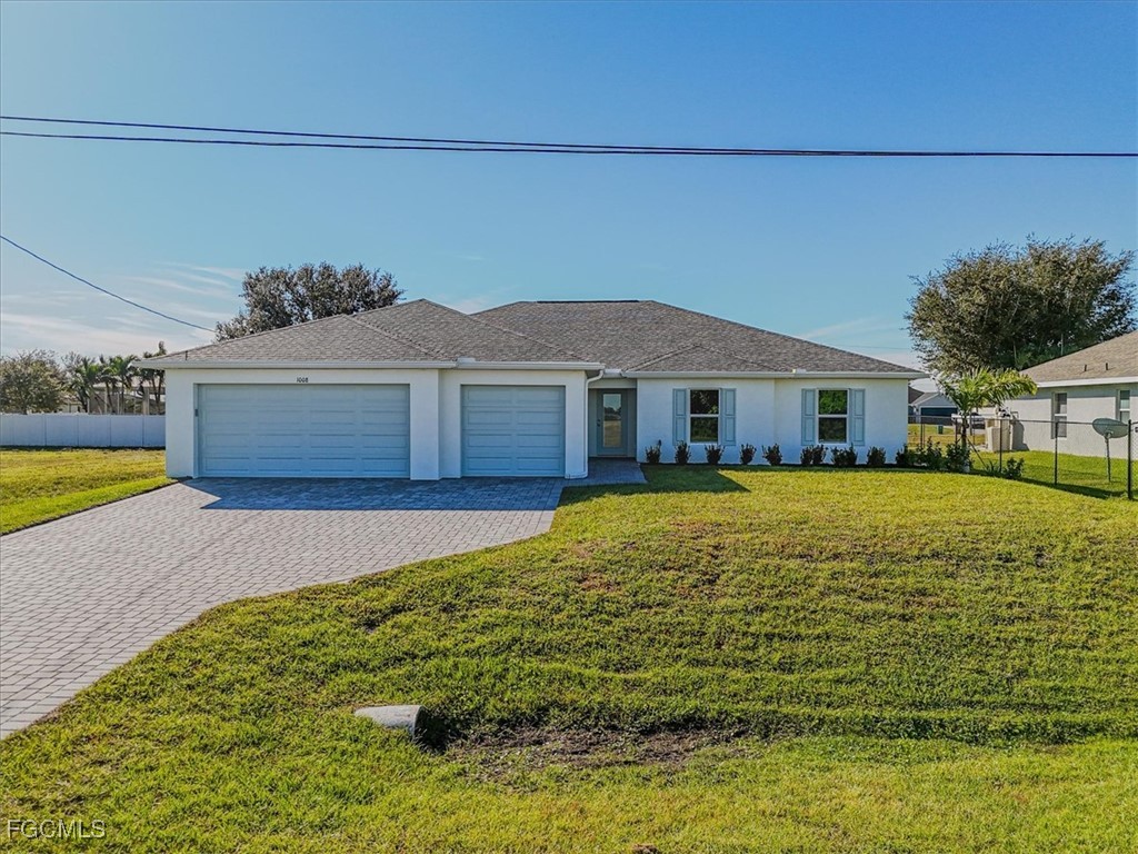 SPACIOUS POOL HOME WITH DUAL PRIMARY SUITES! Welcome to the Paradise Cove Plan—a stunning, expansive retreat designed for comfort and elegance! This huge 4-bedroom, 3-bath home boasts two luxurious primary suites, making it perfect for multi-generational living or accommodating guests in style. Step inside to discover an open-concept great room with soaring ceilings, seamlessly blending indoor and outdoor living. The heart of the home is the gourmet kitchen, featuring soft-close, all-wood cabinetry, quartz countertops, stainless steel appliances, and an oversized walk-in pantry—a dream for any chef! The first primary suite is a private oasis, spacious enough for a king-size bed and a cozy seating area. Enjoy direct access to the lanai and pool, plus a spa-inspired ensuite with a freestanding soaking tub and separate shower. The second primary suite is equally impressive, offering a full bath that also serves as a convenient pool bath, along with a generous walk-in closet. Built by a trusted local builder, this home offers incredible value in Cape Coral with impact windows for added security and lower insurance costs, no flood zone offering peace of mind and savings, and a 10-year structural warranty for long-term confidence. This is The Paradise Cove Plan.