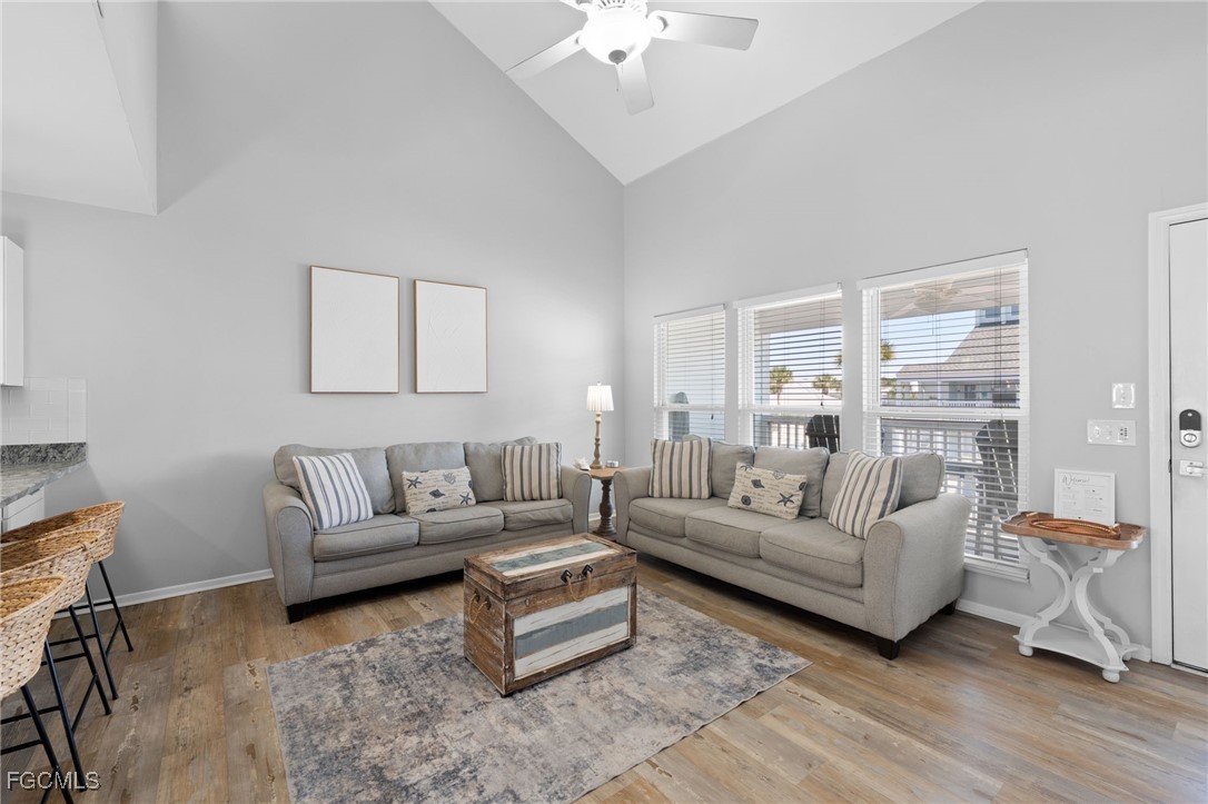 Step inside to find a bright, open living space with coastal décor, stylish furnishings, and easy-care lpv flooring throughout. The updated kitchen features stainless steel appliances, and crisp white cabinetry — perfect for preparing meals between beach days. Both bedrooms are comfortably sized, while the bathrooms have been refreshed with contemporary fixtures and finishes.
