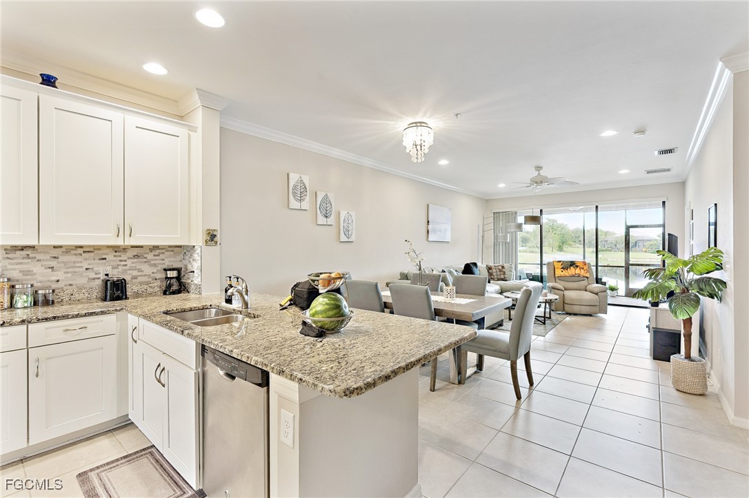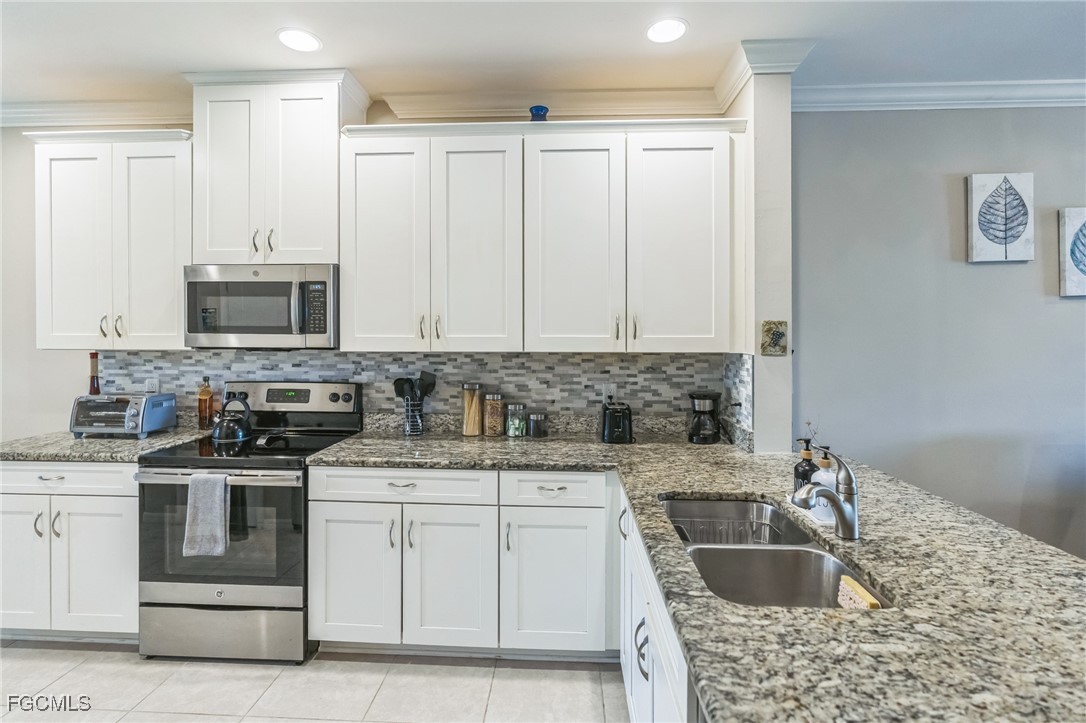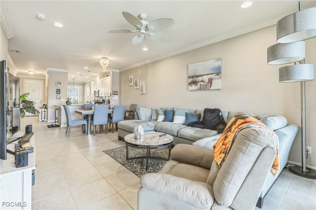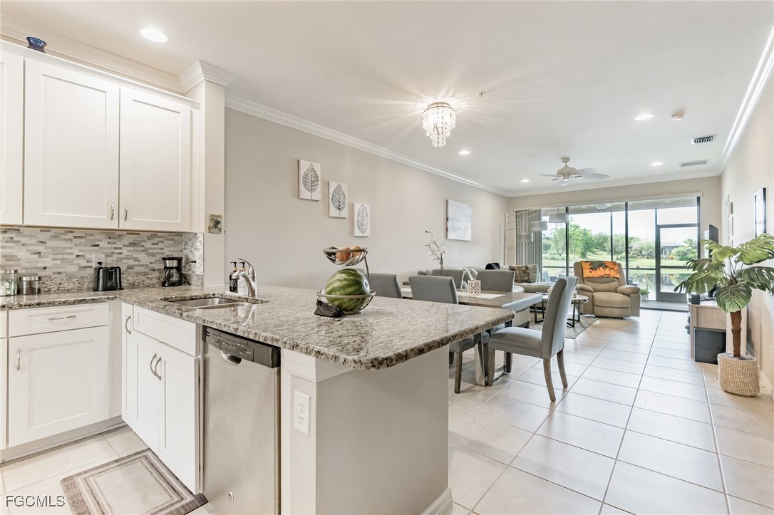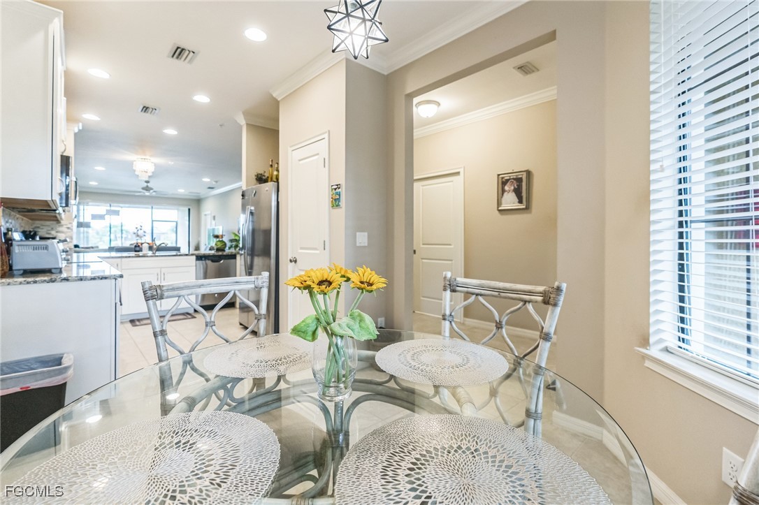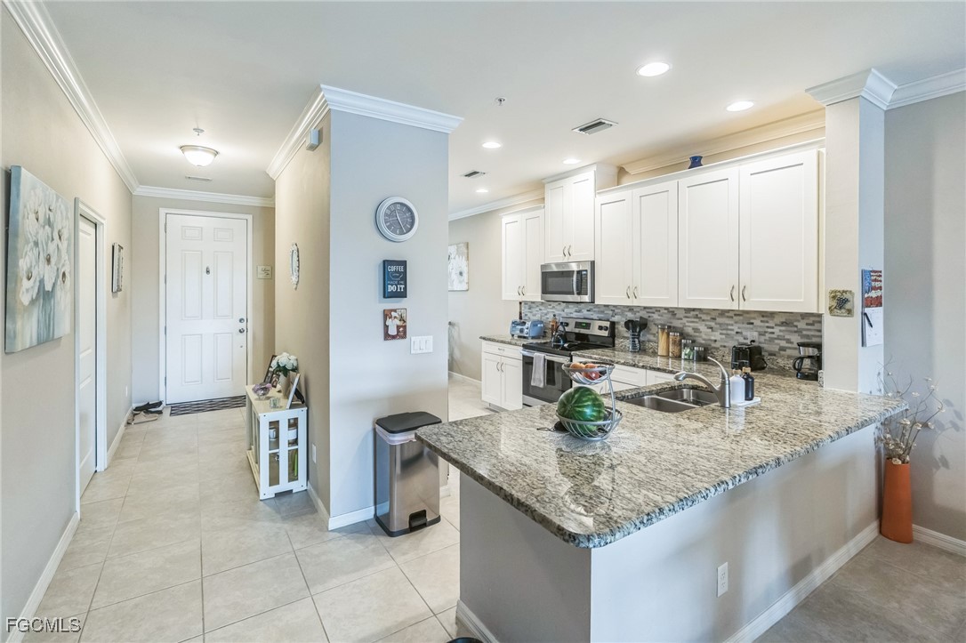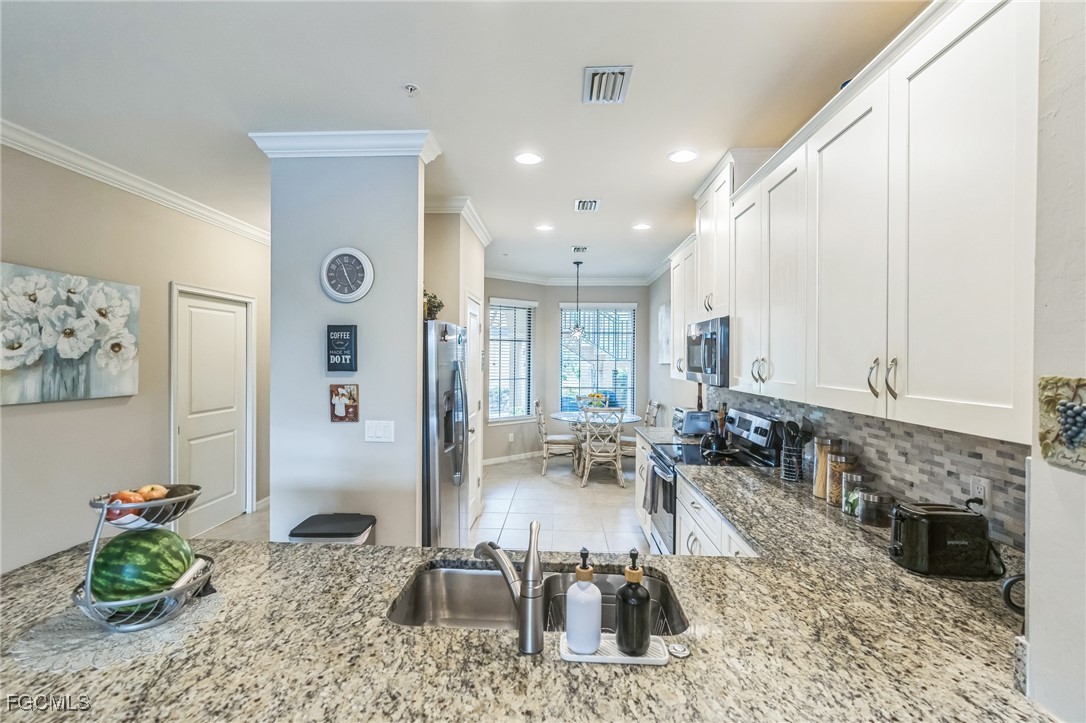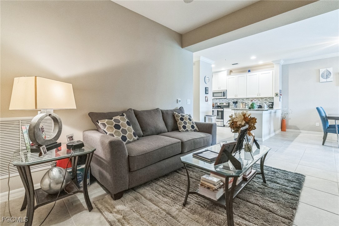 Welcome to this beautifully maintained 2-bedroom, 2-bath condo in the heart of Naples! This bright and spacious home features an open-concept layout with neutral tile flooring, crown molding, and abundant natural light throughout. The kitchen is equipped with white cabinetry, granite countertops, and a breakfast nook that opens to the living and dining area—perfect for entertaining. Enjoy a serene ambiance with coastal-inspired decor and an oversized sectional ideal for relaxing. Located in a well-kept community close to shopping, dining, beaches, and everything Naples has to offer. This move-in-ready unit offers comfort, convenience, and Florida charm! - All information and images have been provided directly by seller.
