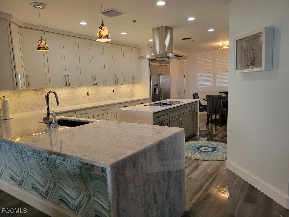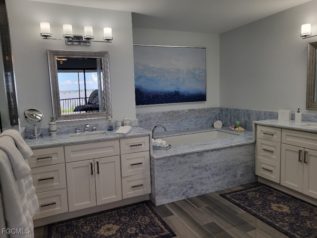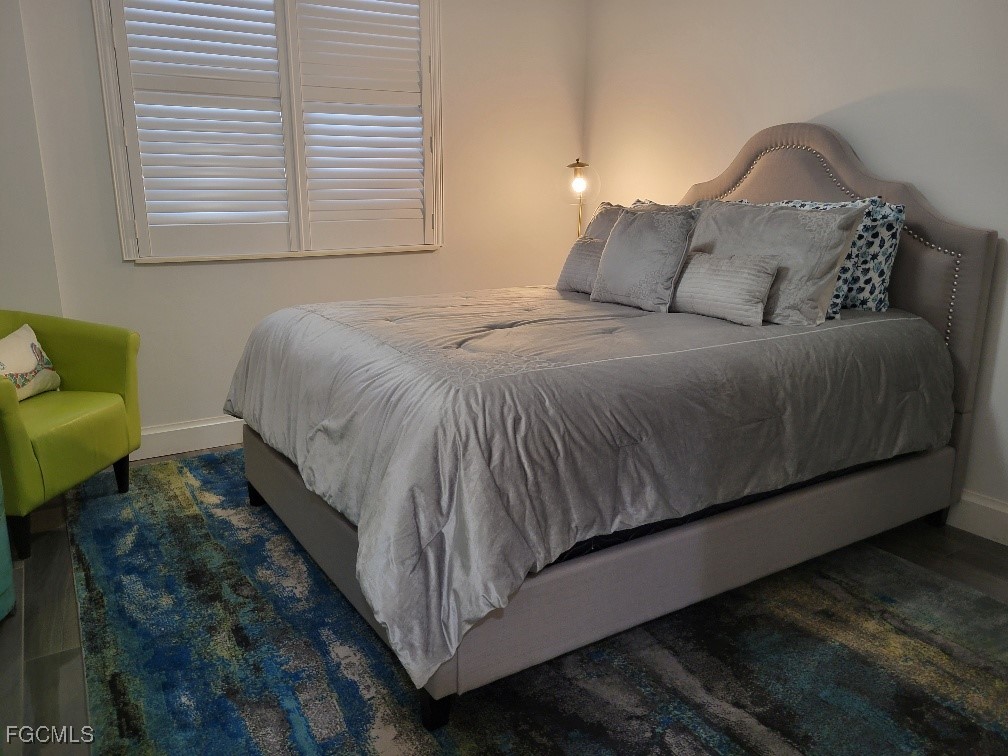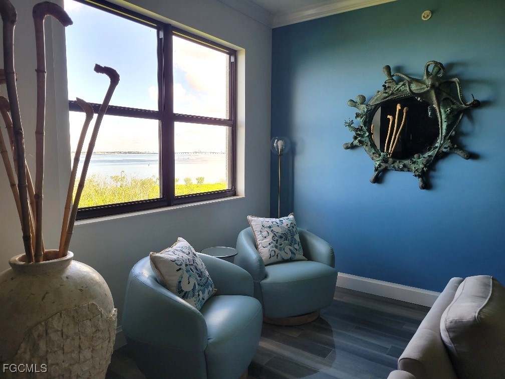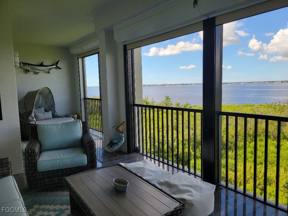 eel the tropical breeze while you relax on this gorgeous spacious lanai. This Florida Feel 6th floor, 3 bedroom, 2 1/2 baths, Palmas Del Sol condo has been fully renovated with high end appointments throughout. Unobstructed north western views over the Caloosahatchee River offer unparalleled sunsets to the West. Luxury designer High-polished French grey wood tile floors throughout, exotic blue diamond and opal white marble countertops, spa master bathroom retreat, custom built-in 42' white shaker cabinets, gourmet chef's kitchen with high-end built-in Kitchen Aid Professional Appliances, and wet bar with wine fridge. Easy walk to the beautiful neighborhood pool! MINIMUM 3 MONTHS - No pets per HOA rules.