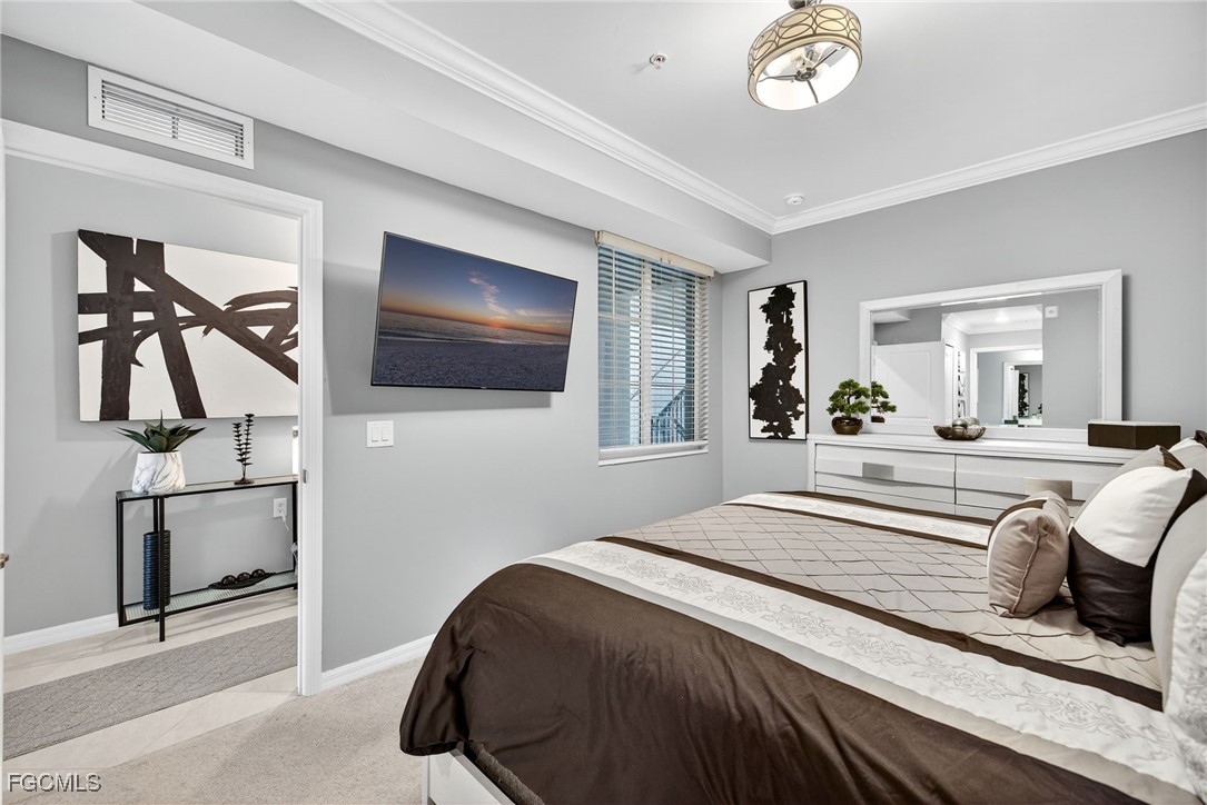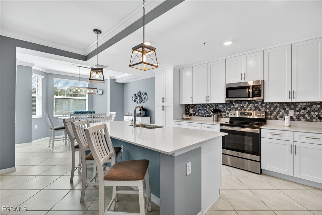 Welcome home! This terrace condo has the GOLF MEMBERSHP INCLUDED! Just bring yourself and your suitcase because this home is being sold furnished. This is known as the "Birkdale" layout. This model comes with 2 bedrooms, 2 bathrooms, about 1,200 square feet of living space, an exterior storage unit AND a 1-car covered parking space. Additionally, this unit is accessible by the stairs or the elevator. Walking inside and through the main hallway, you'll head right into your open kitchen which overlooks the living room and lanai. Finishes included in your main living spaces include everything from sleek quartz countertops with an oversized island, stainless steel appliances, crown molding, tile flooring, white cabinetry, beautifully updated backsplash and updated ceiling fixtures. With bay windows in the eat-in kitchen and sliding glass doors in the living room, you have the luxury of enjoying golf course & water views without even stepping outside! Back on the opposite (entry) side of the condo, you have your 2 spacious bedrooms and bathrooms. Your primary bedroom offers a large walk-in closet, linen closet, and a beautifully tiled walk-in shower while your guest bedroom has a closet and it's own nearby bathroom. It's meticulously maintained and it's move-in ready! Outside of your home and within the gates of The National Golf & CC, boasts an 18-hole championship golf course, a large resort-style pool, a Chickee Bar, 6 Har-Tru tennis courts, 8 pickleball courts, and 2 bocce ball courts. Living here means more than just residing—it's a vibrant lifestyle and experience. Outside of the gates, you can enjoy North & South Parks, a water park, Ave Maria University events, local dining, shopping and so much more! Come experience everything you need in the fastest growing area in Naples!