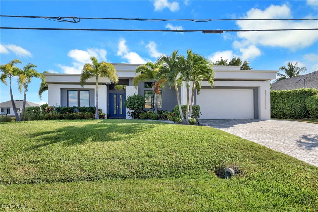 Discover modern coastal living in this Beautiful custom Home, located in the serene Southwest Florida landscape. Situated on a spacious quadruple lot , this contemporary flat-roof residence provides ample privacy and room to spread out, with direct access to a wide freshwater canal—ideal for kayaking, fishing, or relaxing by the water. Across the street from the prestigious Coral Oaks golf course, you’ll have easy access to golfing, all within a peaceful canal-front setting and without any membership fees .