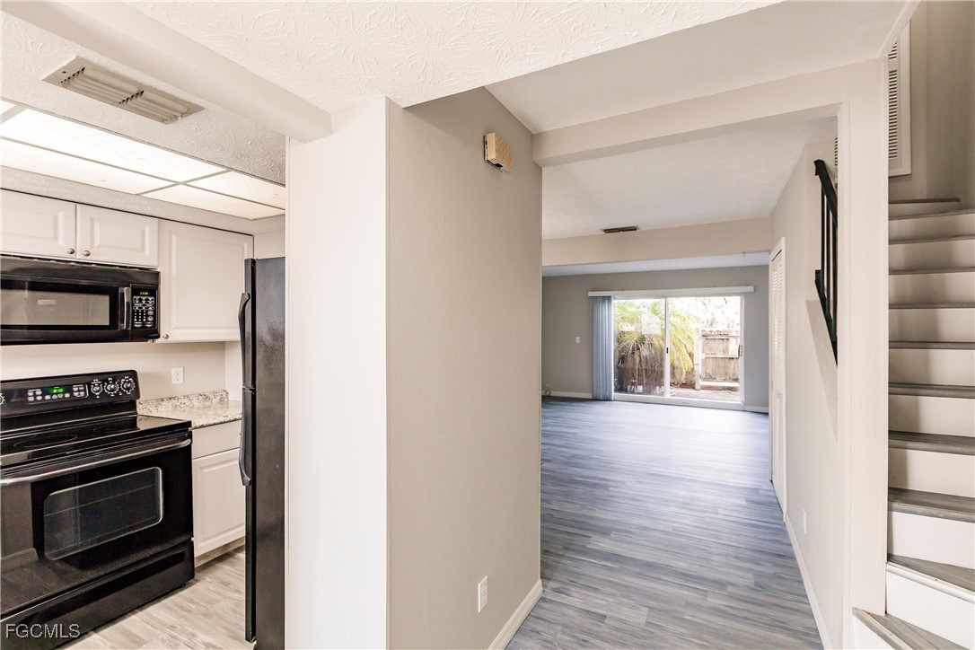 Frightfully Fabulous in Coral Bayview I! Step into this charming 2-bedroom, 1.5-bath townhome that’s full of seasonal spirit and year-round appeal. The open-concept layout showcases stylish laminate flooring throughout the main level, a beautifully refreshed kitchen with crisp white cabinetry, granite-style counters, and sleek black appliances — a hauntingly good combination of style and function!