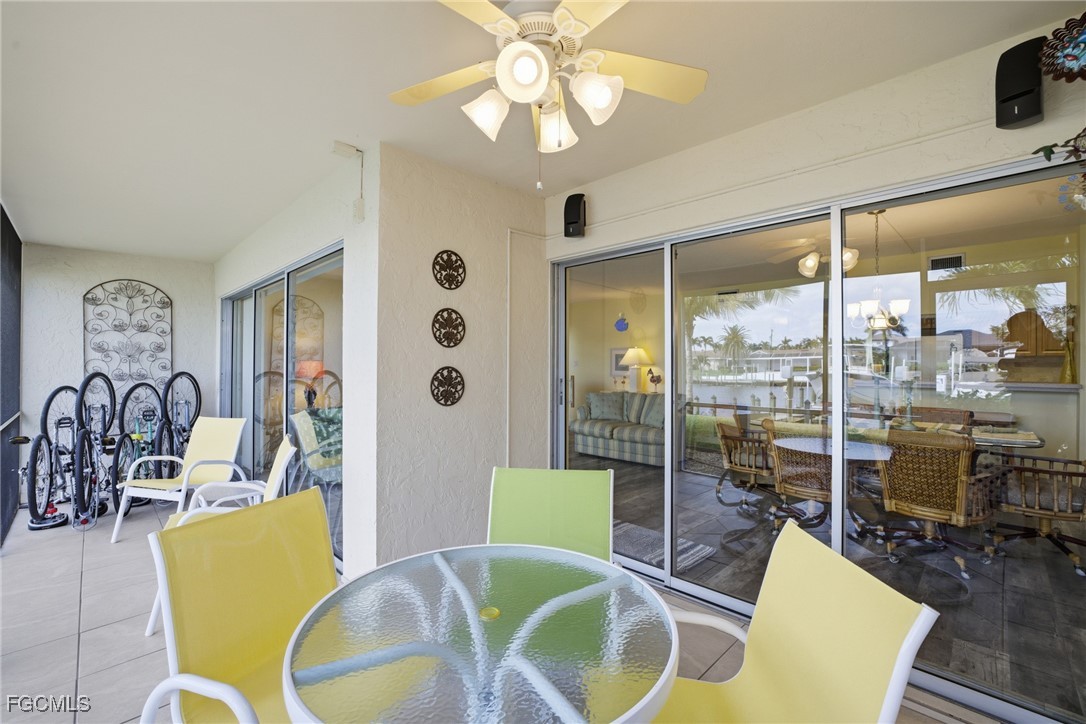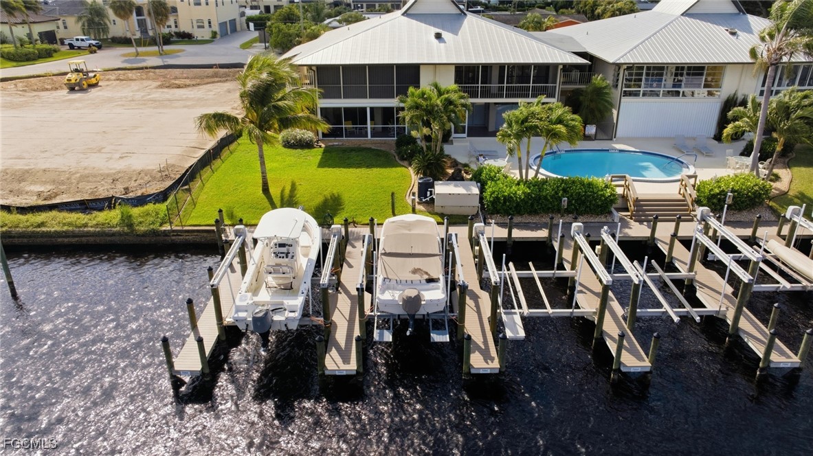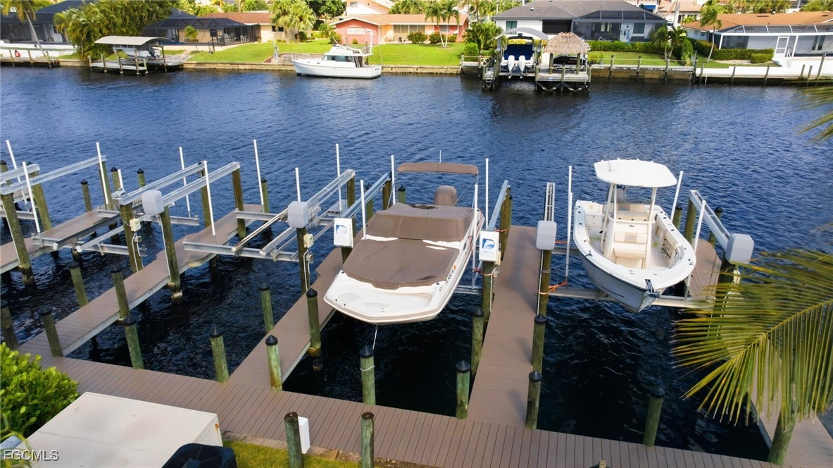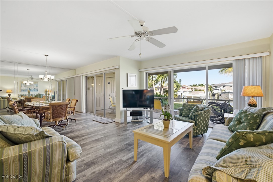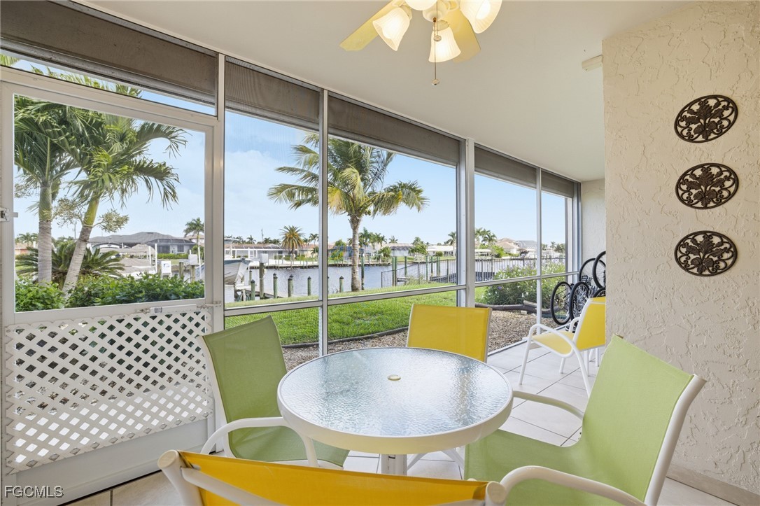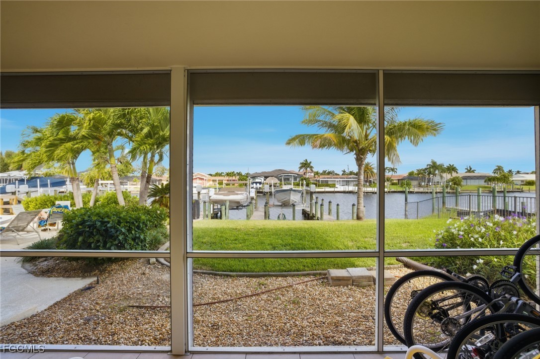 Live the waterfront dream! HOA FEES PAID THROUGH THE END 2025 FOR YOUR CONVENIENCE! This first floor, TURNKEY 2-bedroom, 2-bath condo offers access to the Caloosahatchee River in minutes! Perfect for boaters and sunset chasers alike. The interior has been beautifully updated with luxury vinyl floors throughout, impact glass windows, ELECTRIC HURRICANE SHUTTERS on lanai and a bright, modern style that feels like vacation every day. The primary suite is impressively large with a HUGE WALK- IN CLOSET, his & hers sinks and private toilet room with a walk in shower. There is a large lanai over looking the waterway beyond (and your boat in your backyard) complete with additional beverage fridge and room for plenty of patio furniture. Just beyond find your own 32 FT. composite dock space and 10,000 lb boat lift—ready for your next adventure! BOAT IS AVAILABLE FOR PURCHASE SEPARATELY. The community features a sparkling heated and newly resurfaced pool, assigned covered parking space - NEW CARPORTS (2024) and a dedicated extra storage room for all your gear! Villa Maria condos have a NEW METAL ROOF (2020), and low-maintenance living for the perfect waterfront lifestyle you’ve been dreaming of—just bring your boat and enjoy! HOA fees include insurance (hurricane & flood), water, sewer, lawn mowing, roofs, painting, pool and SO much more. **PET FRIENDLY** ENJOY EASY LIVING IN SOUTHWEST FLORIDA. Call today for a private showing.