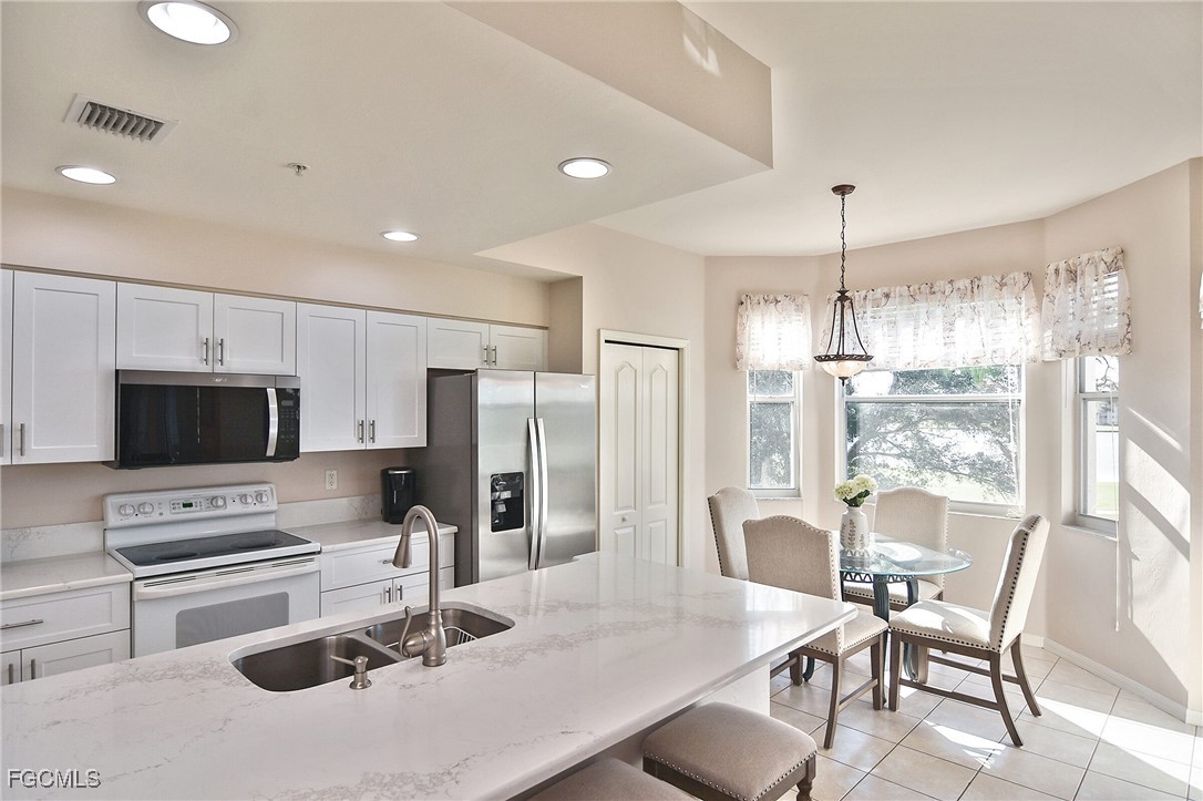 You will love this 3rd floor Brookside! This 2Bed/2Bath condo located in Heritage Palms Golf and Country Club is being offered turnkey! Best of all is the amazing view of the large lake and golf courses! Nicely updated kitchen boasts new cabinets, quartz counter tops and newer appliances. Brand new AC unit replaced June 2025 and the water heater replaced in 2024. Tile and laminate floors so no carpet! This condo has been well cared for. A few highlights lanai has been tiled and rescreened, windows ballast have all been replaced so easy to open and new rollers on sliding doors. Natural light shines all day with southern exposure. Personal storage unit and covered parking space is included.