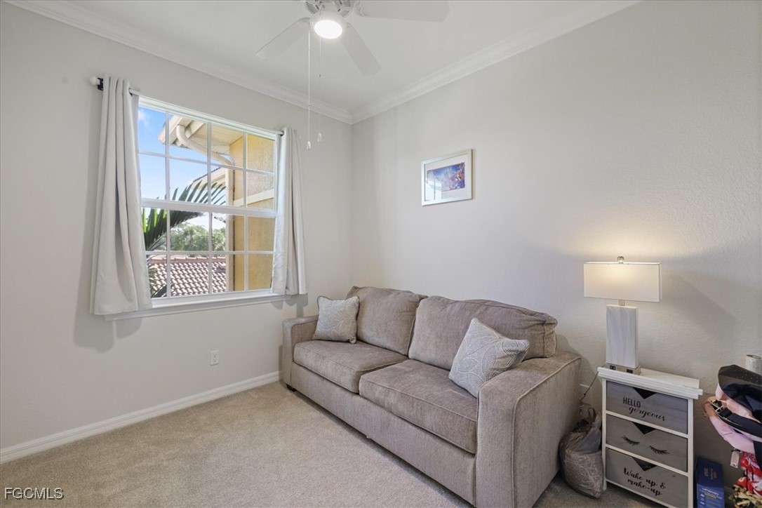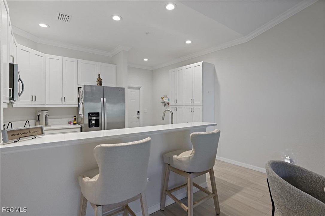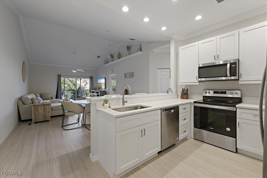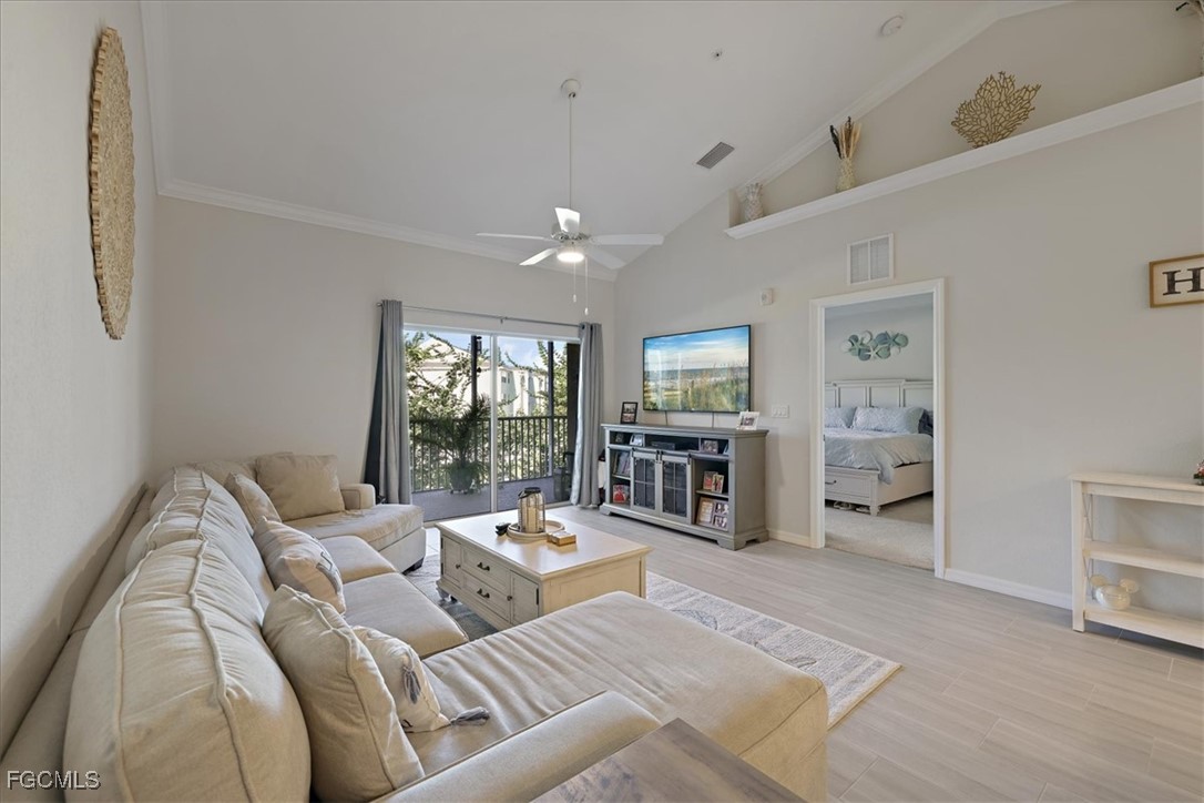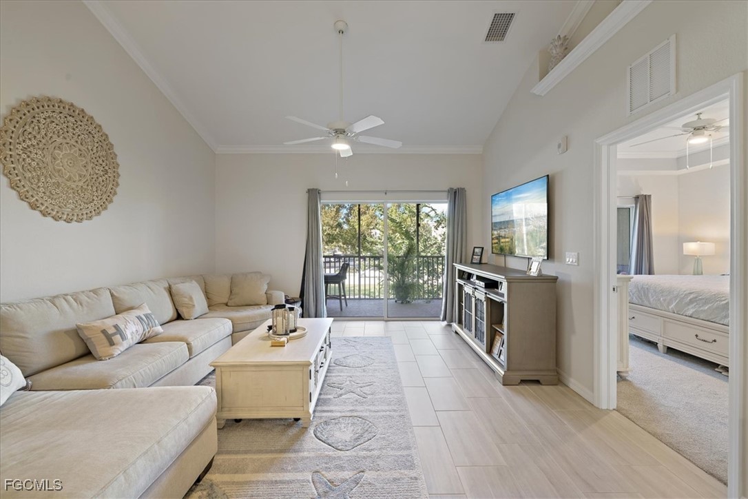 Discover modern Florida living in this like-new 3 bedroom, 2 bathroom condo located in a desirable gated community filled with resort-style amenities. This beautifully maintained second-floor unit includes a private garage and a screened lanai, offering comfort, style, and peace of mind, all in a no flood zone. Inside, you'll find tile flooring throughout, LED lighting, and elegant crown molding that enhance the home's bright, open layout. The kitchen features white shaker-style cabinets, quartz countertops, and stainless steel appliances, perfect for cooking, entertaining, and everyday living. Both bathrooms offer matching modern cabinetry and quartz surfaces for a cohesive, high-end look. Enjoy the privacy and security of a gated, amenity-rich community, complete with a clubhouse, fitness center, pool, and more. Conveniently located near shopping, dining, and top local attractions, this condo combines luxury and location in one incredible package. Whether you're looking for a primary residence, seasonal getaway, or investment property, this move-in ready condo has it all. Schedule your private showing today and experience the best of Florida condo living!