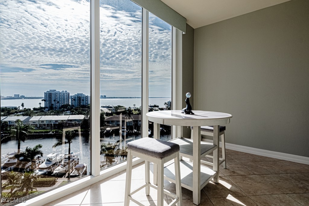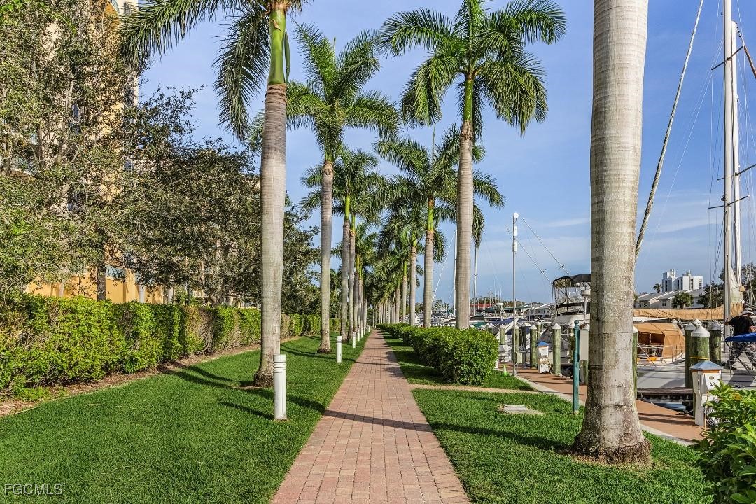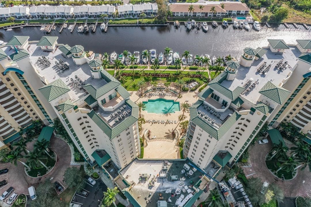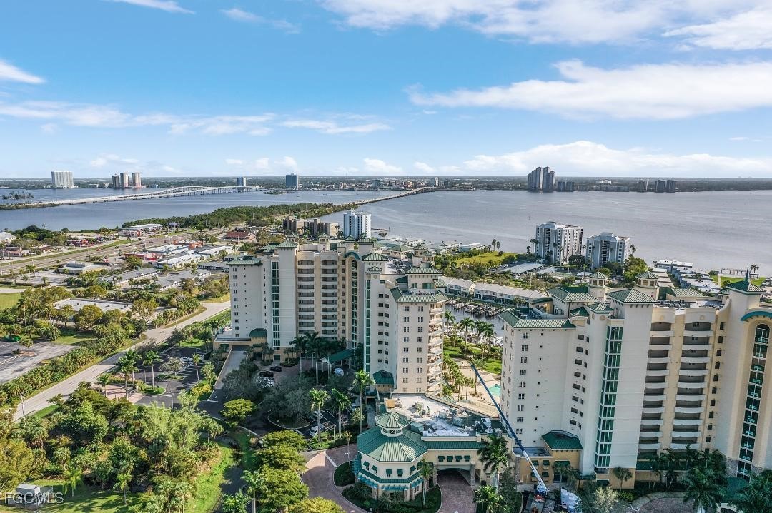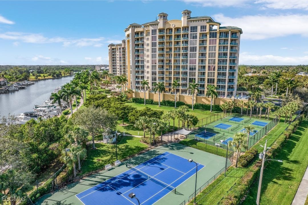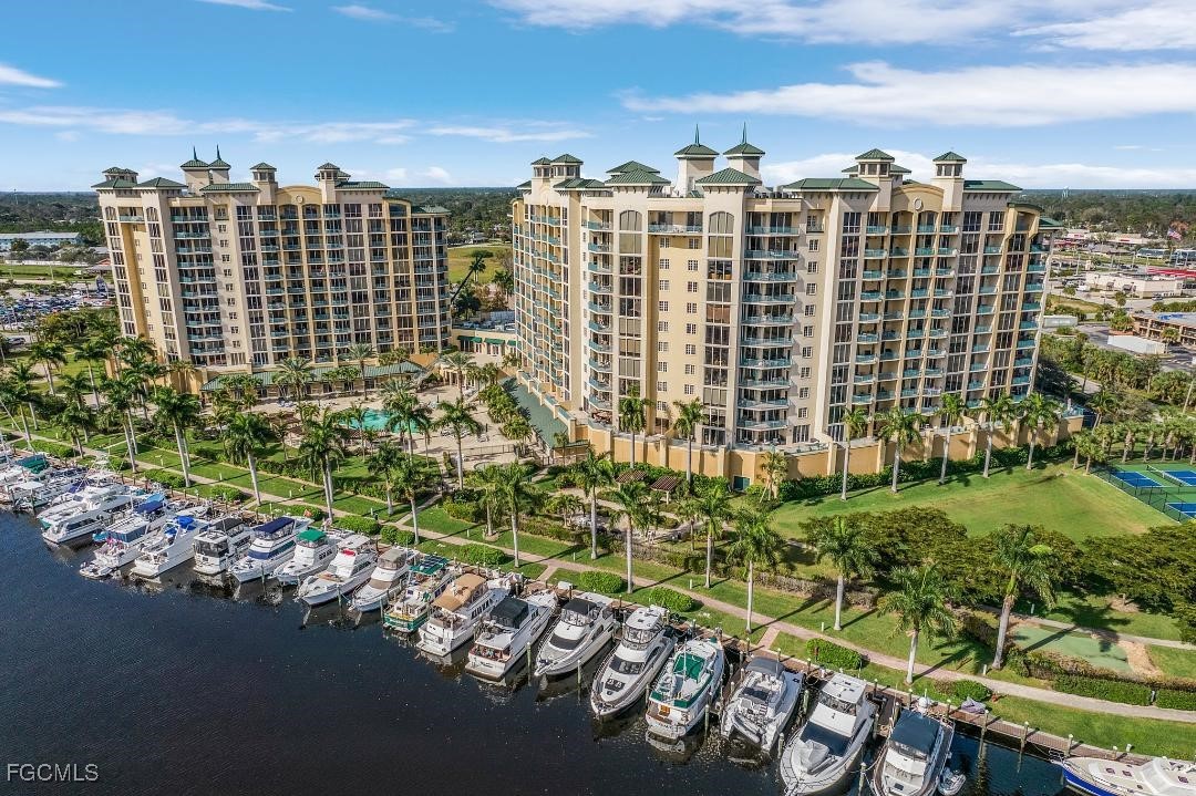 Start and End your days with views of the Riverfront, Pool and skyline of the River District. This SMART HOME is Techies Delight ! Luxury Waterfront Capricorn Open Floor Plan with views from Living Room, Dining Room, Kitchen with granite counter tops and 42 inch wood cabinets. Tile set on the diagonal. Primary Suite with 2 large walk in closets and Guest room have river views and newer carpet. Residents of North Star Yacht Club enjoy resort-style amenities situated on over 12 acres. Access to clubhouse, fitness center, aerobics room, steam rooms, billiards room, movie theater, fully equipped kitchen and a business center. Step outside for access to Olympic size pool, jacuzzi, BBQ grills, pickleball & tennis courts , bocce ball court and a dog park. Stroll along the marina to Sunset Harbor Village offering four restaurants and a marina with slip rentals or trolley across the bridge to downtown Fort Myer's River District.