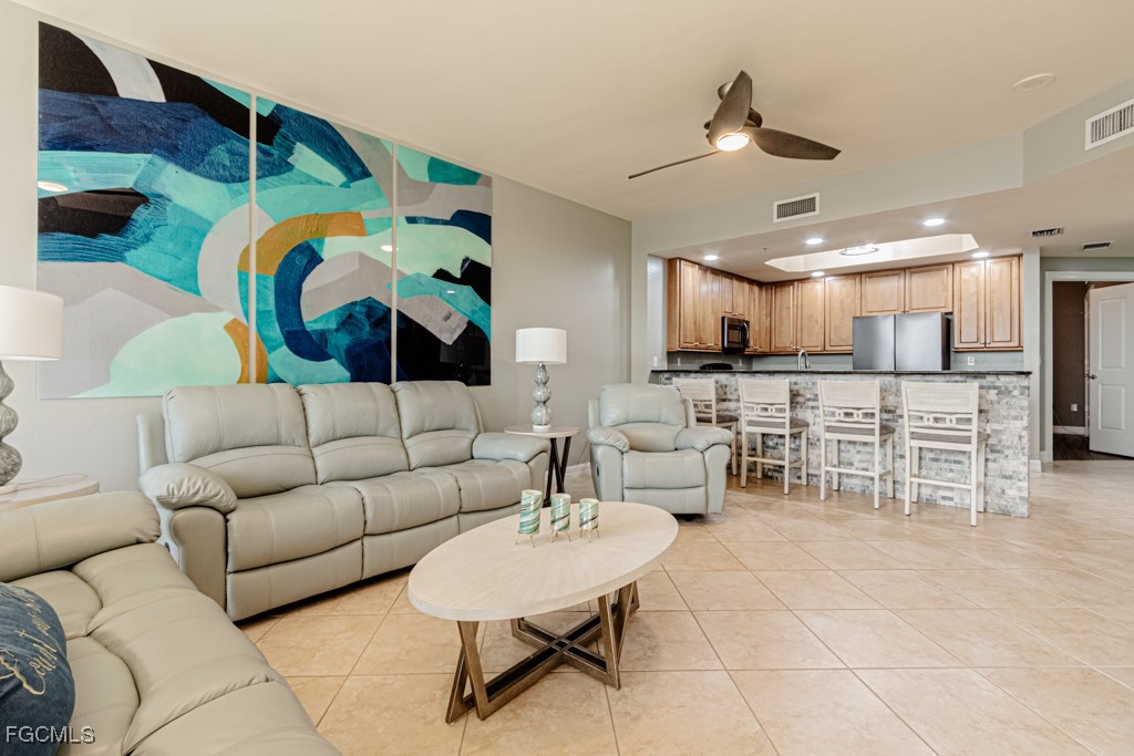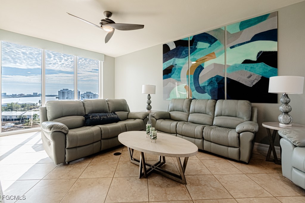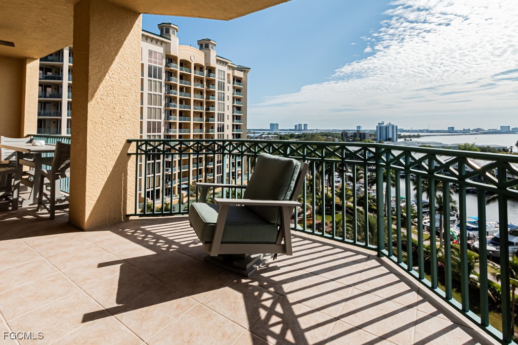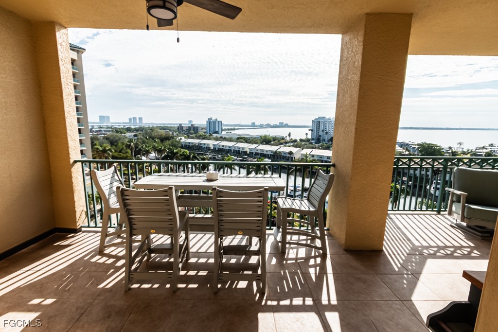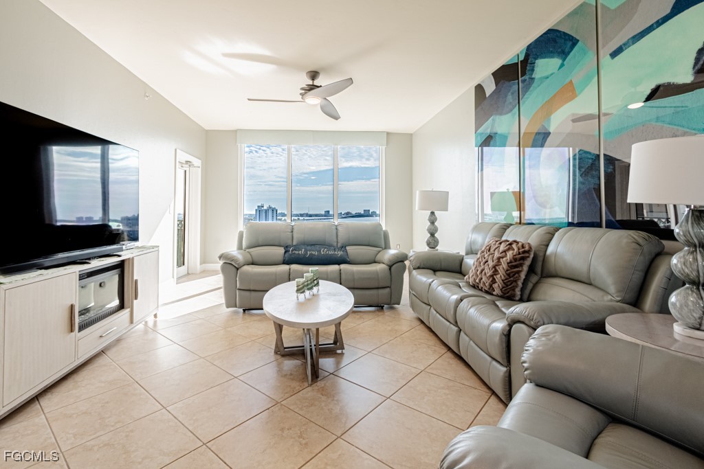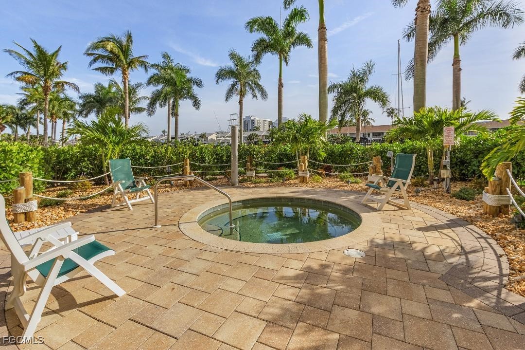 Start and End your days with views of the Riverfront, Pool and skyline of the River District. This SMART HOME is Techies Delight ! Luxury Waterfront Capricorn Open Floor Plan with views from Living Room, Dining Room, Kitchen with granite counter tops and 42 inch wood cabinets. Tile set on the diagonal. Primary Suite with 2 large walk in closets and Guest room have river views and newer carpet. Residents of North Star Yacht Club enjoy resort-style amenities situated on over 12 acres. Access to clubhouse, fitness center, aerobics room, steam rooms, billiards room, movie theater, fully equipped kitchen and a business center. Step outside for access to Olympic size pool, jacuzzi, BBQ grills, pickleball & tennis courts , bocce ball court and a dog park. Stroll along the marina to Sunset Harbor Village offering four restaurants and a marina with slip rentals or trolley across the bridge to downtown Fort Myer's River District.