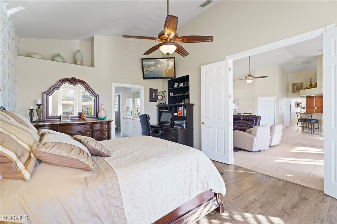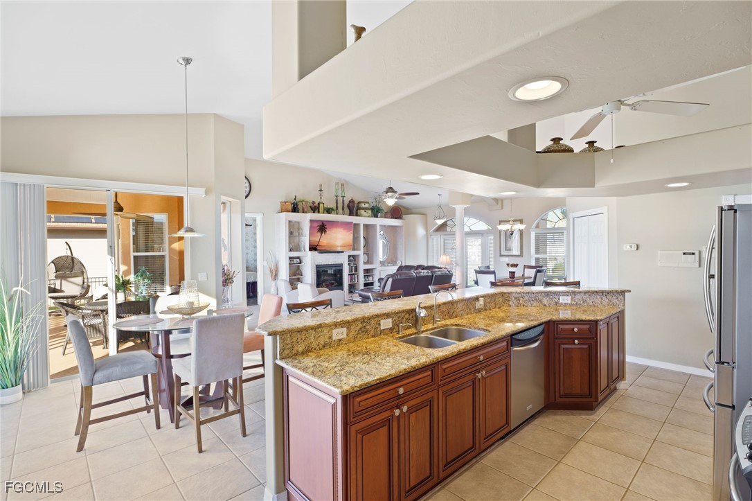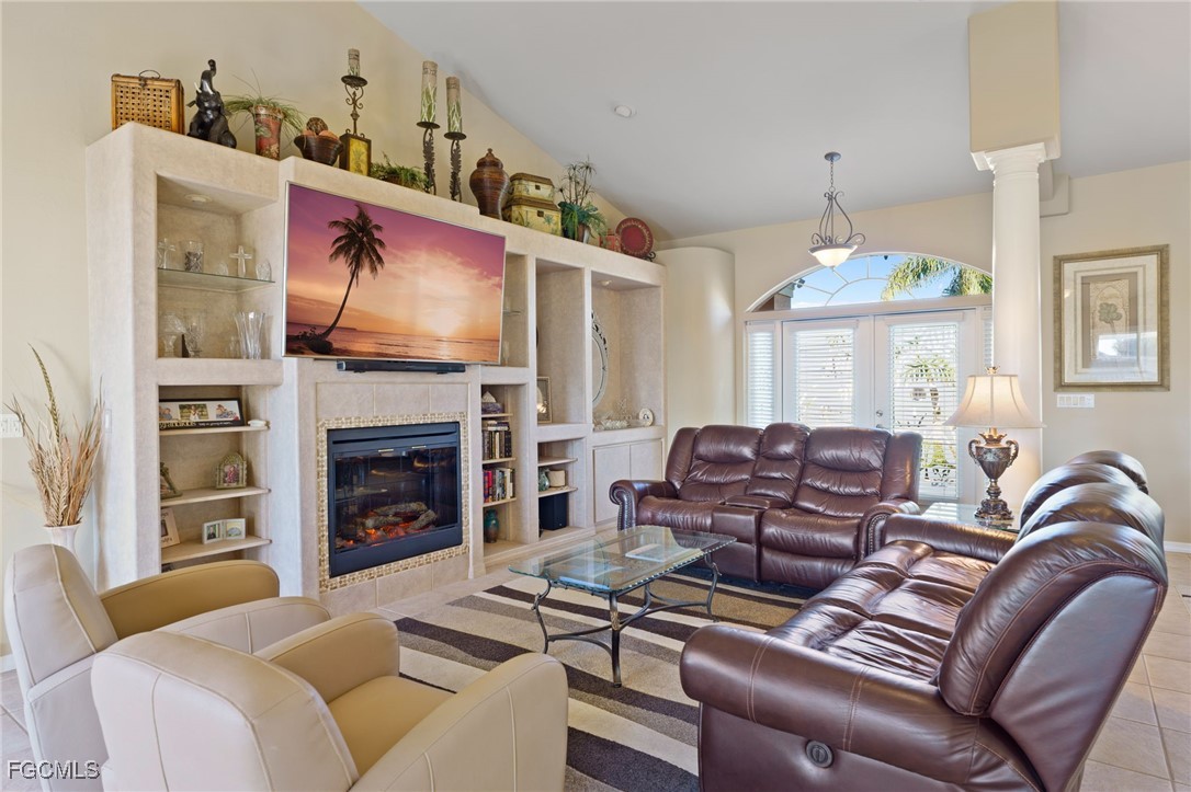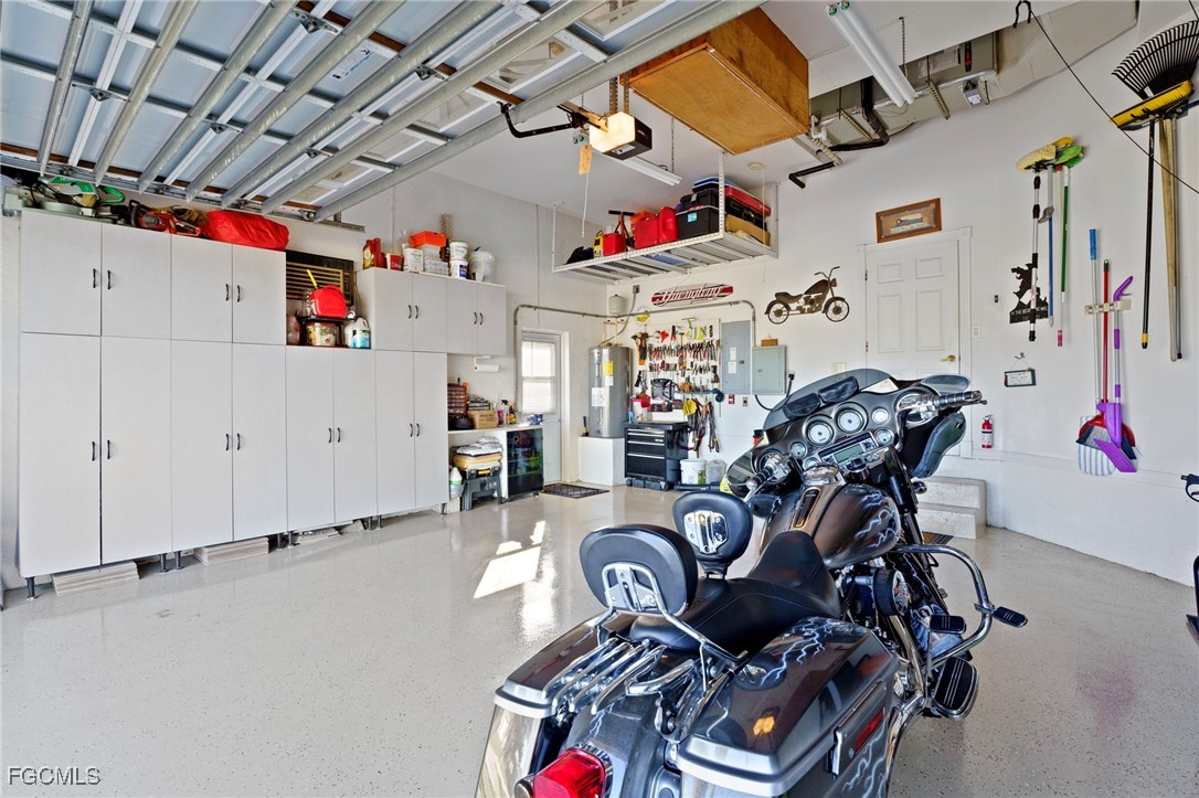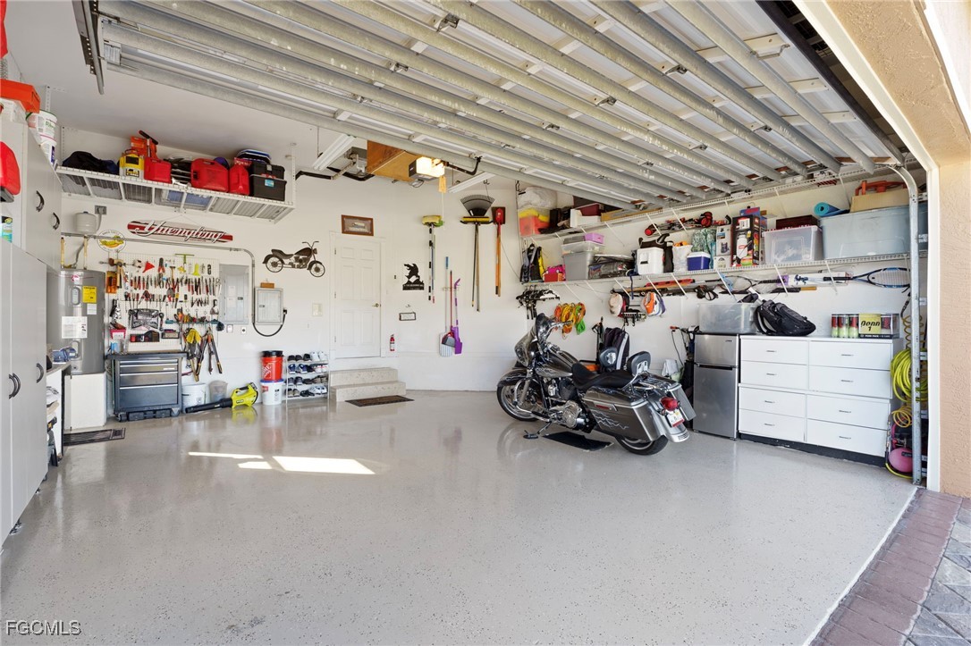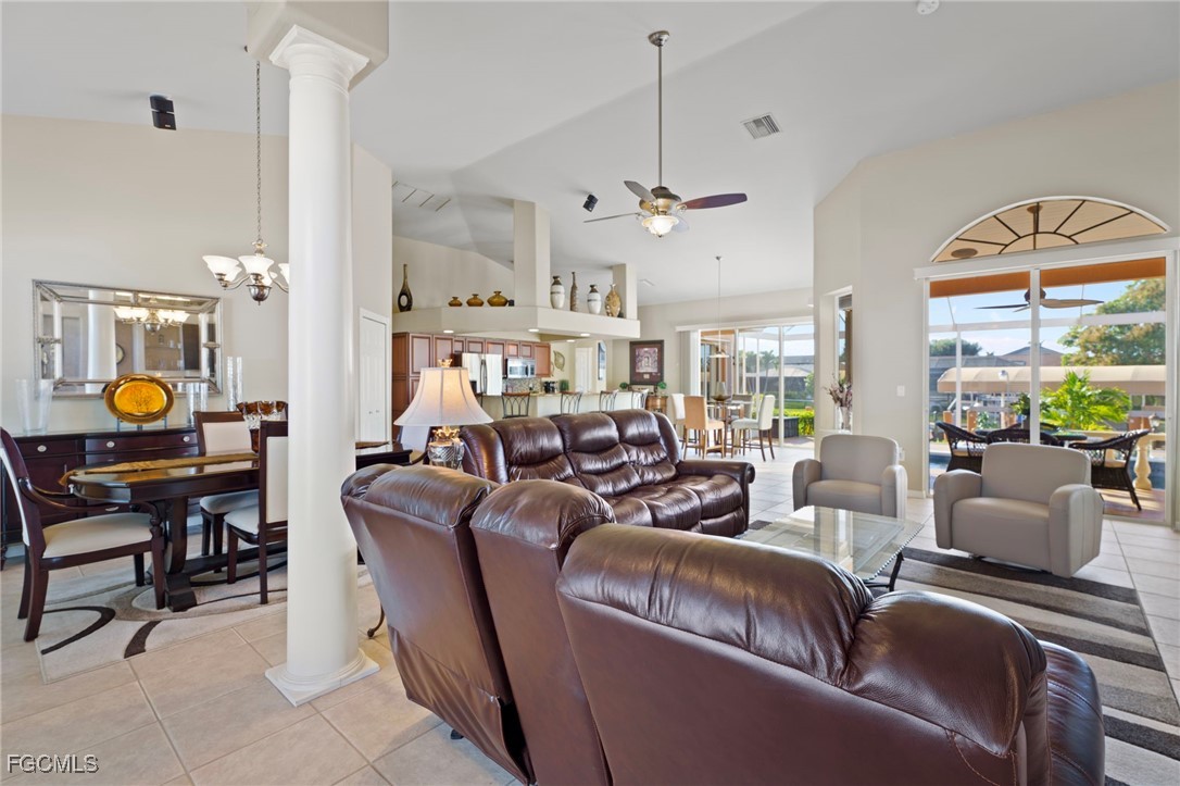 Welcome to your dream home in Cape Coral, where luxury meets functionality in this stunning Western Exposure SAILBOAT GULF ACCESS NO BRIDGES single family home. Boasting just under 2000 sq ft of living including 3 large bedrooms, 2 bathrooms, 2 car garage and soaring high ceilings, this property is the epitome of waterfront living. This impeccably cared for home features wood cabinets, granite countertop in the kitchen, stainless steel appliances, built in safe, Marble countertops in Bathrooms, Jacuzzi tub in Primary Bathroom, crown molding in bedrooms, AC unit in Garage and epoxy floors so clean you could eat off of them. As for the Screened in patio and pool deck.... the pool was just resurfaced with Pebble Tec material, and it has an electric pool heater for those who like it hot. The Picture Window Screen Enclosure was replaced in 2023 with the latest state of the art System that reinforced the verticals with steel and concrete for extra strength and durability. But the real showstopper is the incredible dock system with a wood-stained captain's walk that pans the entirety of the back property line and a 25,000lb boat lift with a canopy. The high-powered boat lift has 4 motors making it easy to level out the boat to your liking. Each piling is also wrapped to prevent deterioration from the weather. No bridges deep water canals make it easy to access the open water for a day of boating and fishing. The circular paver drive and walkways up and down the property add to the curb appeal of this home. NEW METAL ROOF in 2023 by Roman Roofing with transferable warranty. This home stayed HIGH AND DRY during IAN and has never had any water intrusion. It also can be secured during storms with the Electric shutters along the back of the home and a combination of Kevlar and accordion around the rest. Garage door is hurricane rated as well so you have peace of mind with all areas protected. The main electrical panel has a switch that will support the use of a portable generator. You won't want to miss the opportunity to view this home. It is truly immaculate.