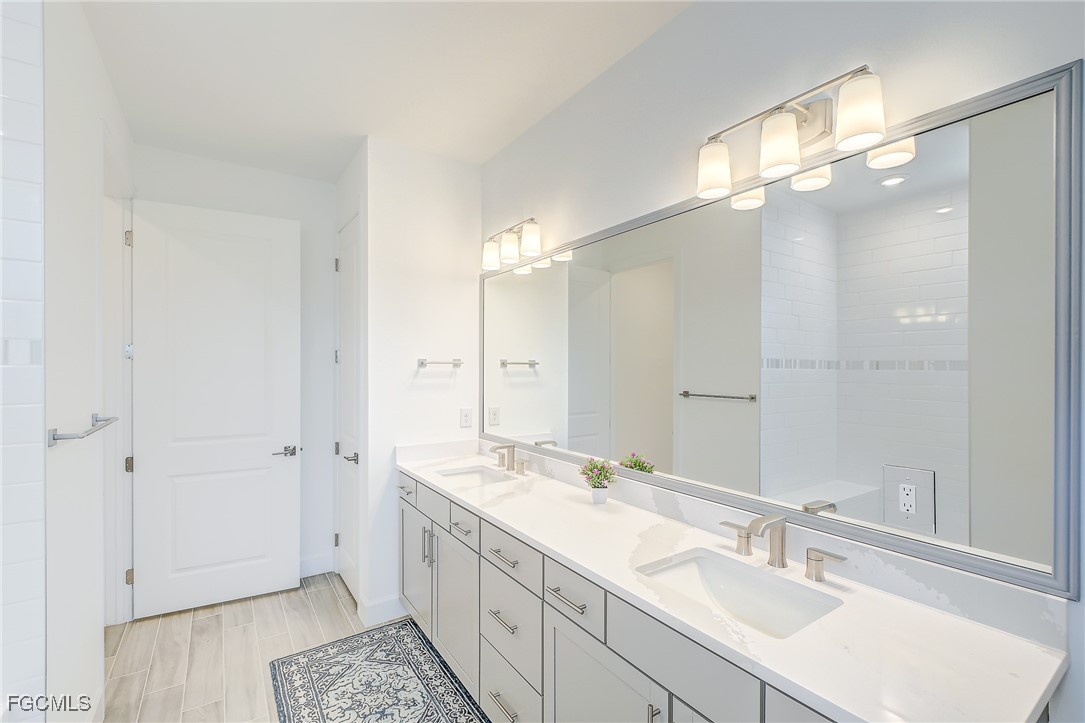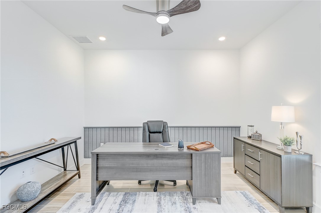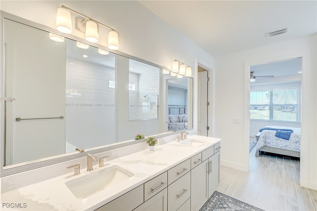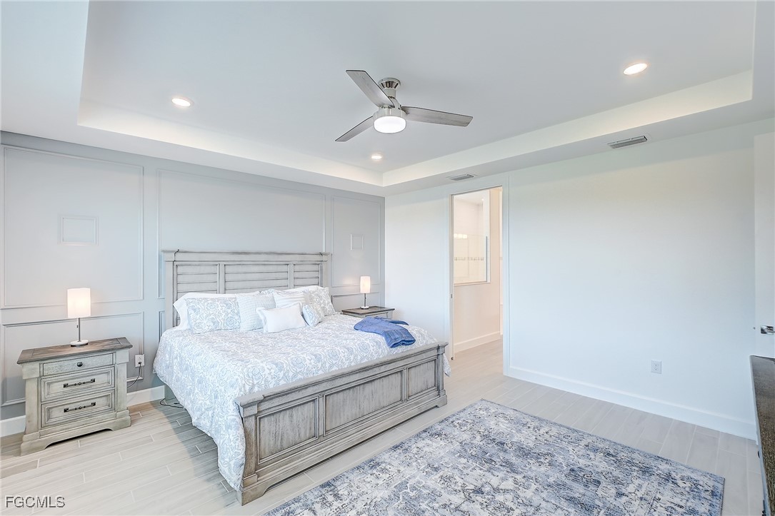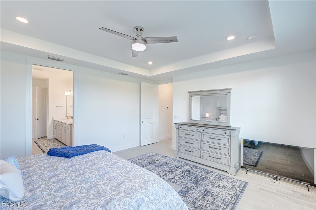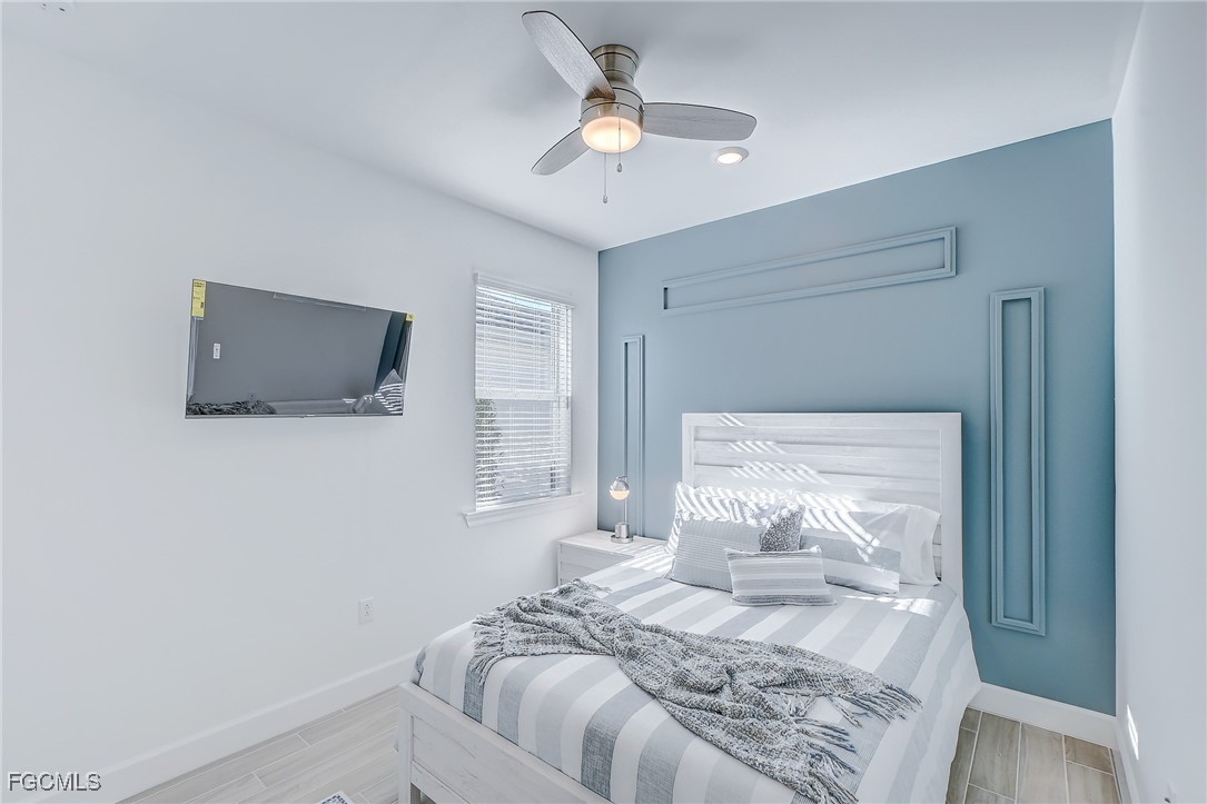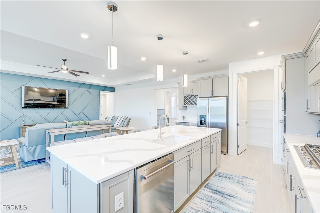 Inside, the open concept floor plan is anchored by a gourmet kitchen with quartz countertops, a spacious island with bar seating, stainless steel appliances, and plenty of storage. Beautiful tile plank flooring throughout flows seamlessly into the dining and living areas, creating an inviting space for both entertaining and everyday living. All furniture and decorations are included.