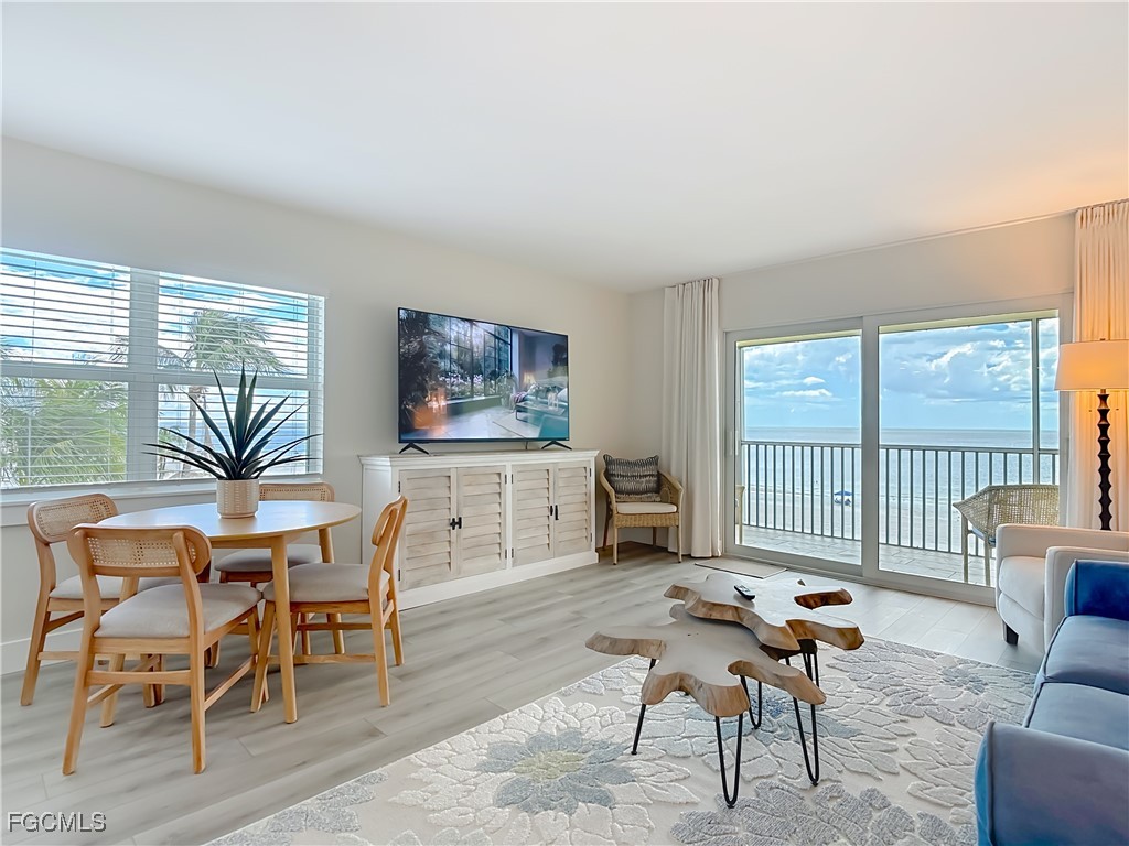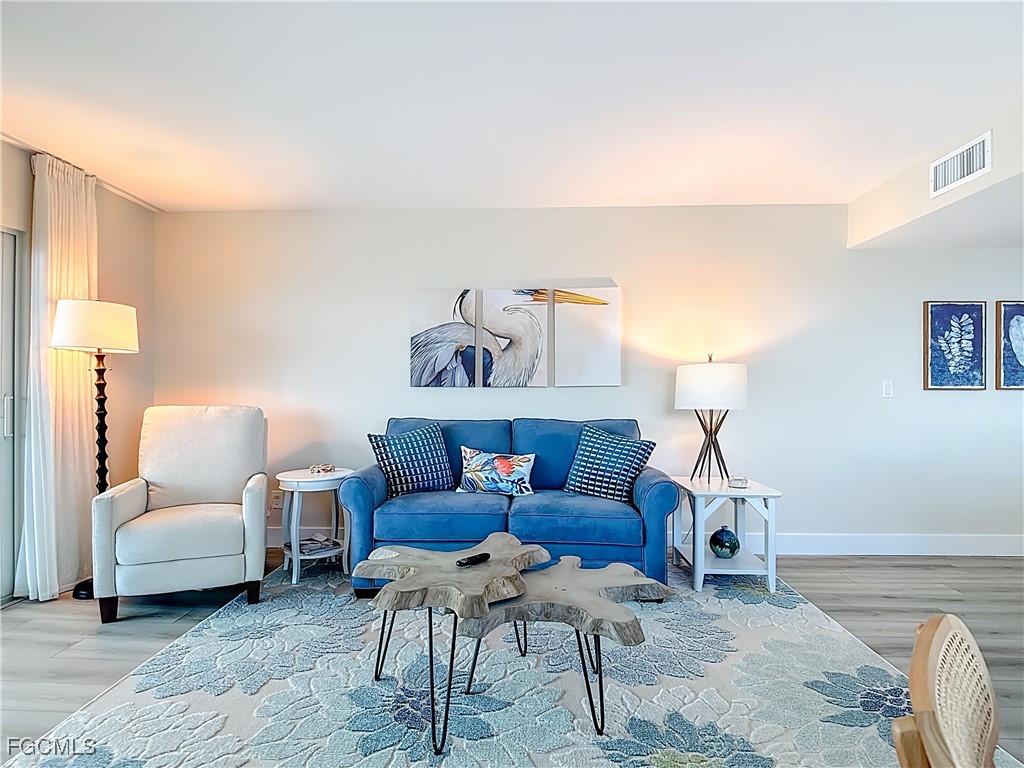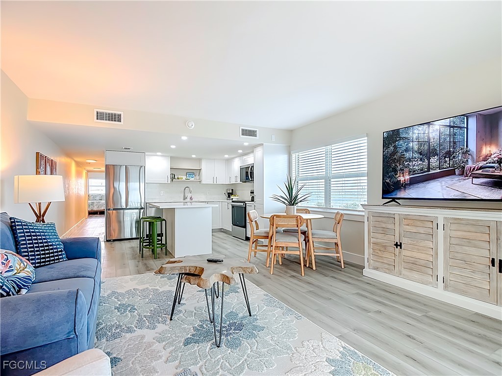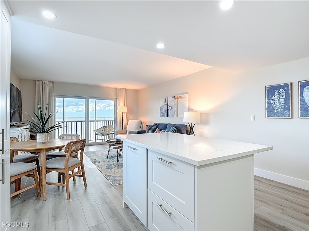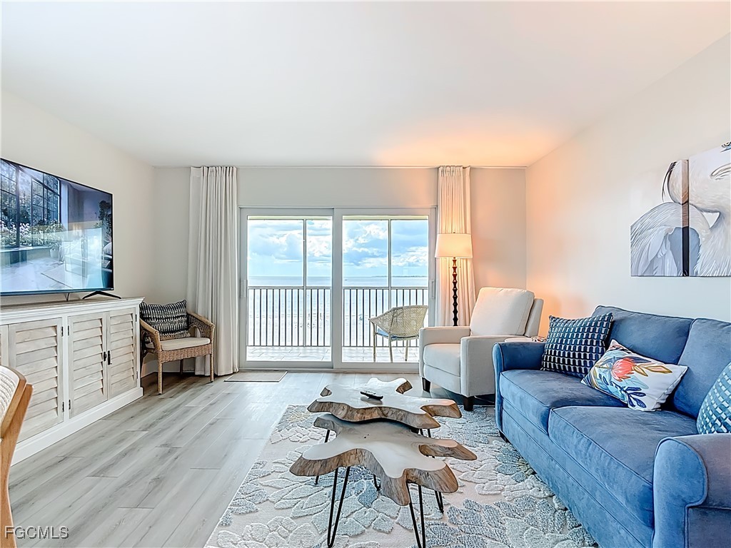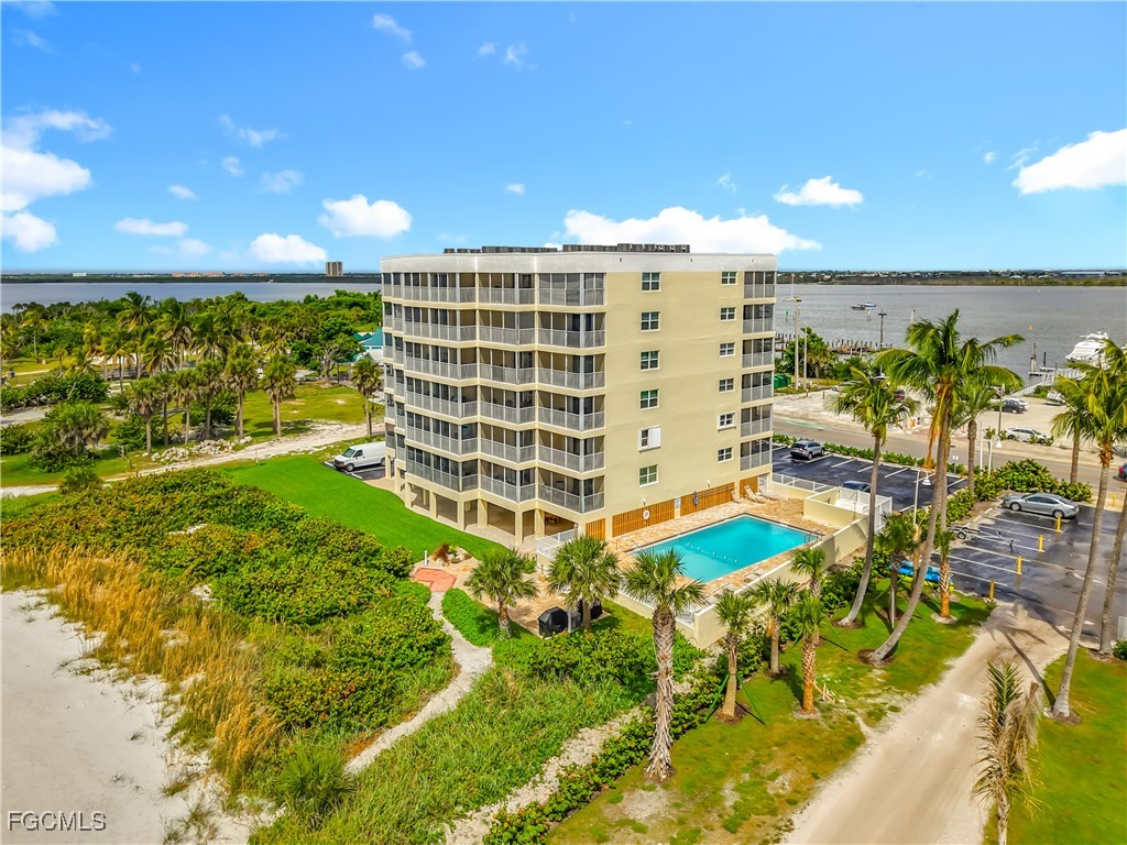 Just What You're Looking For! Highly desirable North tip of the Island, fourth floor, south corner condo with exceptional views over Gulf, Bay & sunsets over the beach. Completely remodeled interior, including all new plank wood-style vinyl flooring (LVP), New custom kitchen with island counter, new appliances and solid surface countertops. Both bathrooms have been upgraded. New impact windows and sliders have been installed. All the windows and both screened-in balconies offer exceptional water views from different perspectives. All new coastal style furnishings create the desired ambience. There is a walk-in closet with a washer/dryer hookup, as well as an additional laundry located on the lobby level. The Gulf-side pool enclave contains a spacious sundeck, BBQ grills and more. Uniquely located abutting Bowditch Point Park, a secluded 17 acres of beach & Bay. The Vacation Villas Complex allows one week rentals for maximizing rental potential. Owners are allowed one pet. Vacation Villas is NOT part of the Pink Shell Resort; however, the Pink Shell has provided Private Membership of their wonderful amenities to the owners at Vacation Villas through March 2027 at no cost, which includes their resort pools and hot-tubs, fitness center and more! This tranquil site offers a quiet and secluded location yet easy access on and off the island over Matanzas Pass Bridge, so you spend more time on the beach and less time in traffic. Don't miss this rare opportunity!