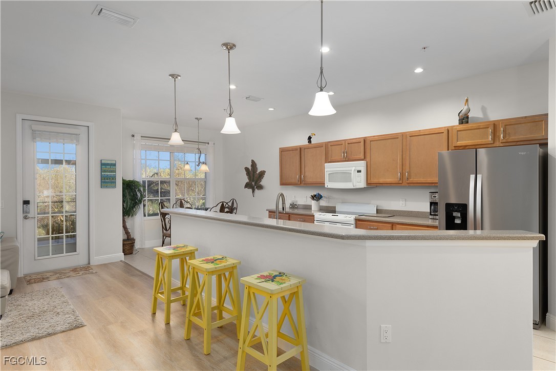 This 3 bedroom, 2 bath turnkey furnished end unit condo is a true gem. It is conveniently located on the GROUND FLOOR, facing the NATURE preserve, so NO PARKING LOT VIEWS here. Walk right out from your beautiful lanai and enjoy the pathway around the neighborhood, perfect for those morning strolls or taking your furry friend for a walk. This is the ideal location for dog owners, no messing around with hurried trips to the elevator: simply walk out your back door! Situated just ten minutes from the stunning white sands of Sanibel and Ft. Myers Beaches, and the exciting new Margaritaville Resort in the sought-after Iona/McGregor Corridor, this home is ideally located for both relaxation and adventure. TASTEFULLY FURNISHED with a charming coastal living room, and open concept dining area and kitchen, this home is absolutely perfect for entertaining. Enjoy your morning coffee on the serene lanai or savor sunset cocktails with friends. The spacious pool, complete with covered cabana area for those extra sunny Florida days, is perfect for socializing, and the grill area allows for delightful evening barbecues. This is more than just a home; it's your personal slice of PARADISE. For investors, there is great rental income potential.