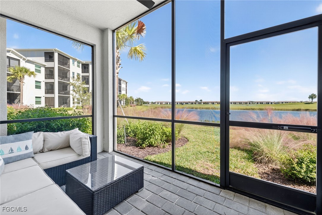 Babcock National is the first golf community in Babcock Ranch, America's first solar powered town. Having withstood several newsworthy hurricanes during the past few years, including well documented Ian's 8 hours of 140mph winds in September 2022, Babcock Ranch has become a primary destination for people wanting to move to Florida, but afraid to due to storms and skyrocketing insurance costs. Having the track record we now have, those concerned people now know that the homes are built to withstand storms and, yes it's true, no hurricane insurance is necessary. While Babcock Ranch amenities are plentiful, homeowners in Babcock National also have access to amenities only available to residents of this community. This home has bundled golf deeded to the owner, and gives you access to use aqua range and the Gordon Lewis designed 18-hole championship course. There are no outrageous annual membership dues often affiliated with country club style living. Other private amenities include Watershed Grill, an outdoor bar and grill, plus a resort-style pool, lap pool and 3 satellite pools. There is a sauna and full-service spa. The fitness center has 24-hour access. Naturally there are tennis, pickleball and bocce courts. The cherry on top is the now-open community clubhouse, which will be the center of social activities and events, and Enclave, an upscale fine dining restaurant. When you do finally spend time at home, this is a highly sought after first floor, fully tiled Birkdale unit. It has 2 bedrooms and 2 full bathrooms. The kitchen features white shaker cabinets, white quartz countertops, stainless appliances and a bonus window not featured in most other units. Built in 2023, this fully furnished, turnkey condo is ready for you to call home. Take in the views overlooking the groomed golf course and serene pond from your rear lanai. This is Florida living at its finest!