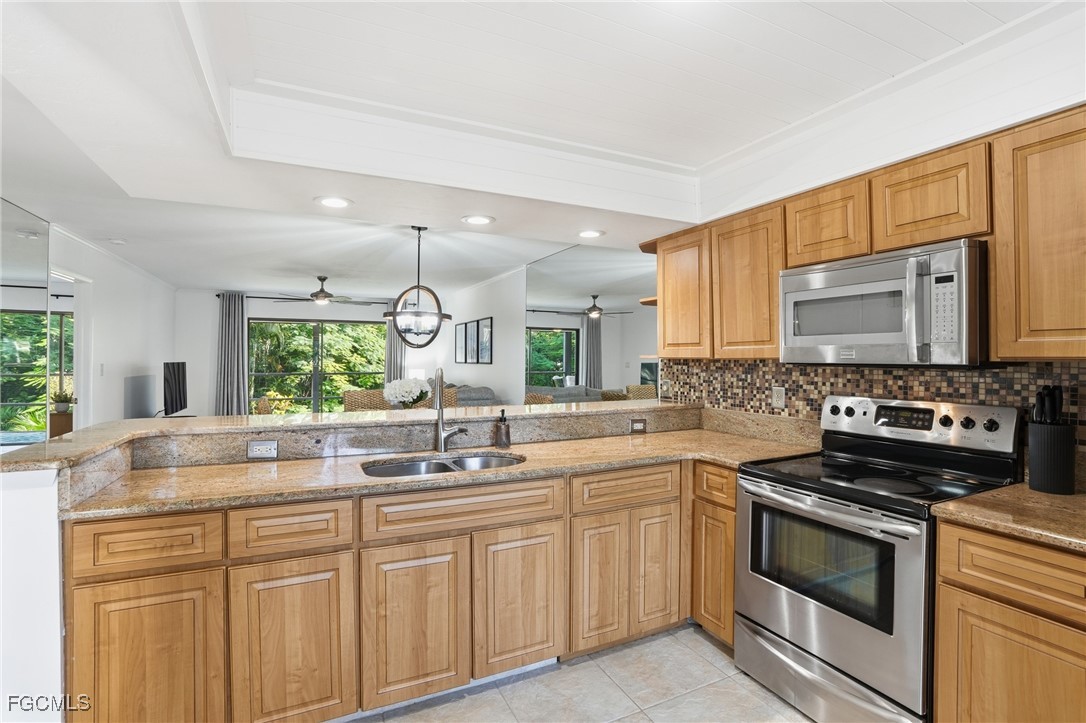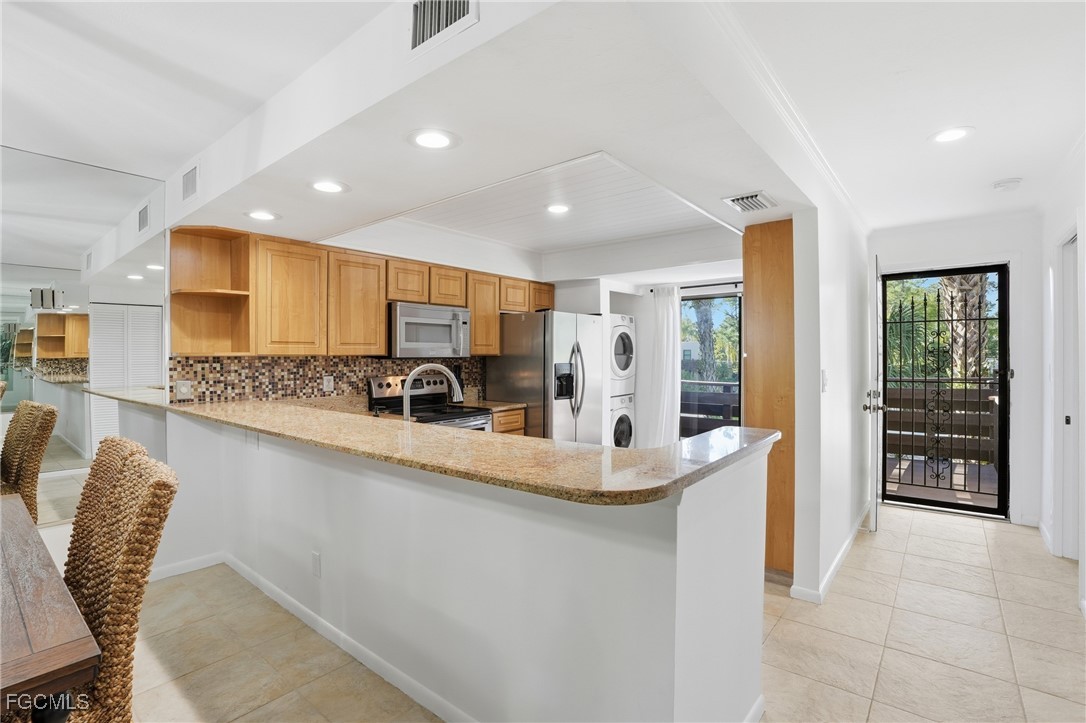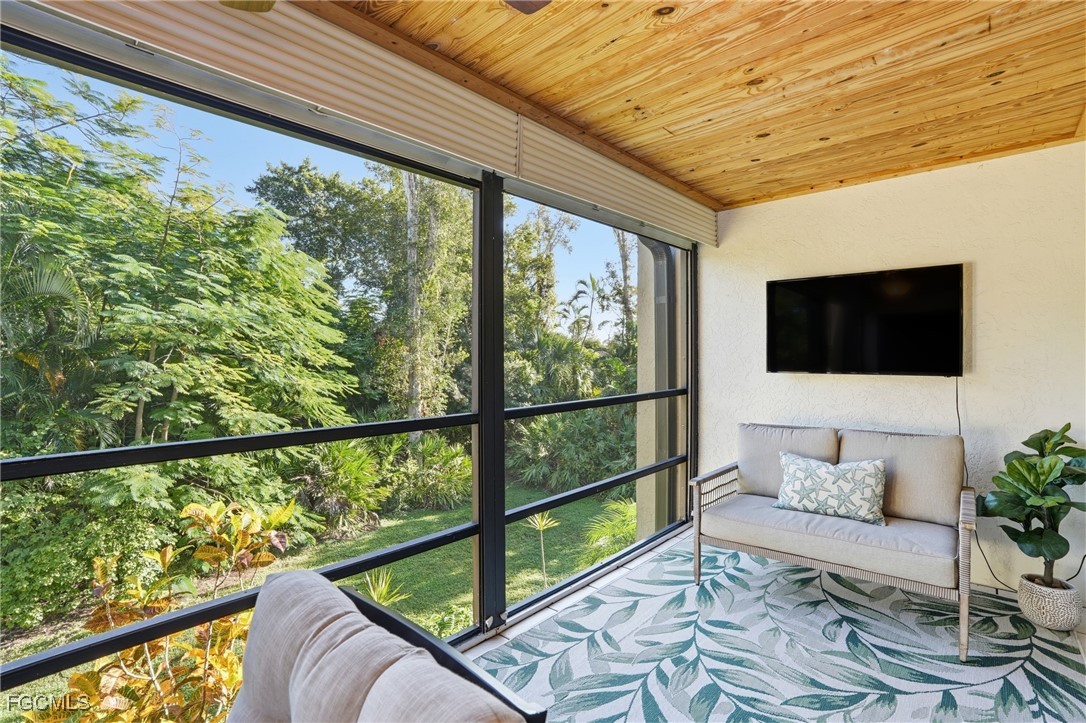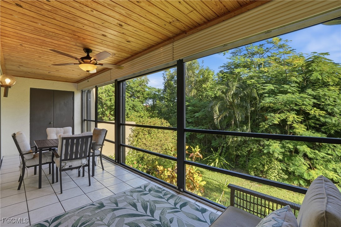 Welcome to 126 Pinebrook Drive! Step into this open and airy two-bedroom, two-bathroom condo- offering everything you need! As you enter, the spacious guest suite sits to your left, featuring an updated bathroom and a large walk-in closet. The main living and dining areas offer an open-concept layout — ideal for entertaining or simply relaxing. The primary bedroom is generously sized, complete with a walk-in closet and an updated bathroom featuring a shower/tub combination. Every inch of this home has been meticulously maintained by its current owner. The living space extends outdoors with an expansive patio overlooking tranquil greenery — the perfect spot to enjoy the peaceful sounds of Southwest Florida. Additional highlights include a large storage area on the back patio, two assigned parking spaces (one covered), and close proximity to the community pool and spa. You’ll love being just minutes away from beautiful beaches, fine dining, and the Bell Tower Shops. Pinebrook Lakes is fully gated with two entrances (main gate off of Daniels Parkway and residents entrance located off of 41). This property truly lives large and offers the best of Florida living!