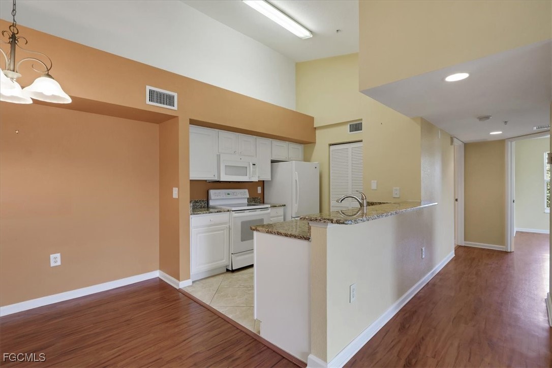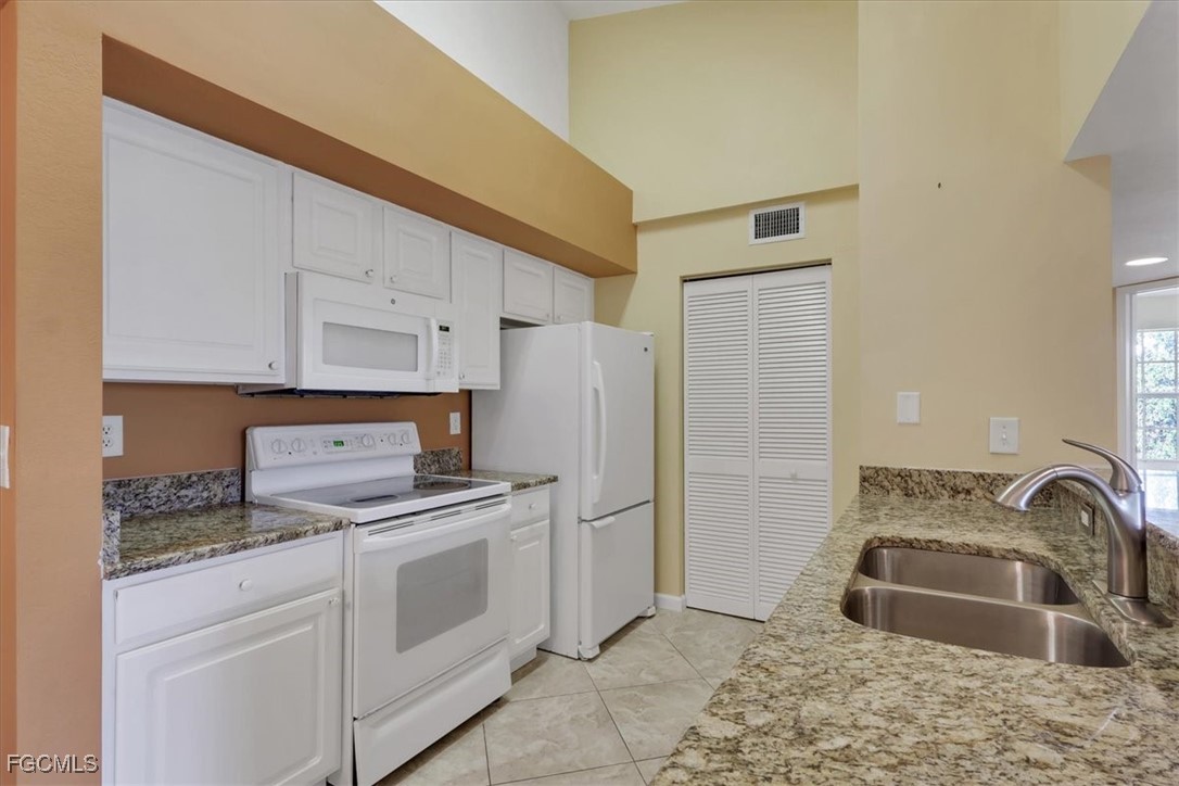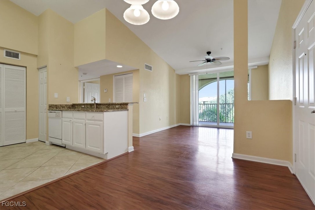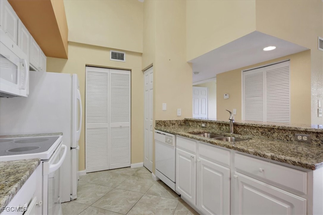 Must see this beautiful 2-bedroom, 1 bath condo on the 3rd floor with Vaulted Ceilings overlooking the lake. The Residence Condominium's is Fort Myers best kept secret located within minutes to I-75 and the Midpoint Bridge, conveniently located behind the Edison Mall, offering a shopping paradise to all its residents. Only a short drive to the heart of all Downtown Fort Myers has to offer. The Residence community provides a Salt water heated pool with a sun deck overlooking a lake with two illuminated water features. As a resident of this community, you could workout daily in the Fitness Center, play billiards in the Clubhouse or take a stroll on our beautifully landscaped walk paths around the grounds and lake! This beautiful 3rd floor 2 bed 1 bath condo has tile in the wet areas with vinyl in the bedrooms and living areas, granite countertops in kitchen and bathroom, full size washer and dryer in separate laundry room, very spacious master bedroom and offers access to bathroom from bedroom and hallway, bathroom has a nice relaxing garden tub. Enter the guest bedroom through double doors. Come see this well-kept community today with water and sewer included in quarterly dues. If you are looking for your primary residence, a 2nd home or an investment come see why The Residence Condominium is a must see in your search.