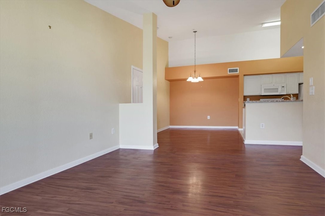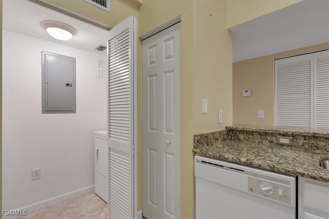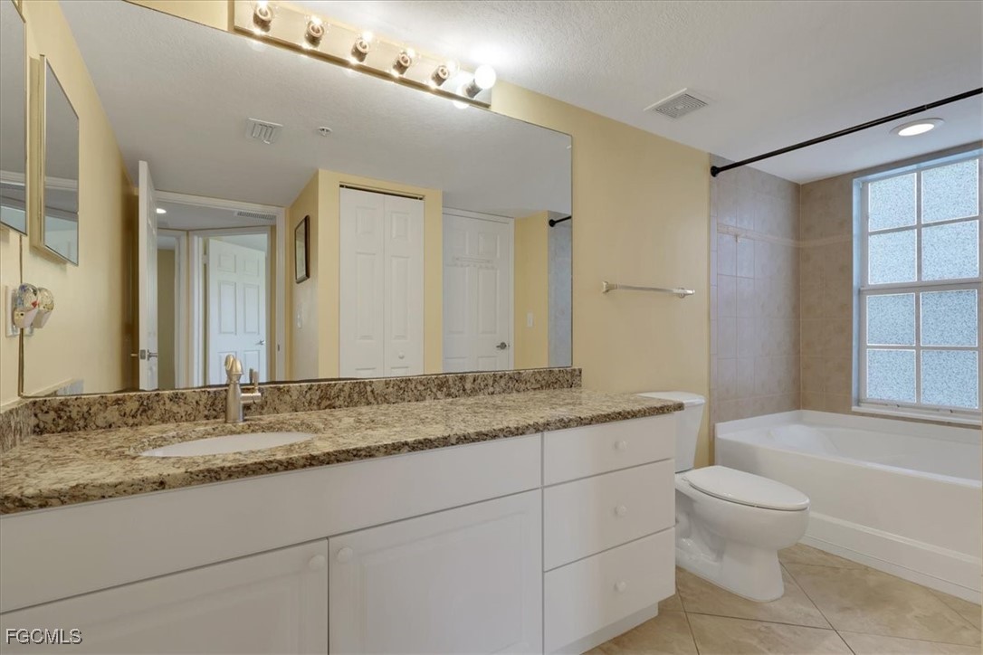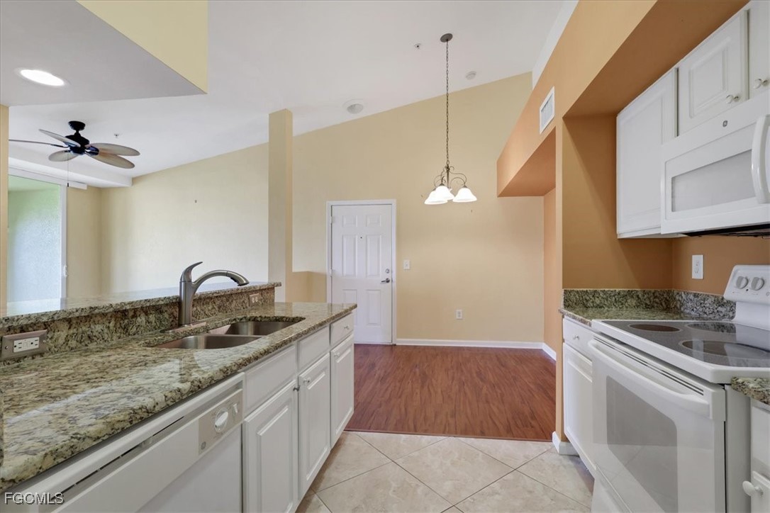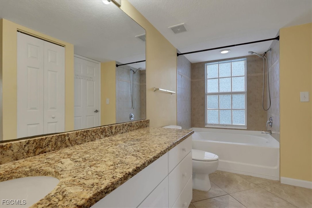 Must see this beautiful 2-bedroom, 1 bath condo on the 3rd floor with Vaulted Ceilings overlooking the lake. The Residence Condominium's is Fort Myers best kept secret located within minutes to I-75 and the Midpoint Bridge, conveniently located behind the Edison Mall, offering a shopping paradise to all its residents. Only a short drive to the heart of all Downtown Fort Myers has to offer. The Residence community provides a Salt water heated pool with a sun deck overlooking a lake with two illuminated water features. As a resident of this community, you could workout daily in the Fitness Center, play billiards in the Clubhouse or take a stroll on our beautifully landscaped walk paths around the grounds and lake! This beautiful 3rd floor 2 bed 1 bath condo has tile in the wet areas with vinyl in the bedrooms and living areas, granite countertops in kitchen and bathroom, full size washer and dryer in separate laundry room, very spacious master bedroom and offers access to bathroom from bedroom and hallway, bathroom has a nice relaxing garden tub. Enter the guest bedroom through double doors. Come see this well-kept community today with water and sewer included in quarterly dues. If you are looking for your primary residence, a 2nd home or an investment come see why The Residence Condominium is a must see in your search.