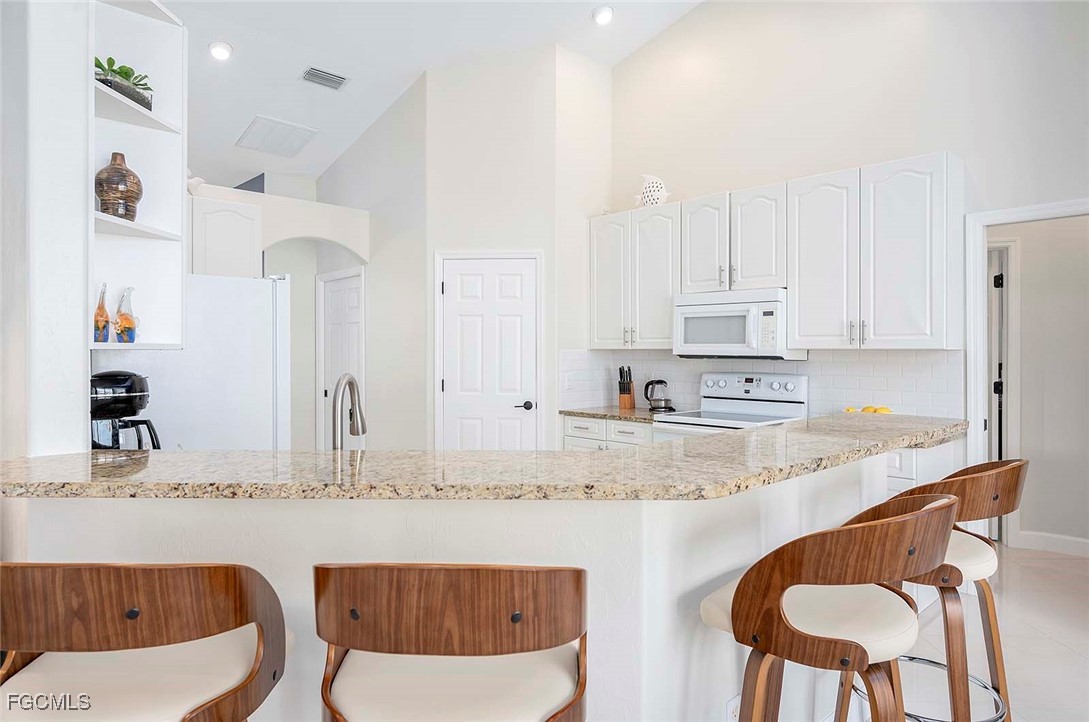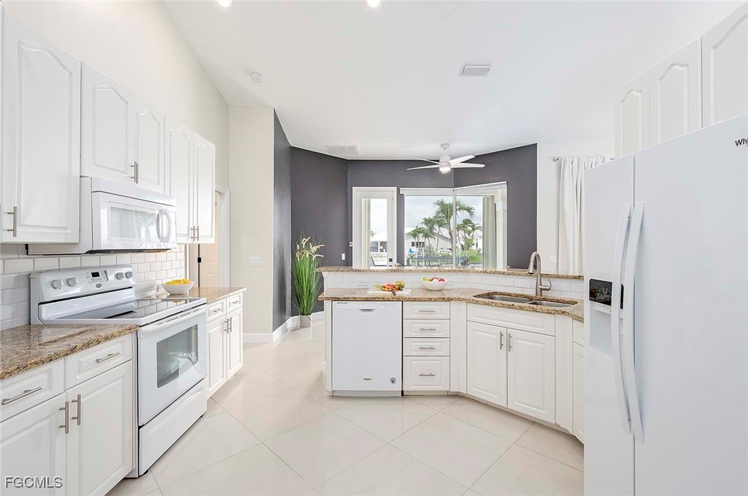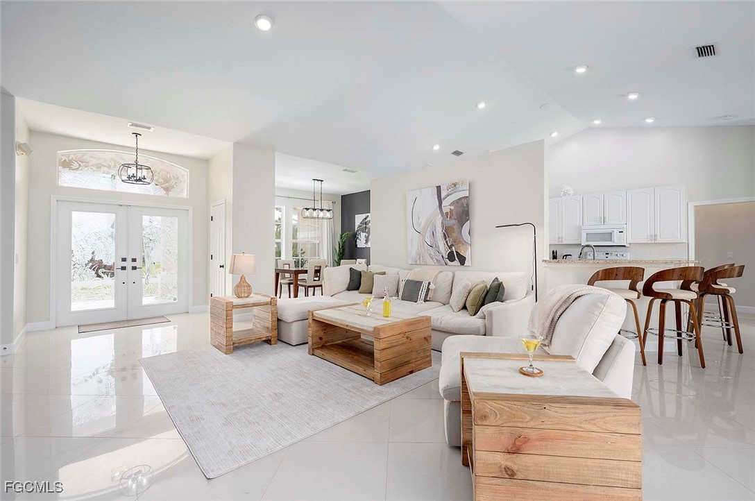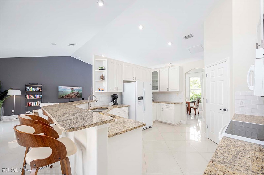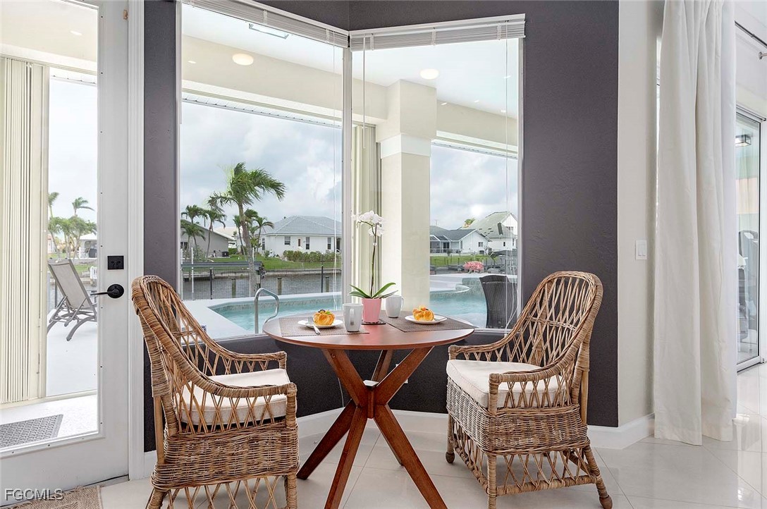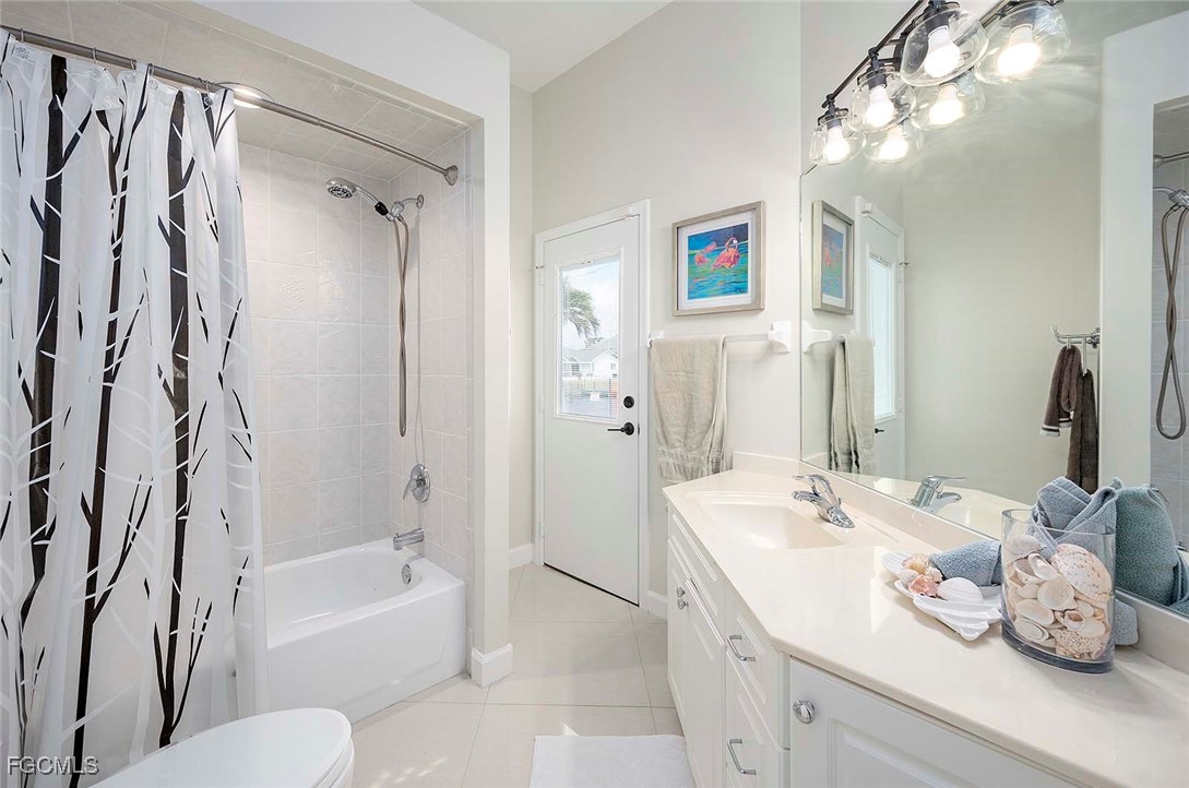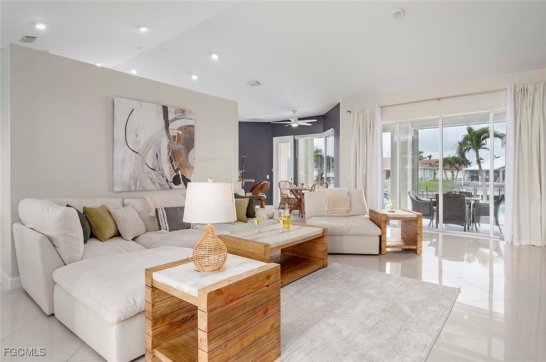 This Home is a three bedroom and 2 bathroom Villa situated in the highly desirable SW Cape Coral, close to restaurants and entertainment. The property features a split floorplan with the primary bedroom with en-suite bathroom is located on the right side of the home. The center is comprised of a spacious living room with plenty of natural light and large sliding glass doors that open up to the large under truss lanai. The left side of the home features 2 bedrooms that share one bathroom. The guest bathroom also serves as a pool bathroom, which is convenient when entertaining guests.