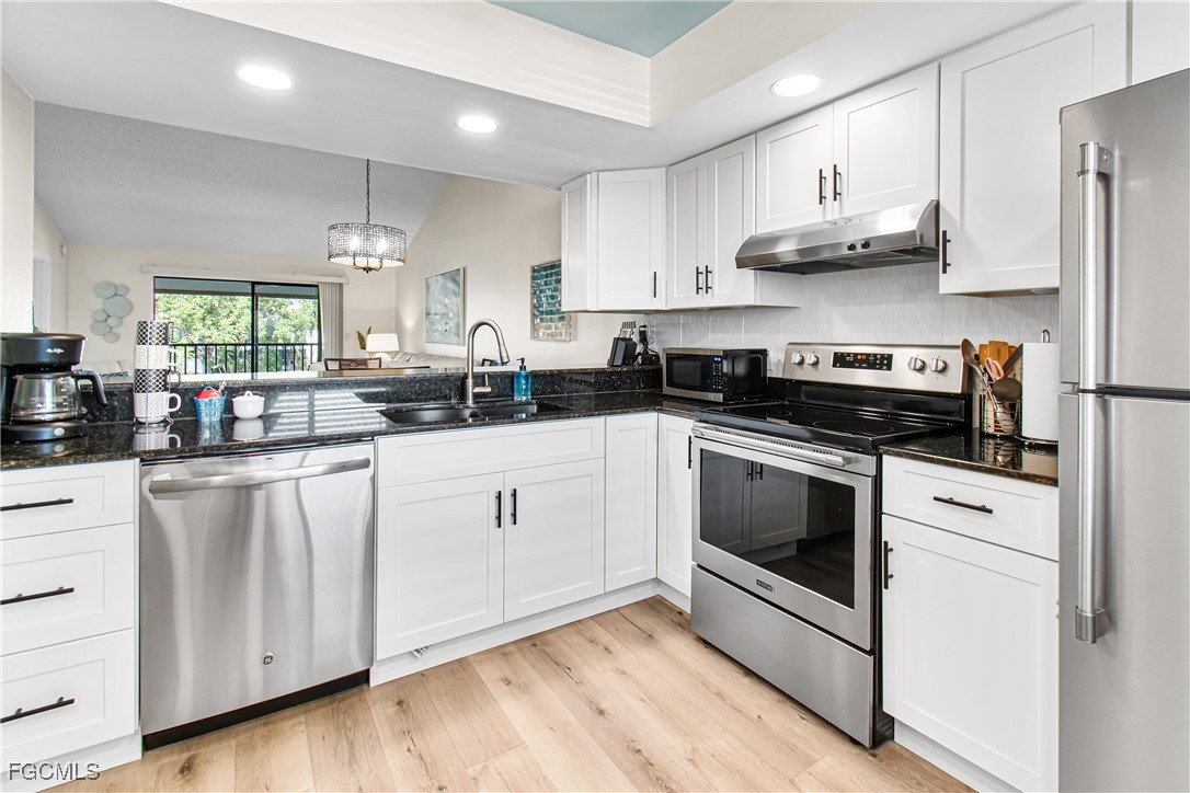 Priced right! Come view this lovely updated second floor unit that overlooks the water with an updated kitchen and main bathroom this home boast the perfect beach getaway for full time residents , investment, or snow bird. The kitchen was updated with new stainless steel appliances 5 years old) New AC unit 2022 & new washer. Residents enjoy tennis courts, clubhouse, pool and spa in a tranquil setting with nearby access to shopping, dining, hospitals and a short drive to Naples & RSW Airport. Mature landscaping provides a tranquil environment, dog friendly with a minimum of 2 pets , weight limit 50 lbs. This unit has a beach vibe and furniture is negotiable! Schedule your appointment to view this lovely condo just waiting for you to make it your own!