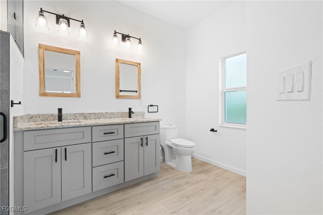 The primary bathroom showcases a tiled walk-in shower with glass doors and dual vanity sinks, while the guest bathroom offers a tiled tub/shower combination. The open kitchen and living areas provide seamless flow, perfect for entertaining family and friends.