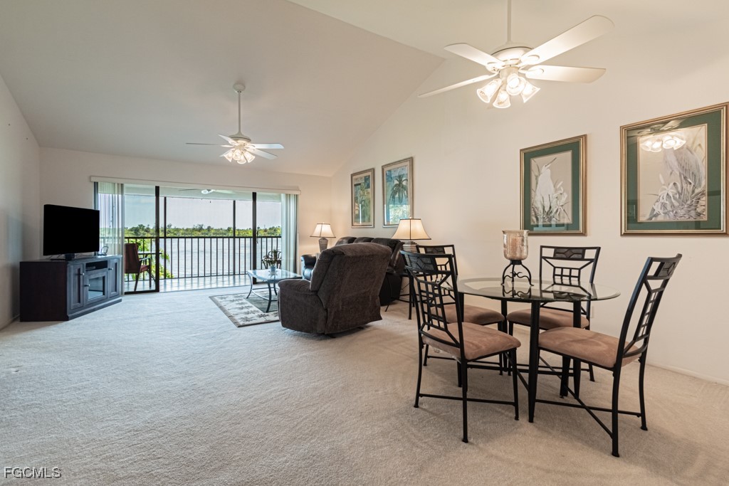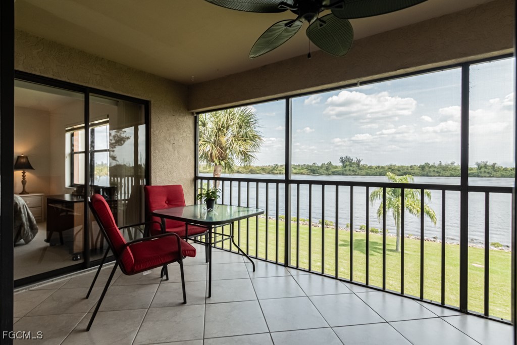 A tastefully decorated and maintained 2-bedroom/2 bath 3rd floor condo in the peaceful riverfront/intracoastal/gulf access condo village of Bay Pointe Yacht and Racquet Club. The 12ft cathedral ceiling gives the space more of a single family home feel. The location and the view is the creme de la creme of North Fort Myers.