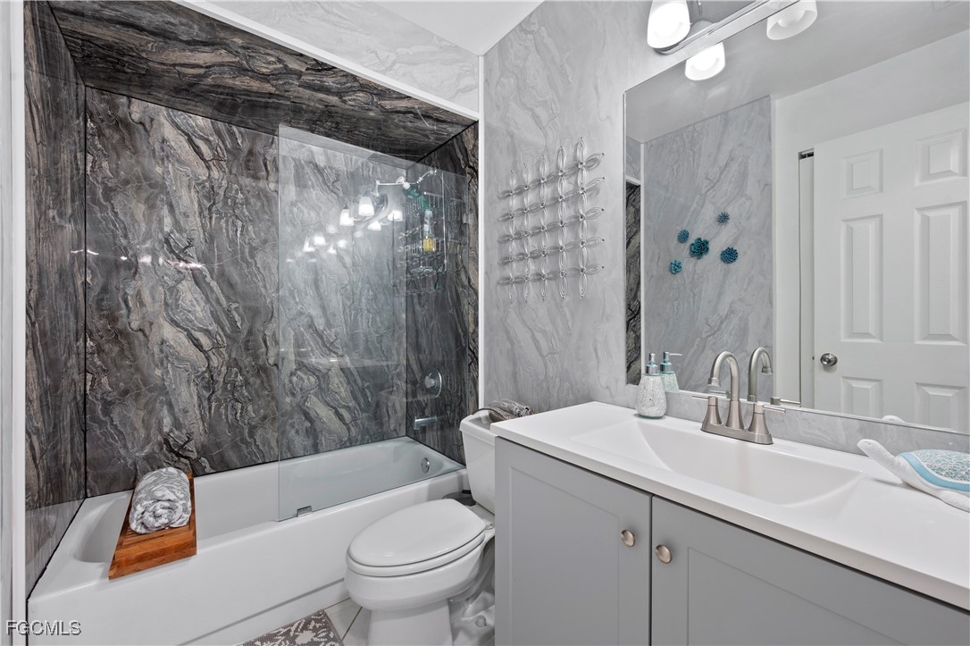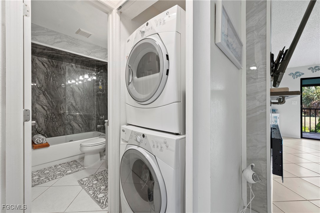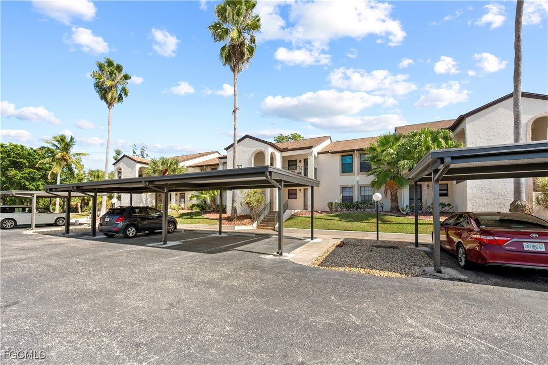 Beautifully updated and fully furnished 2nd Floor Condo with 2 Bedrooms / 2 Bathrooms and a private 105-sq-ft lanai. Condo has been repainted and modernized with an electric fireplace wall feature, stainless steel appliances, new ceiling fans and fixtures, and all-new bathrooms with updated vanities and frameless glass shower enclosures with ceiling-to-floor tile. The kitchen has updated countertops and cabinetry as well. Plus, solid surface flooring throughout (no carpet!) with luxury plank LPV in bedrooms and diagonally-laid neutral tile in the main living areas. Community amenities include: a clubhouse with meals and bar, a community pool, tennis and pickleball courts, public golf course and a boat ramp with gulf access! In fact, for only $500 you can store your boat here for the whole winter! And this unit in particular, with its sunny private lanai, looks over the gulf access canal. Buildings have been recently repainted and the carports are new (with all assessments PAID). HOA dues cover the water and cable, building insurance and maintenance, and the amenities and common areas. Condo fee is only $359/month and the master association is only $260/month, making this home a smart choice! Conveniently located in southern Fort Myers, with quick access to the beaches and shopping destinations in both Fort Myers and Estero / Bonita Springs / Naples.