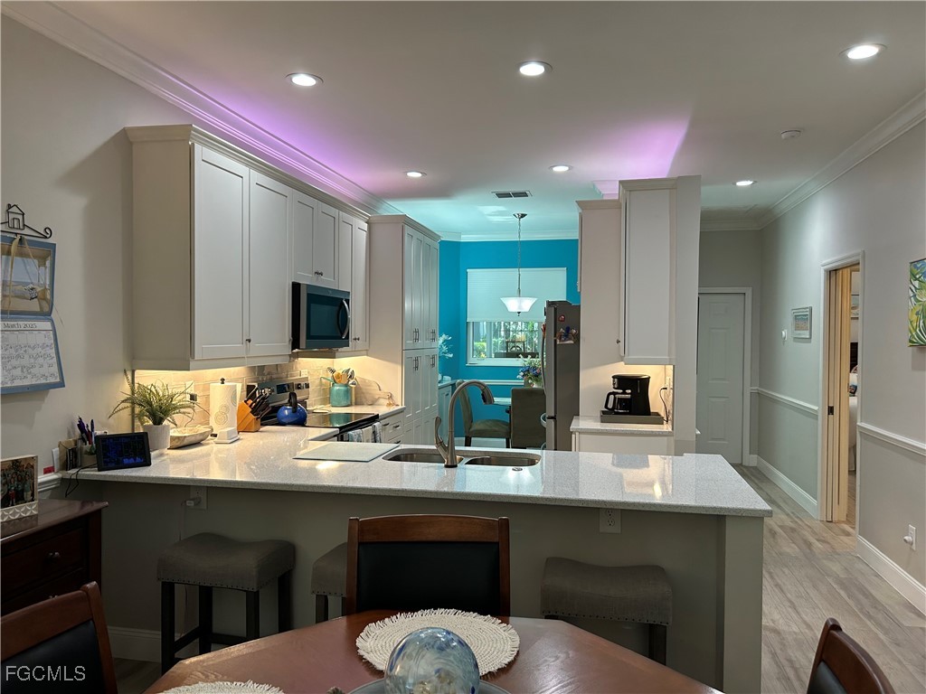 Beautifully updated end unit villa in Country Creek – A Rare Find! This stunning, move-in-ready villa in the highly sought- after Country Creek community offers two bedrooms, a den, two bathrooms, and a spacious two-car garage. Priced to sell, this end unit with a two-car garage is rarely available and boasts numerous high-end upgrades.The flooring throughout the home has been completely redone with luxury vinyl for a warm plank wood finish, while the entrance-way, back lanai, and bathrooms feature tile wood finish flooring. The kitchen is beautifully remodeled with white soft-close cabinets, a custom-built double pantry with pullout drawers, quartz countertops, a stylish backsplash, and stainless steel appliances. The open-concept design seamlessly connects the kitchen to the living room, creating an inviting space for entertaining. The lanai has been enclosed and remodeled to increase square footage, featuring added insulation and air conditioning for year-round comfort. All windows have been upgraded to hurricane-impact resistant glass for peace of mind. Both bathrooms have been updated with white-cabinetry, luxury quartz countertops, and new comfort-height toilets. The master bathroom features a stunning floor-to-ceiling tiled shower. Additional features include Levelor remote control shades in the kitchen and living room, as well as custom shades in the enclosed lanai. A split-bedroom layout provides privacy for guests, enhanced by convenient sliding pocket doors. This villa also comes with a new high- efficiency 16 SEER AC unit (installed in 2022)--all entailed, these upgrades prove to be a significant investment of approximately $100,000. Country Creek is a vibrant, resort-style community offering bundled golf, where residents can play for a low fee, including a golf cart. The on-site country club features a restaurant and bar with an in-house chef, offering delicious meals at reasonable prices. Additional recreational amenities include tennis, bocce ball, and a workout facility, and five pools throughout the community, including a large, near Olympic-size pool located near the club house catering to an active lifestyle. Ideally located, this home is just minutes from Coconut Point, Miromar Outlets, Florida Gulf Coast University, a community park, and a variety of dining options. Southwest Florida International Airport and other key attractions are also nearby , making this villa the perfect combination of comfort, style, and convenience. Schedule your private showing today and experience everything Country Creek has to offer! Home is not in a flood zone.