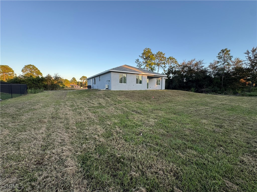 Great location in Lehigh Acres, NEW CONSTRUCTION!! Wonderfull new construction at outstanding value.Open layout with attention to details and elegance. HIGH-END FINISHES!!!!. Beautifull wine build in. This property truly depicts the Florida life style filled with sunshine and good vibes. Home is a 3 bedrooms plus a den with closet and 2 bathrooms. Property is loading with upgrade including: Impact Resistance doors and windows, door opener, tall wood base board,8ft door throughout, high end lighting. 24x48 porcelain tile through, electric garage Quartz counter tops in kitchen and bathrooms, soft closed wood cabinets, spacious laundry, and tray ceiling. Plenty room for a pool if desired. Great location with short drive to new developments. Don't miss out this fantastic opportunity!!!