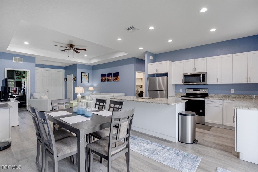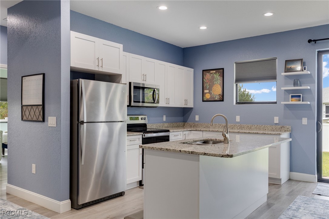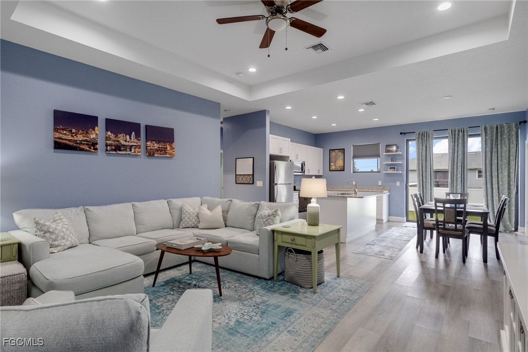 Built in 2022, this 3-bedroom + den, 2.5-bath home with a 2-car garage sits on an oversized lot in the heart of Lehigh Acres, offering quick access to Fort Myers and nearby schools. Enjoy a bright white kitchen with granite countertops, impact-resistant windows, custom closet shelving, and accordion shades throughout. The fully fenced yard is ideal for pets or outdoor gatherings, and there’s a sidewalk across the street that's perfect for morning walks or bike rides. Sellers are including a Home Warranty Plan for your peace of mind. Well maintained and move-in ready. Come see why this one stands out!