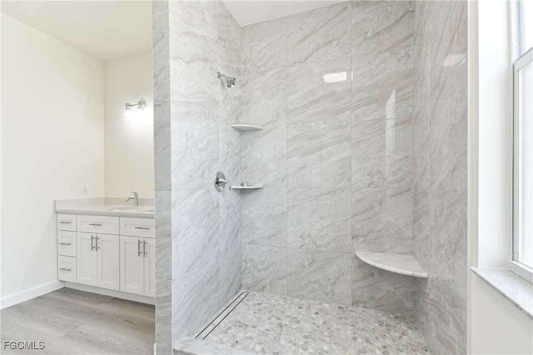 The chef’s kitchen is a showstopper, boasting 42” upper cabinets, quartz countertops, soft-close drawers and doors, plenty of storage, and a large walk-in pantry. Bathrooms feature custom-tiled showers, updated plumbing fixtures, and contemporary finishes. Enjoy peace of mind with a 2023 roof, 2023 well water system, 2025 water heater, 2018 A/C unit with warranty through 2028, full storm protection, and no flood insurance needed!