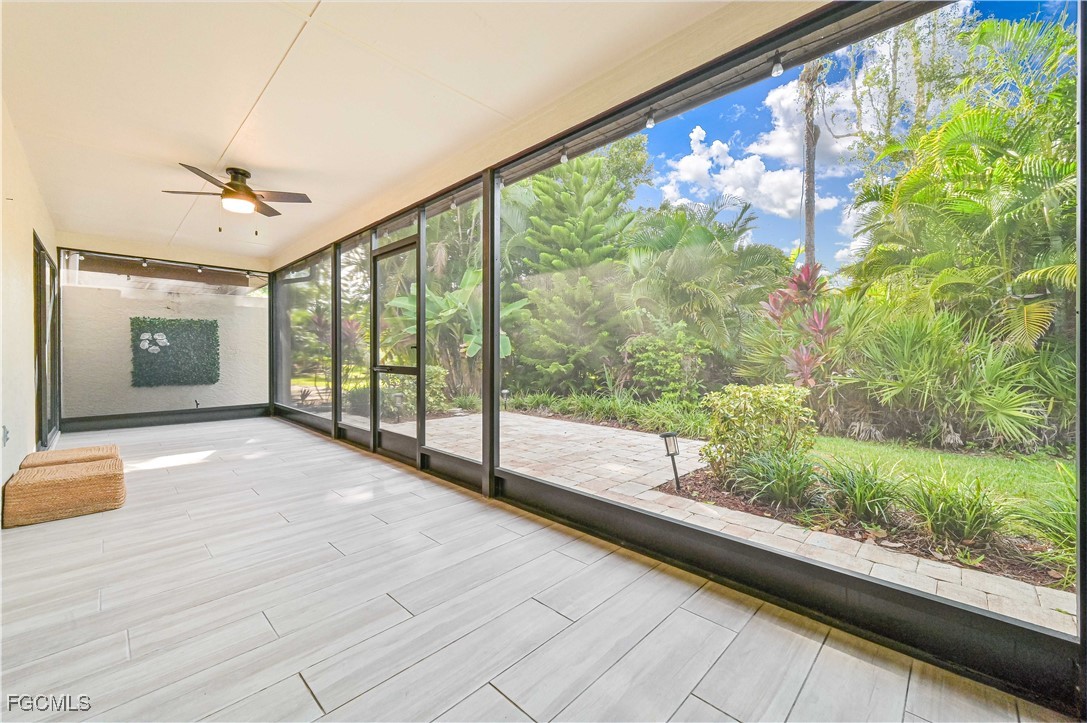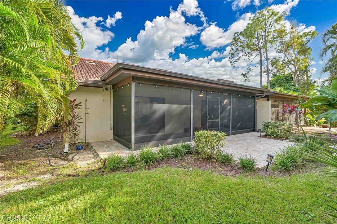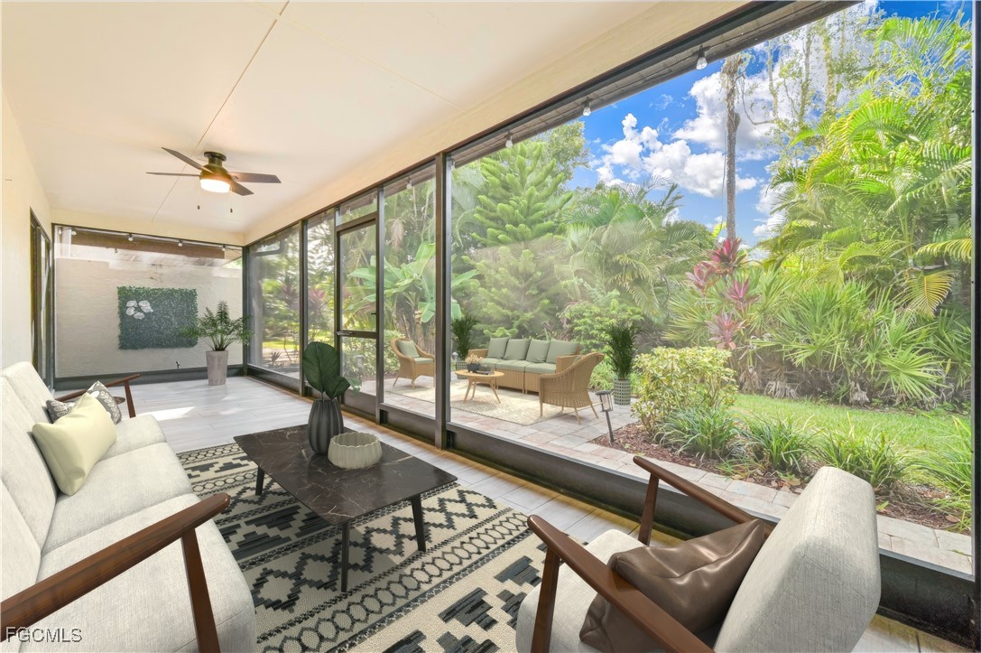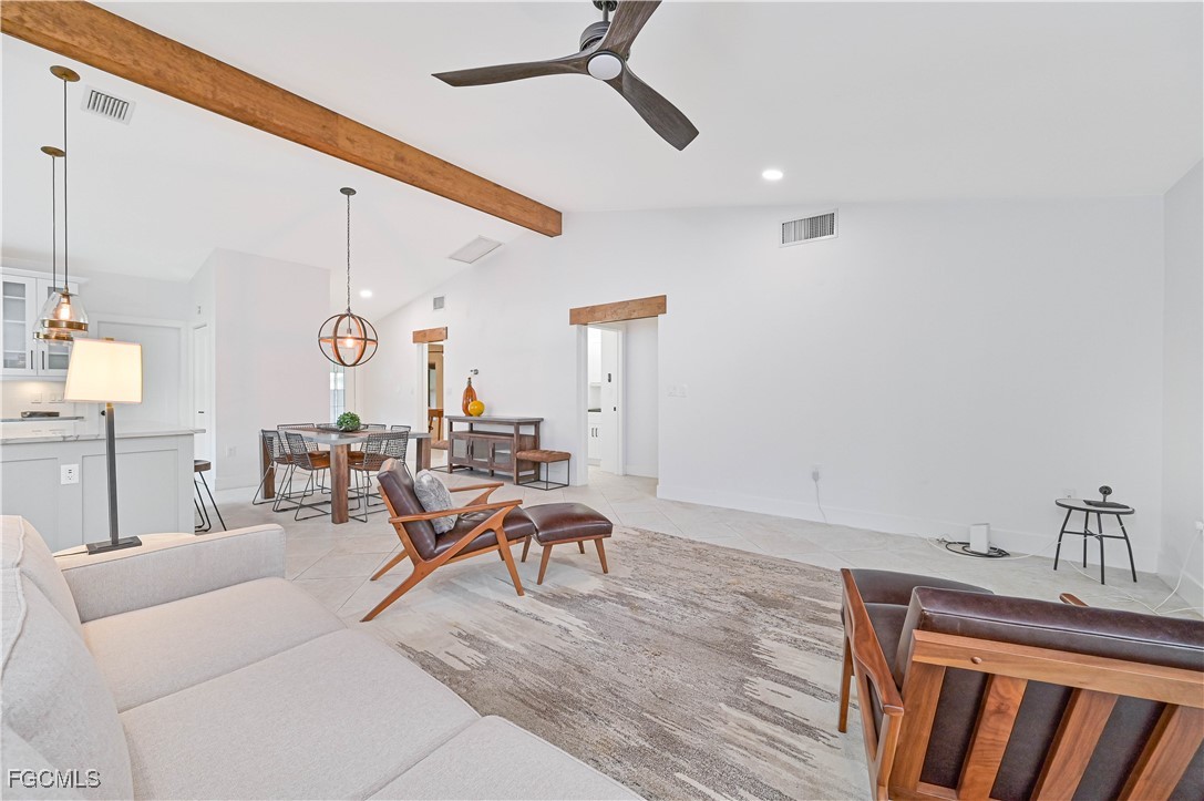 Experience the perfect blend of modern luxury and timeless design in this meticulously renovated villa, offering over $150K in high-end upgrades. Nestled in the heart of Fort Myers this exceptional home is walking distance to Bell Tower shops and restaurants. This open-concept design exudes sophistication at every turn. The entire home has been upgraded with new lighting, doors, trim, and fans, with striking faux beams adding character and warmth. The stunning kitchen is a chef’s dream, featuring custom cabinetry, top-of-the-line Bosch appliances, gorgeous quartzite countertops, and a spacious island perfect for entertaining family and friends. Both bathrooms have been tastefully updated with custom-built vanities and quartzite countertops, creating a spa-like experience. The master suite is a true retreat, offering a custom built in closet, walk-in shower, dual sinks, and a stylish herringbone backsplash. Step through the back sliders (accessible from both the master and living room) to the fully screened lanai. Enjoy your morning coffee or evening sunsets in this serene outdoor space, complete with new pavers and a lush, private backyard. The community pool is just a short stroll away, providing the perfect place to unwind.